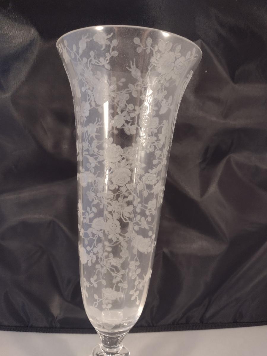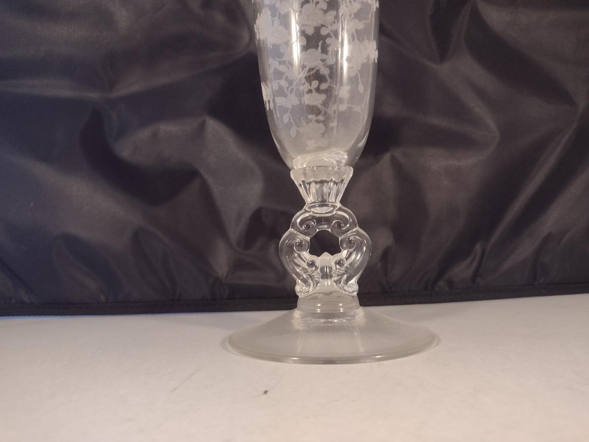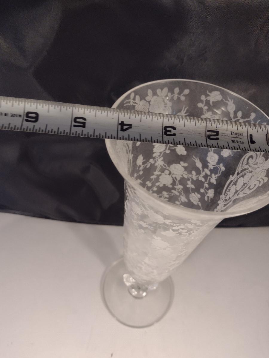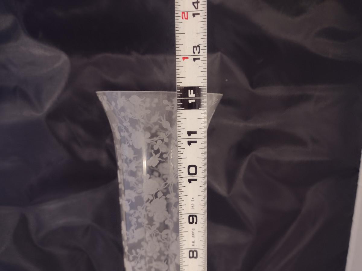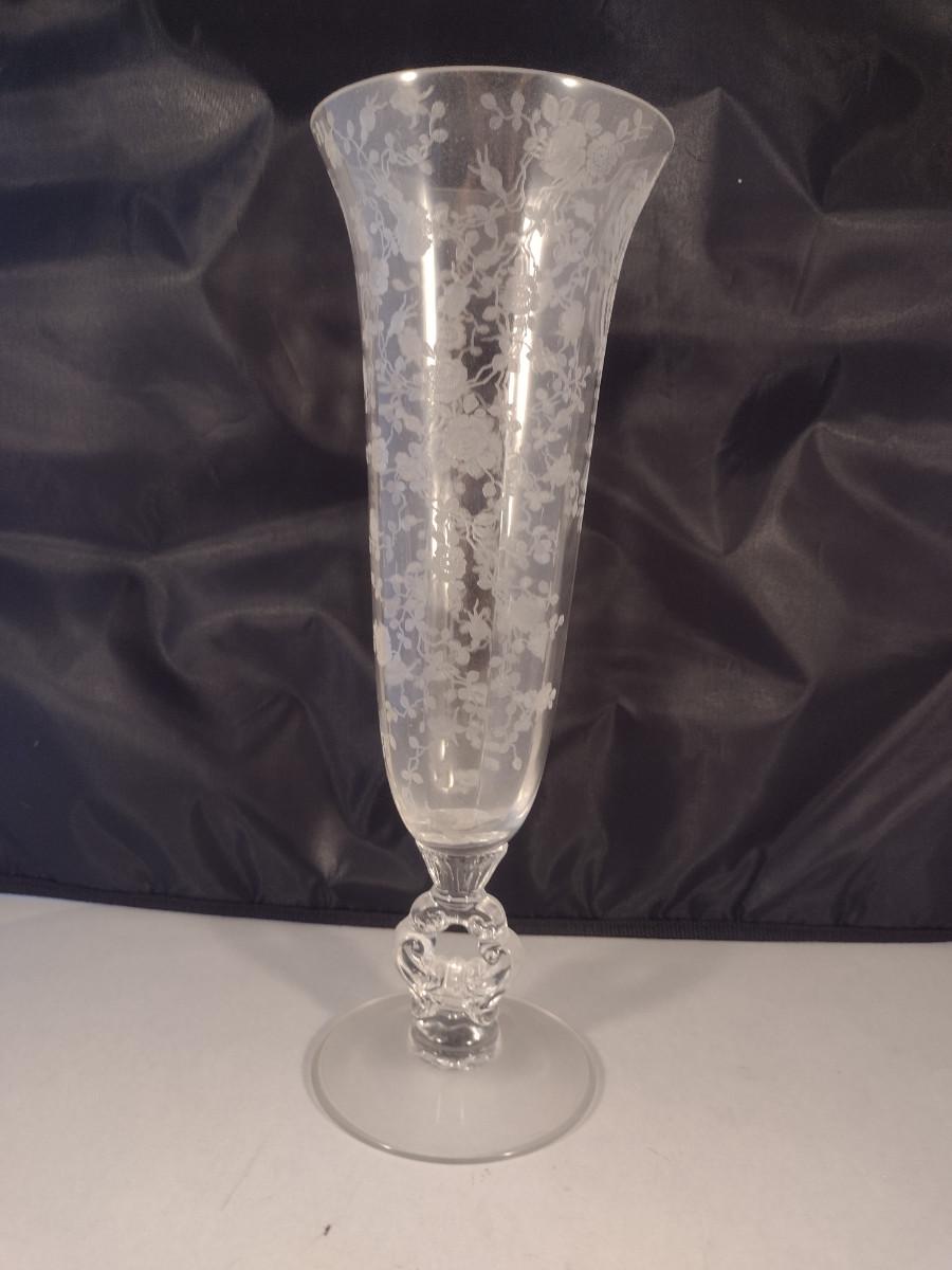 Tall Crystal/Glass Vase with Etched Floral Design and Keyhole Stem- Possibly Cambridge- Approx 12" Tall