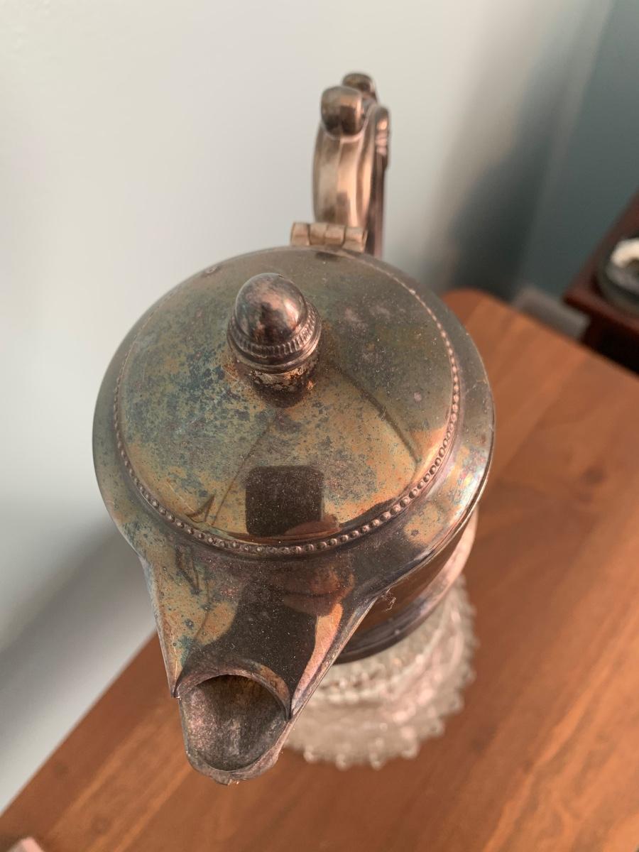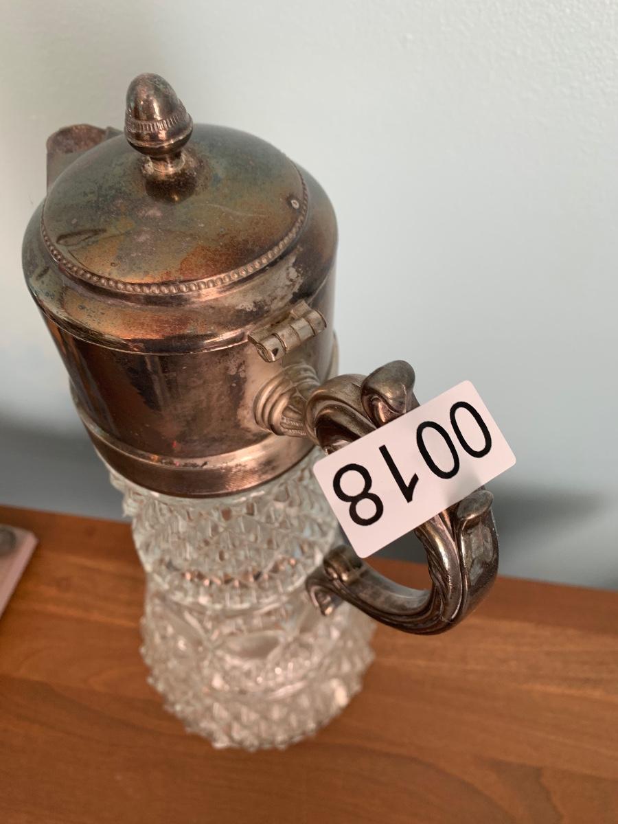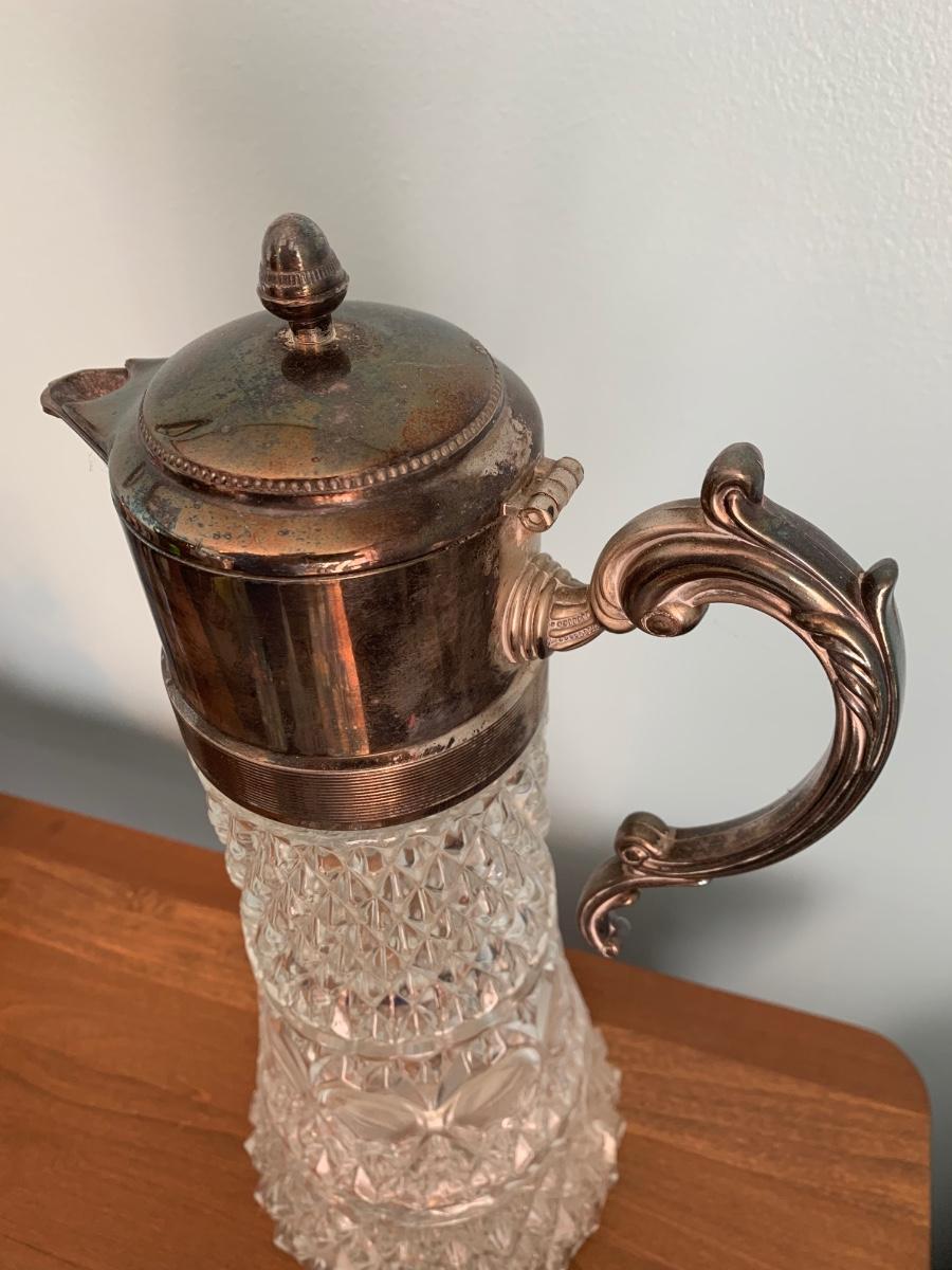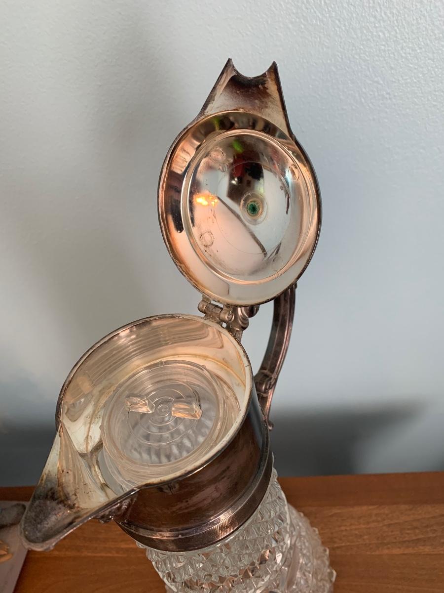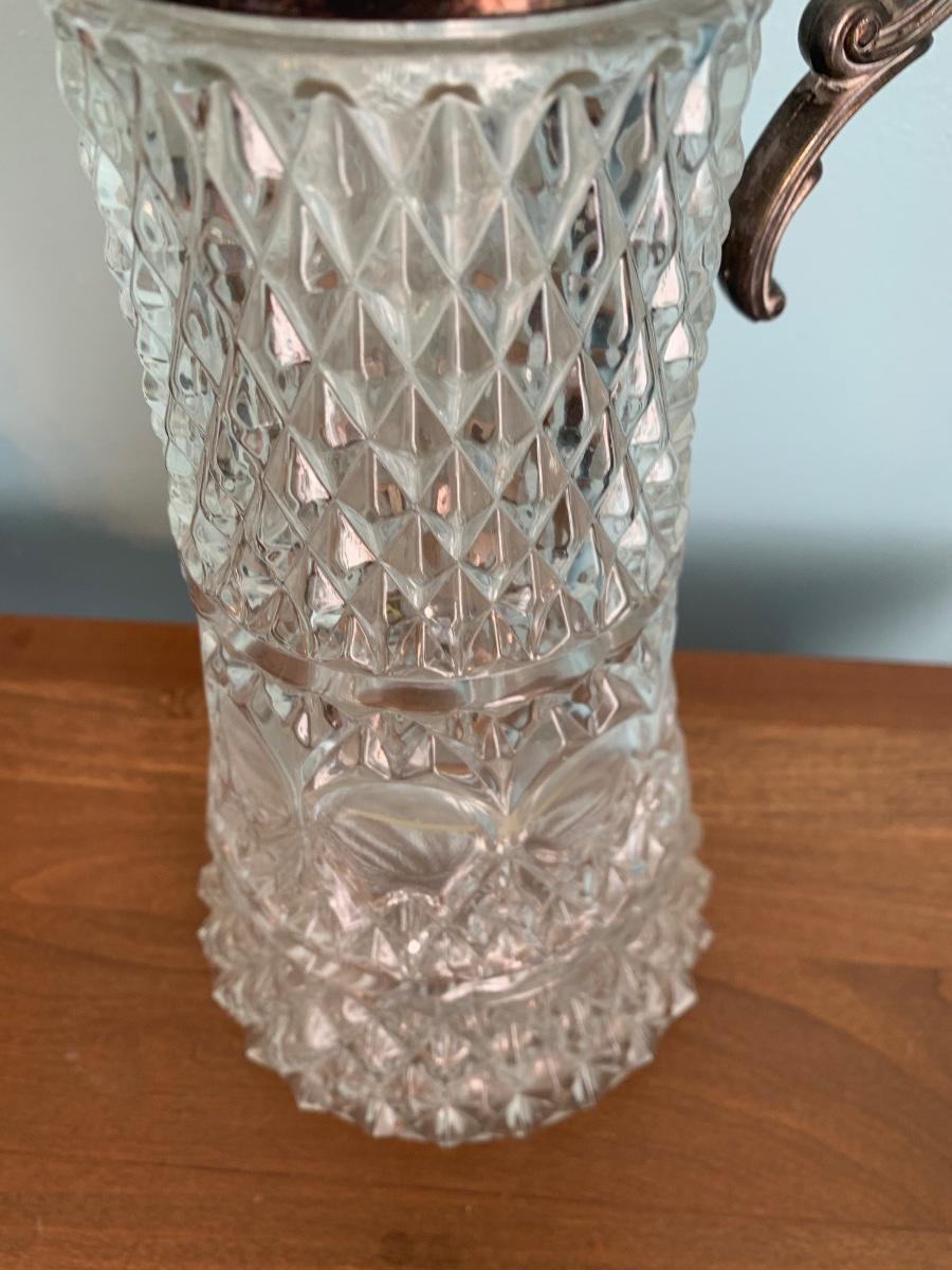 Tall Cut Glass Pitcher Silver Plate Top