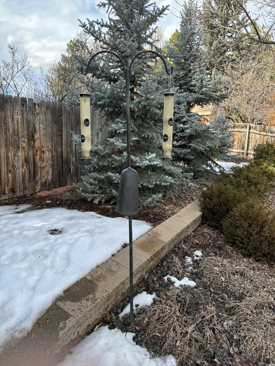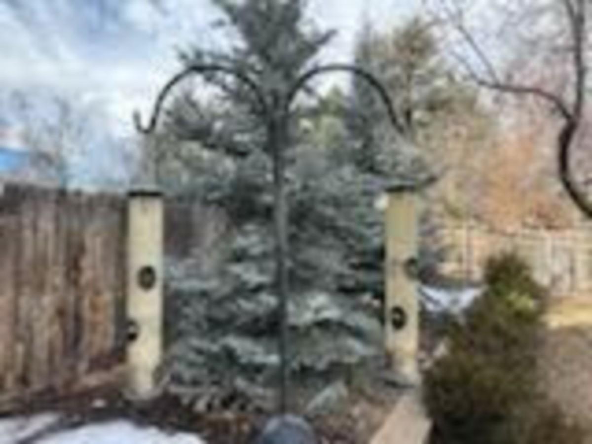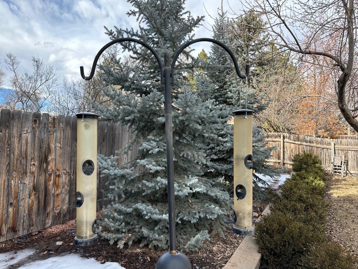 TALL DOUBLE SHEPHERDS HOOK WITH 2 HANGING BIRD FEEDERS