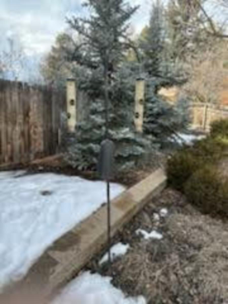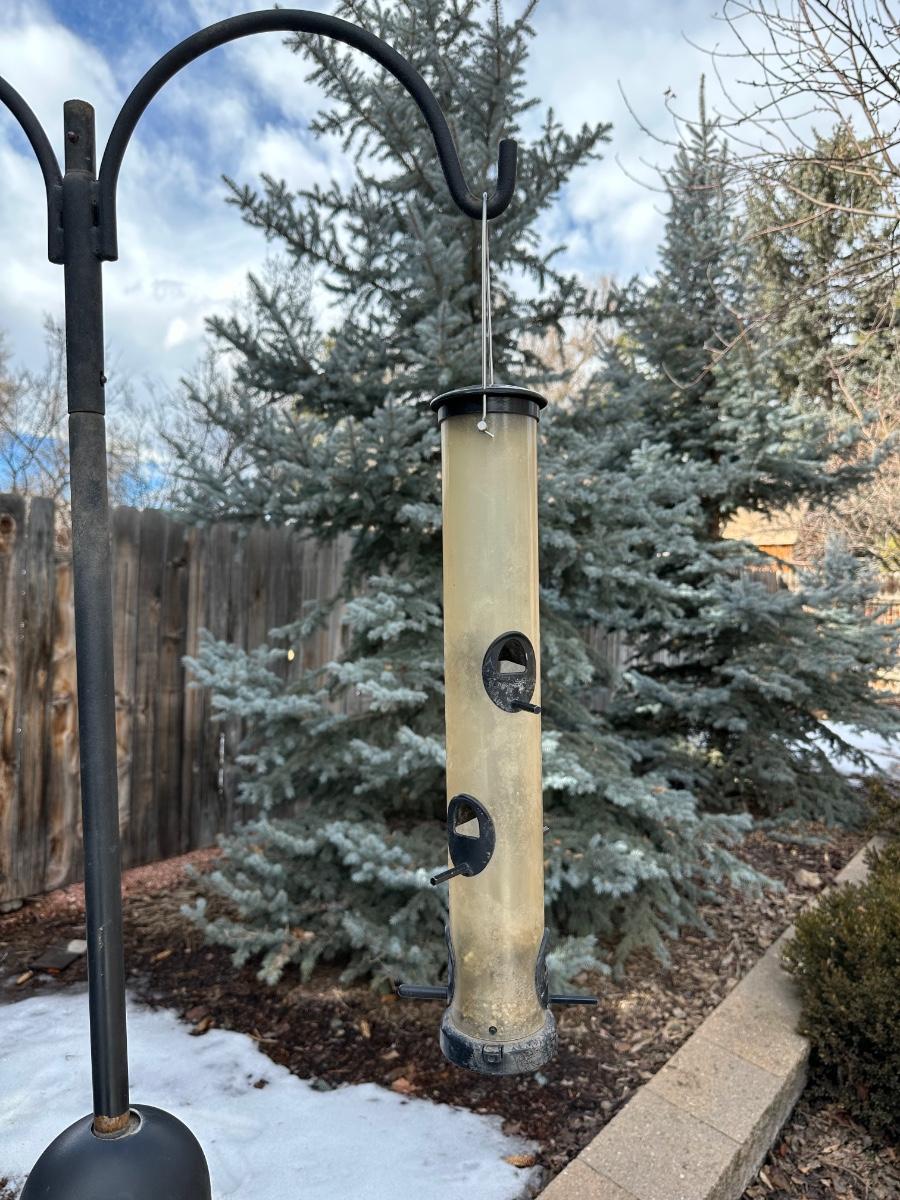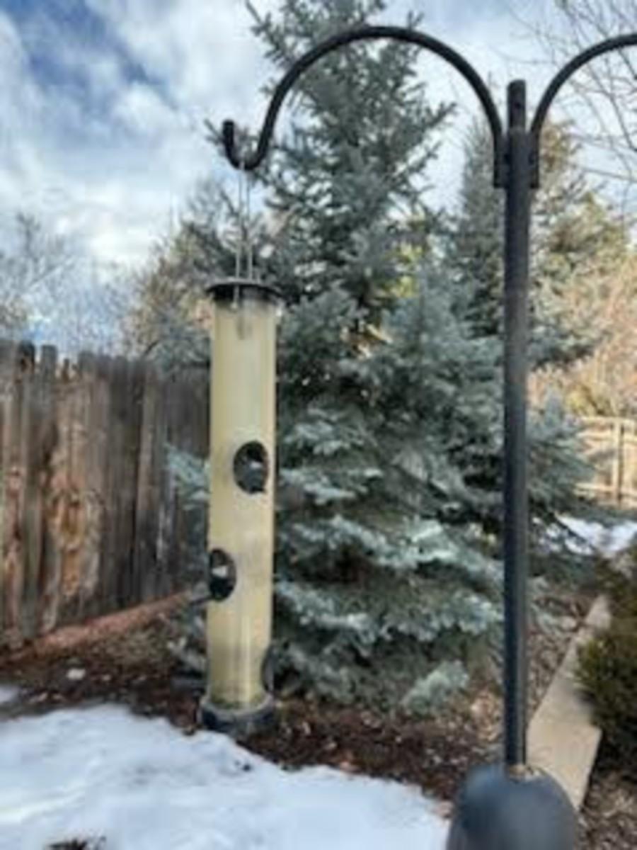 TALL DOUBLE SHEPHERDS HOOK WITH 2 HANGING BIRD FEEDERS