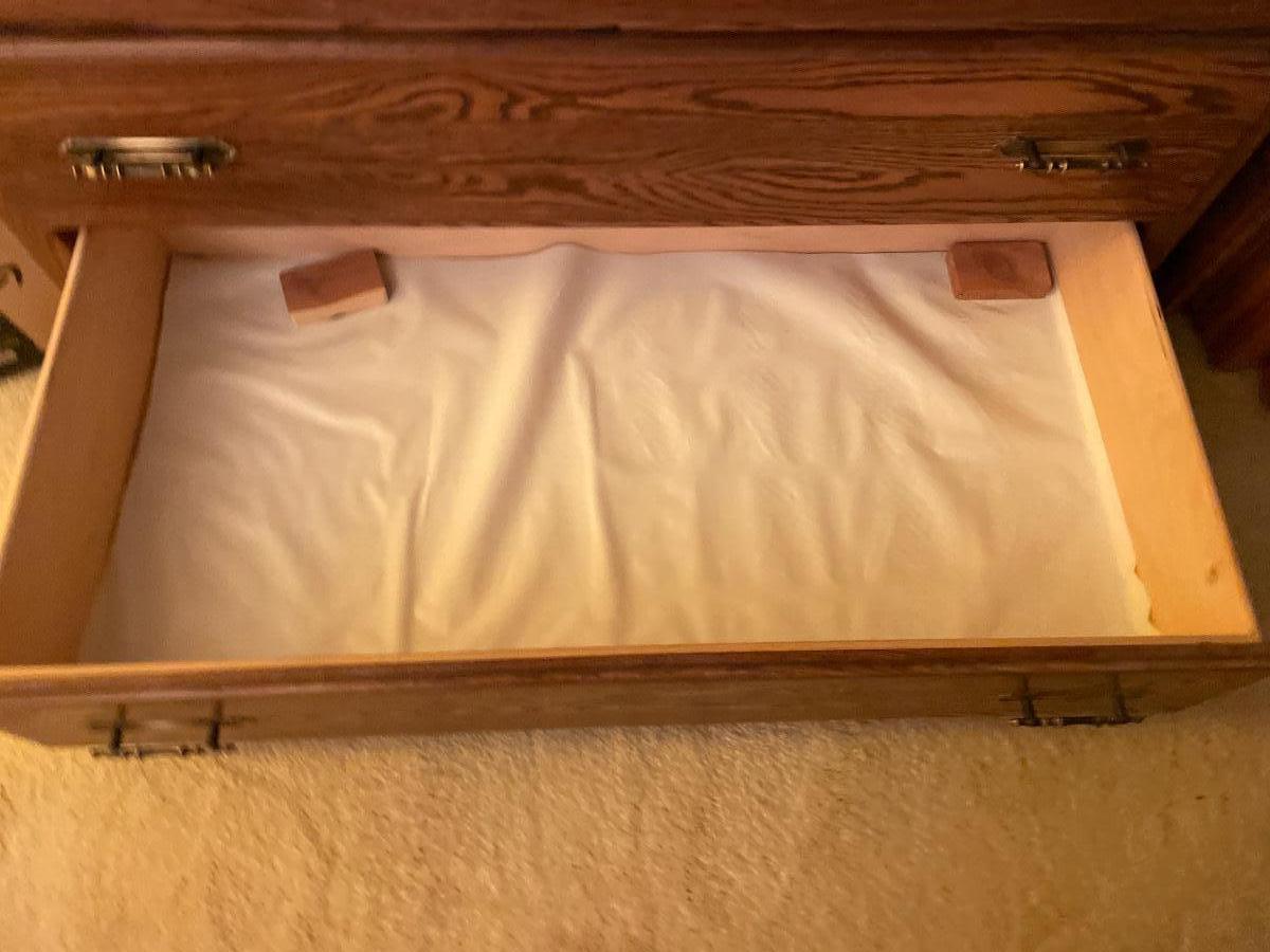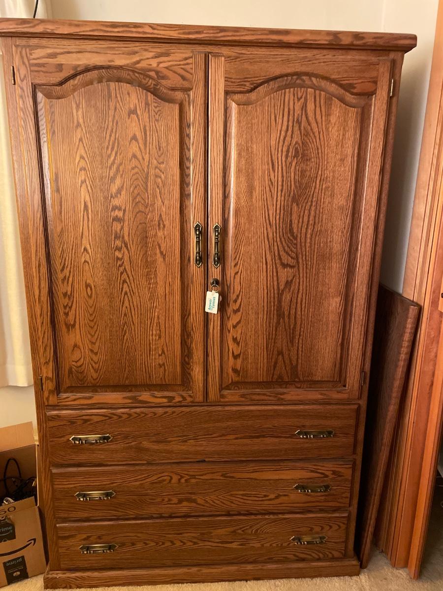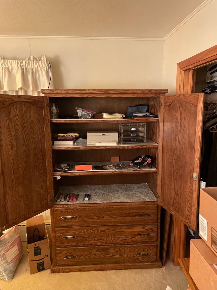 You are bidding on the dresser only. Dimensions are 44” wide x 72” tall x 22” deep: No brand name found on it. Very large drawers