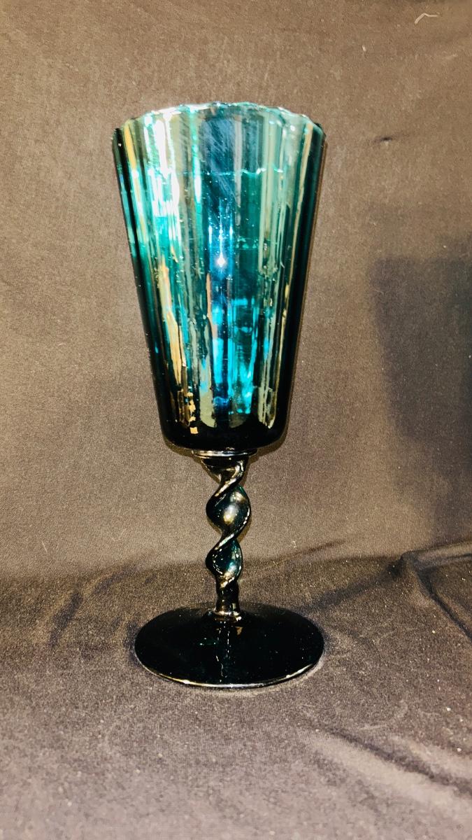 TALL TEAL EMPOLI ITALIAN TWISTED GLASS VASE