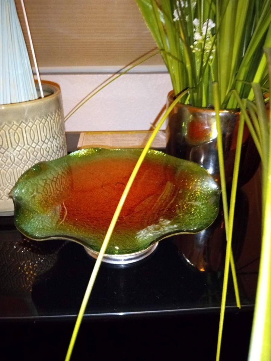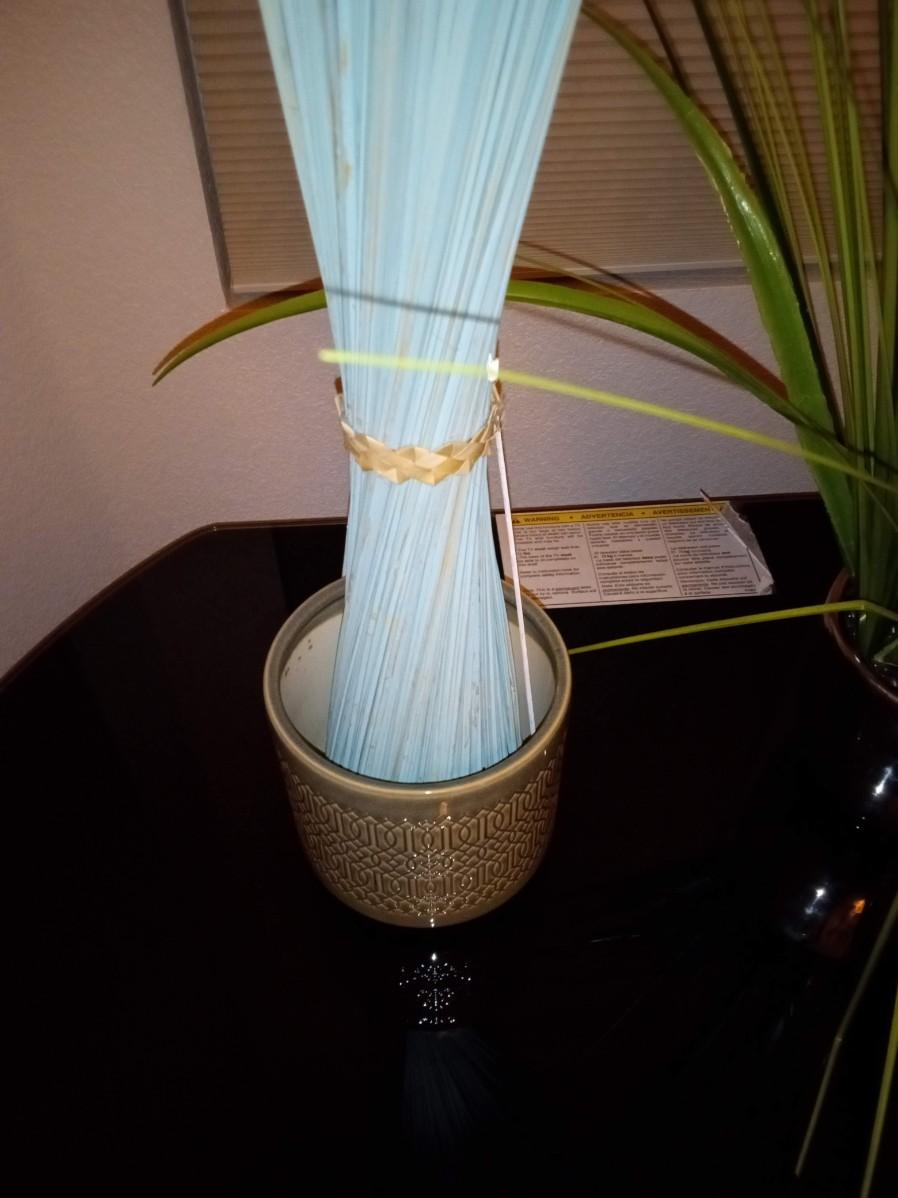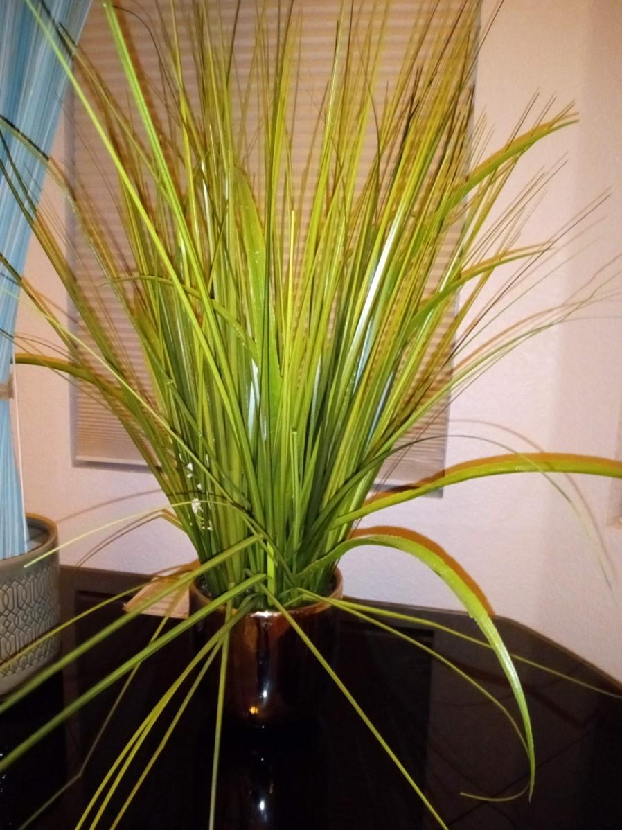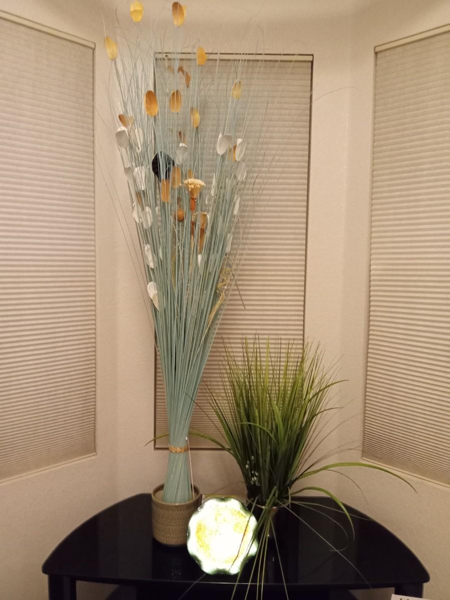 THE TALL FOLIAGE HAS LIGHT ORANGE AND CREAM LEAVES, IT STANDS 60"