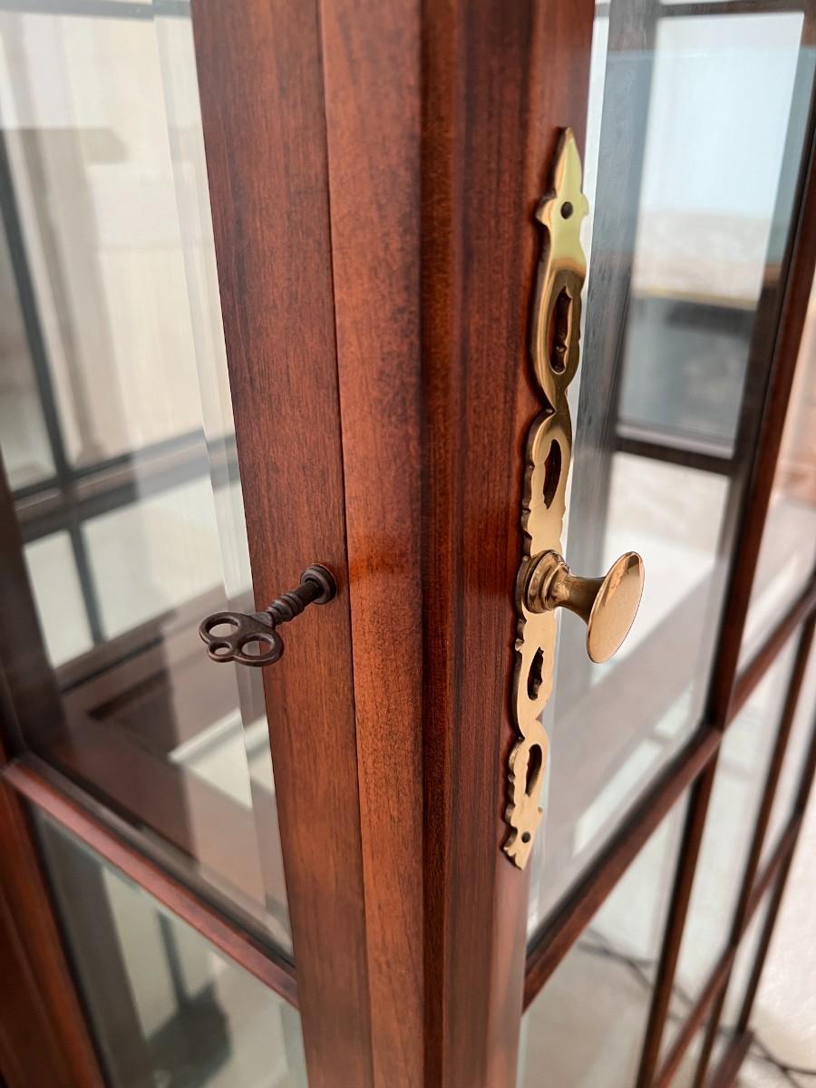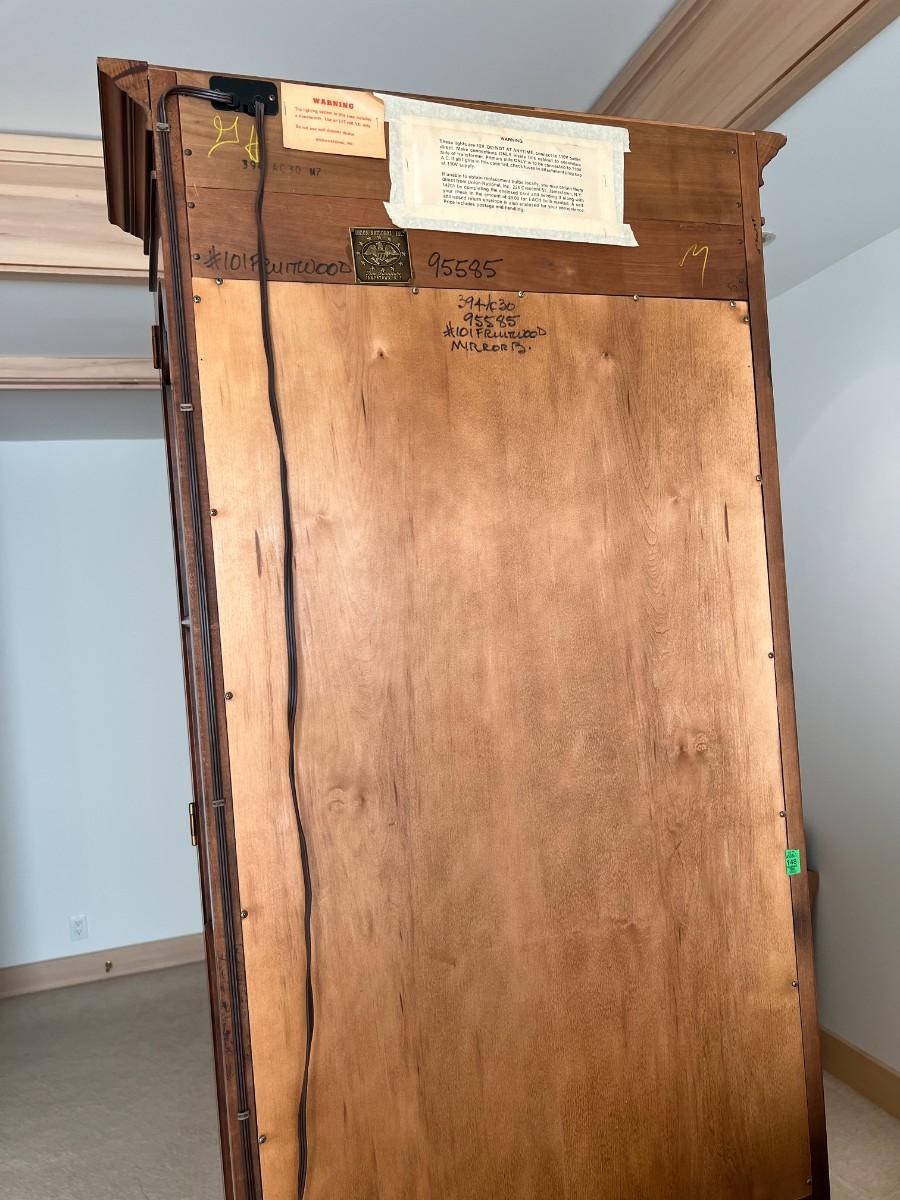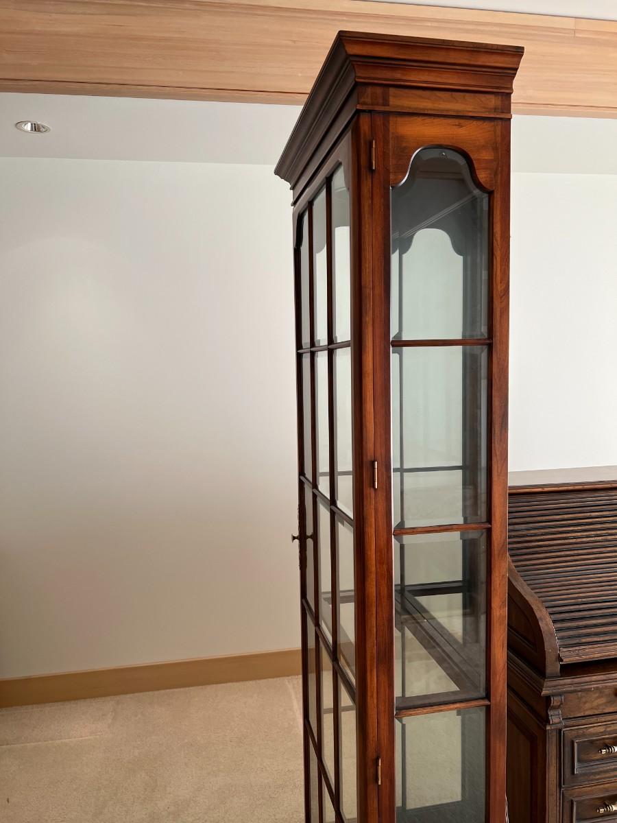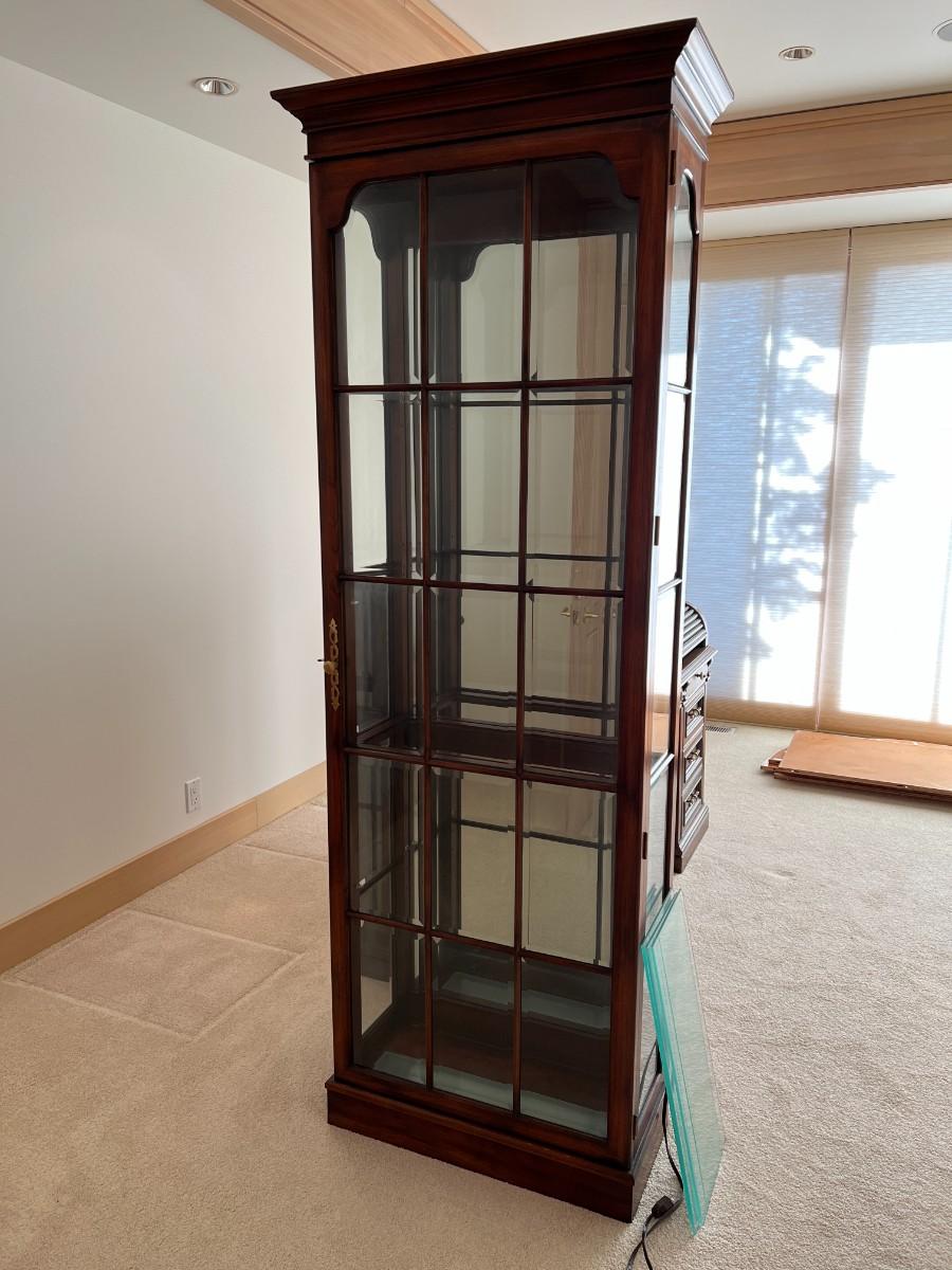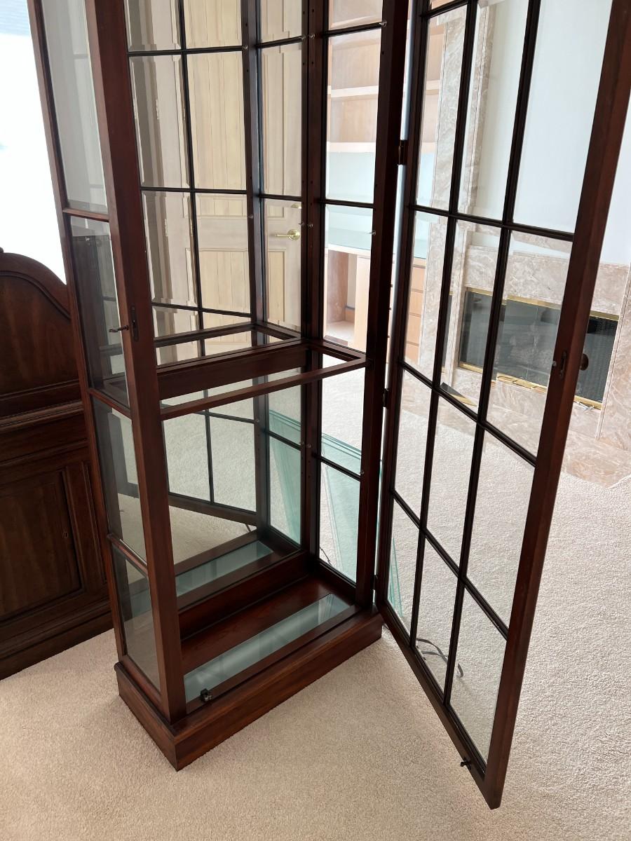 Tall Fruitwood Union-National Inc Fine Furniture Wood and Glass Lighted Display Cabinet