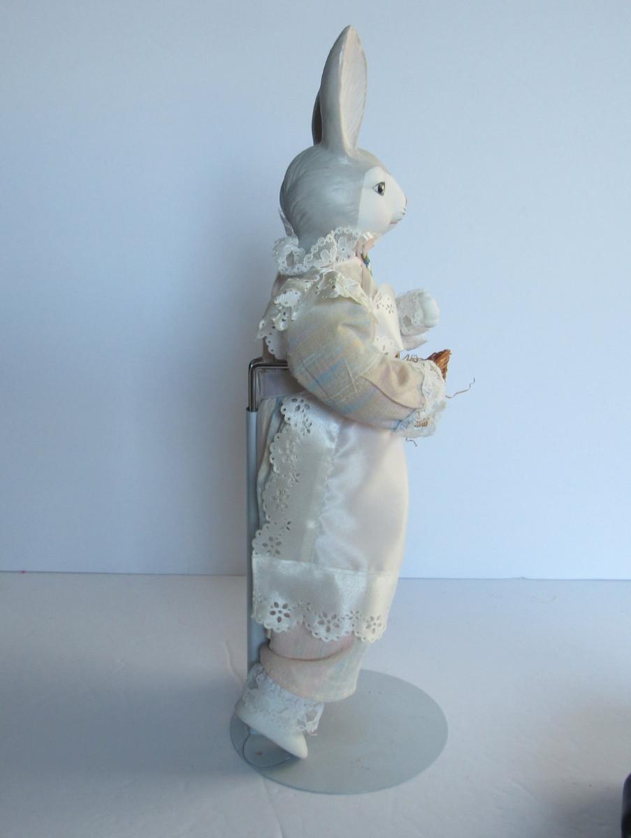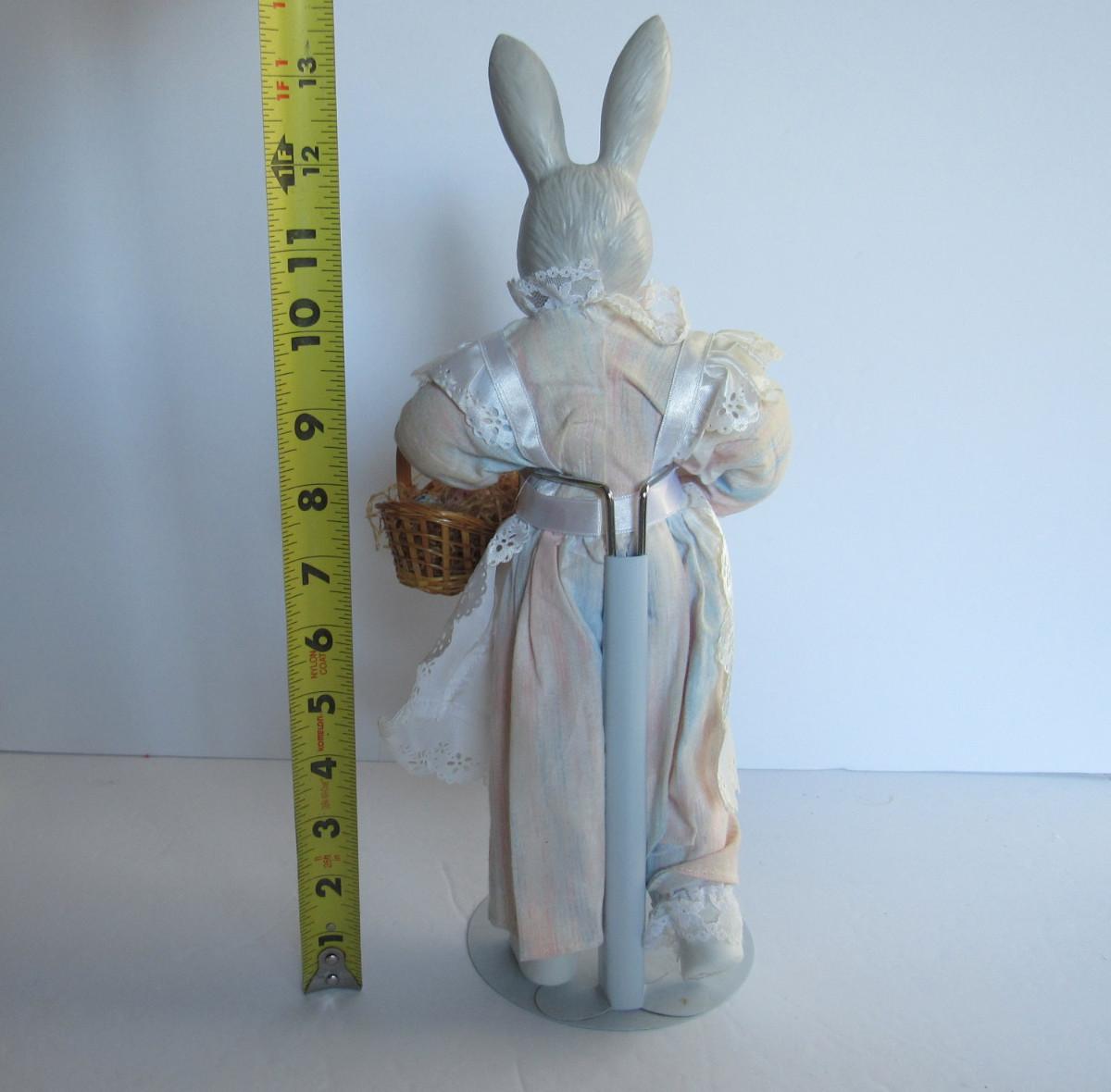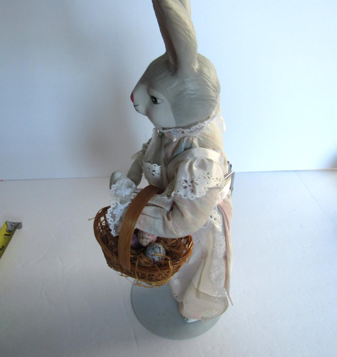 Tall Full Body Easter Rabbit Doll on Stand With Basket of Eggs