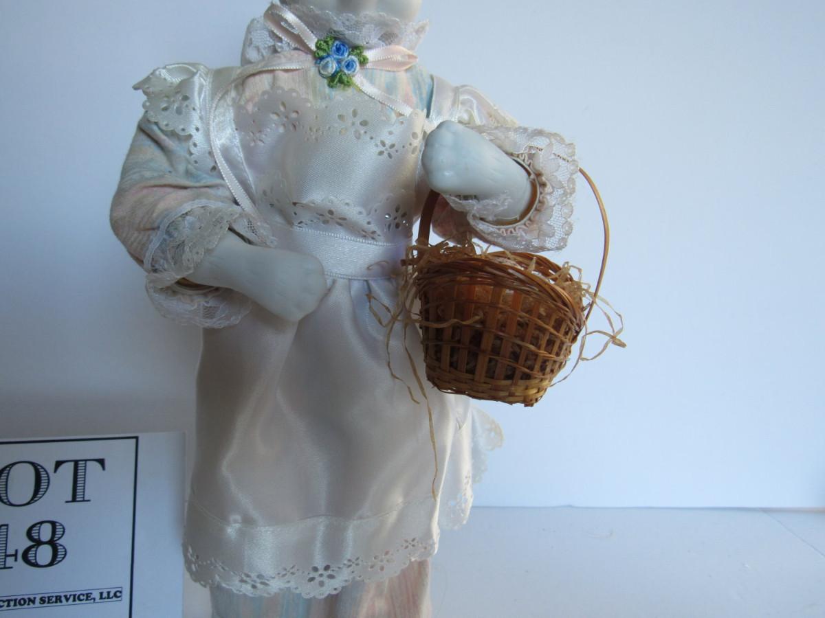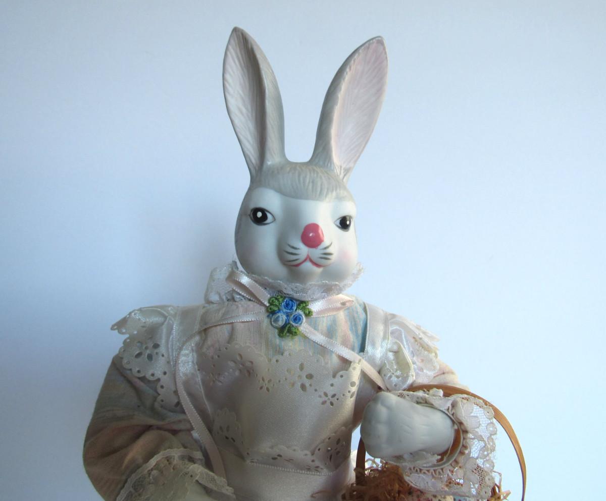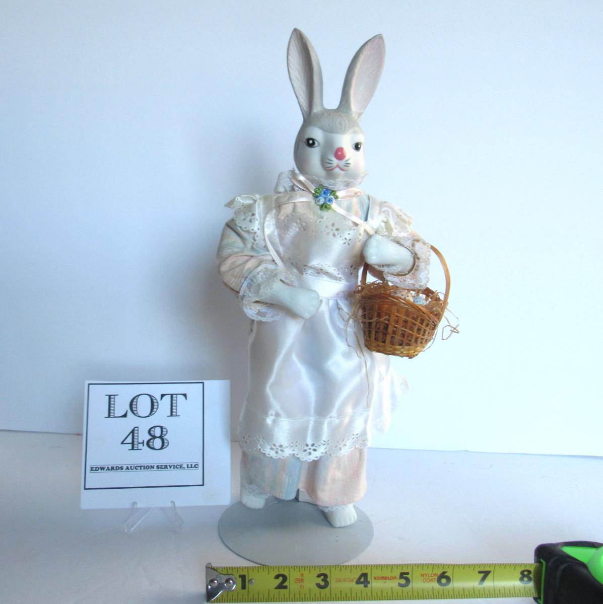 Tall Full Body Easter Rabbit Doll on Stand With Basket of Eggs