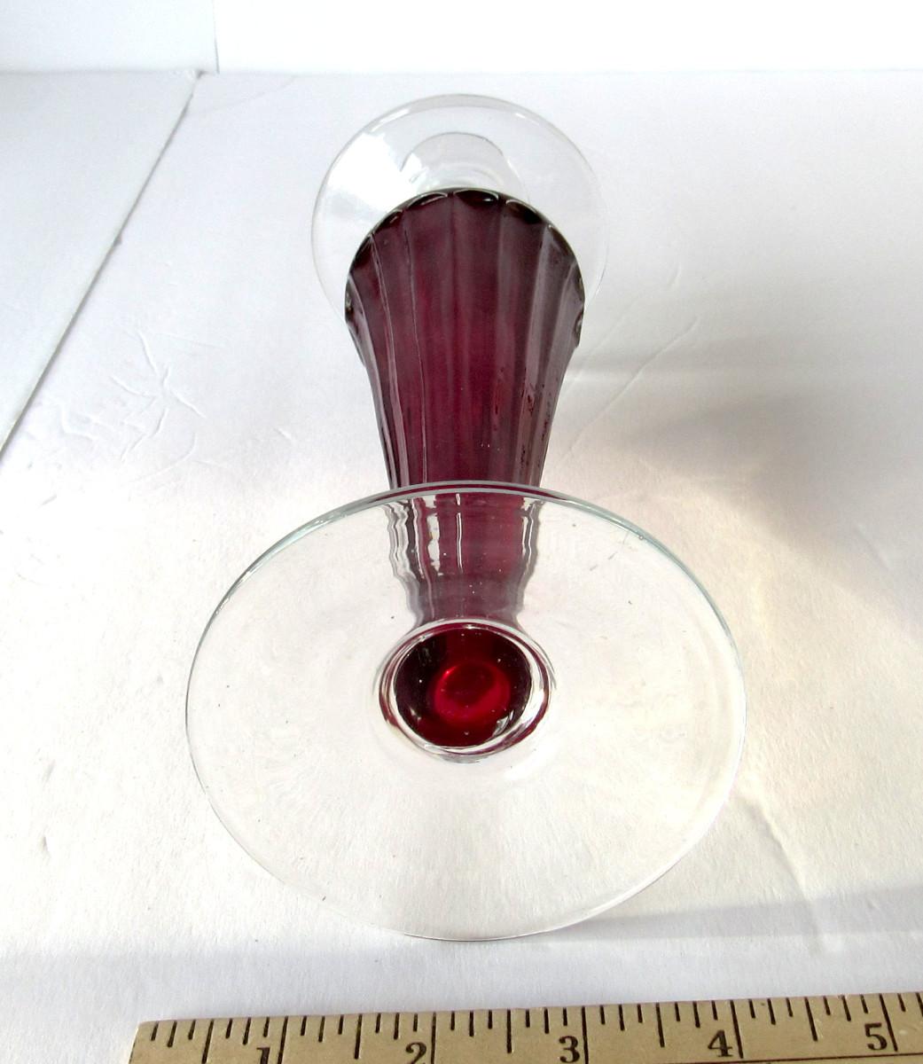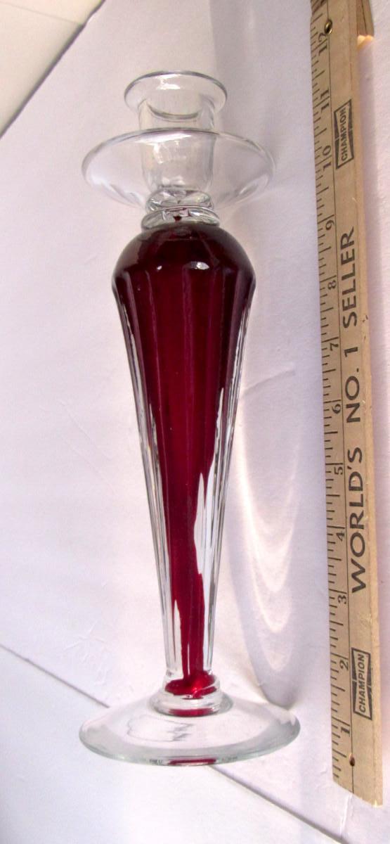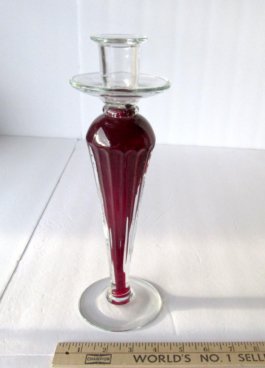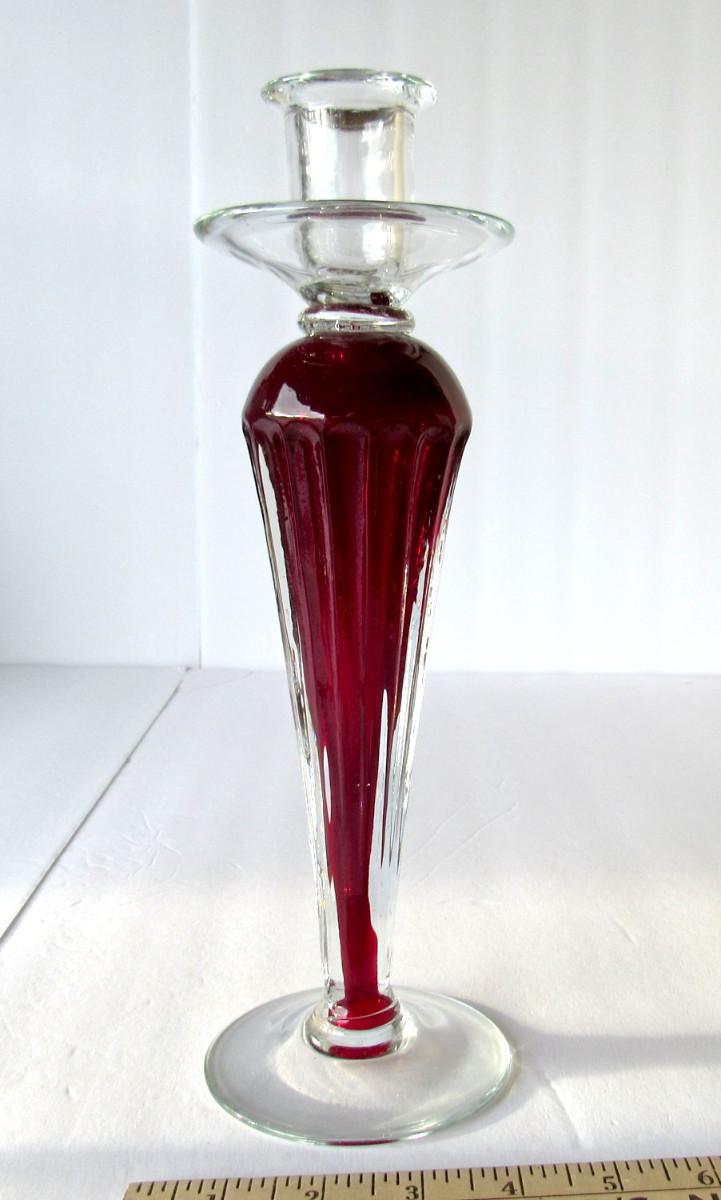 Lot 249: Tall Glass Candle Holder, Red and Clear