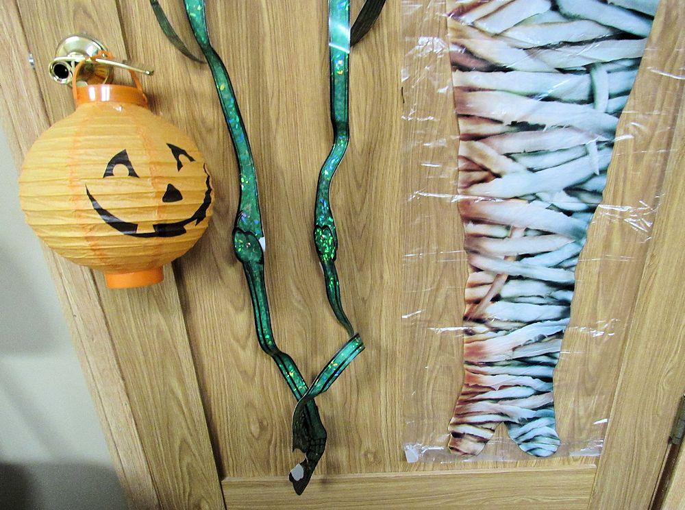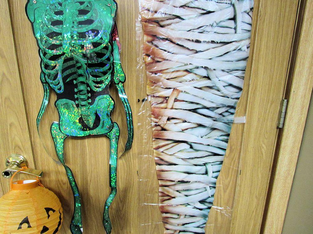 Tall Halloween Skeleton, Door Decor, and Tissue Lantern