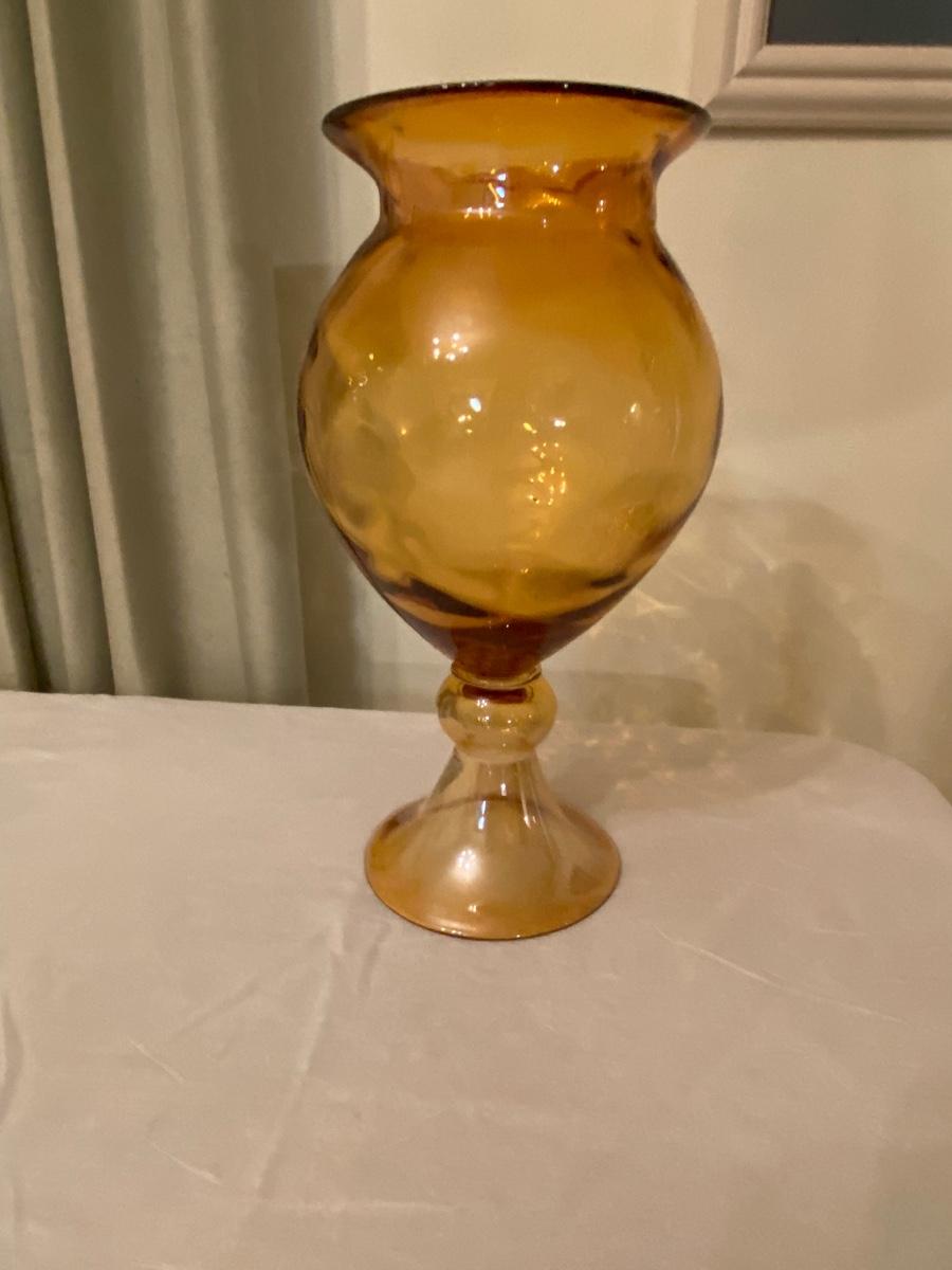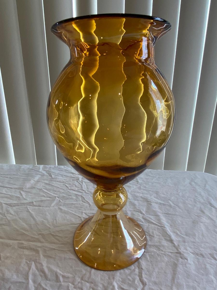 Tall hand blown amber colored vase, vintage. Excellent condition. Approx 14-1/4 x 8” dia