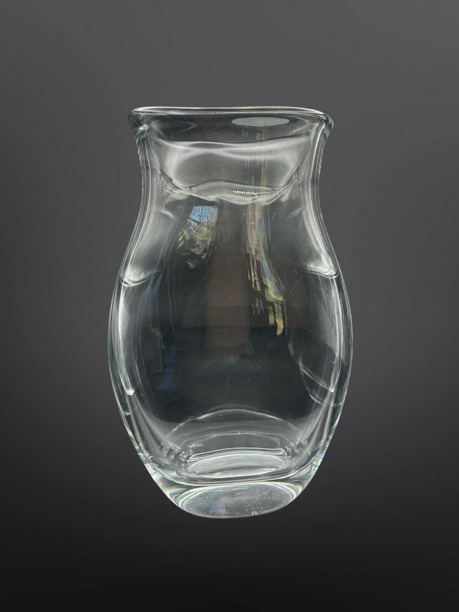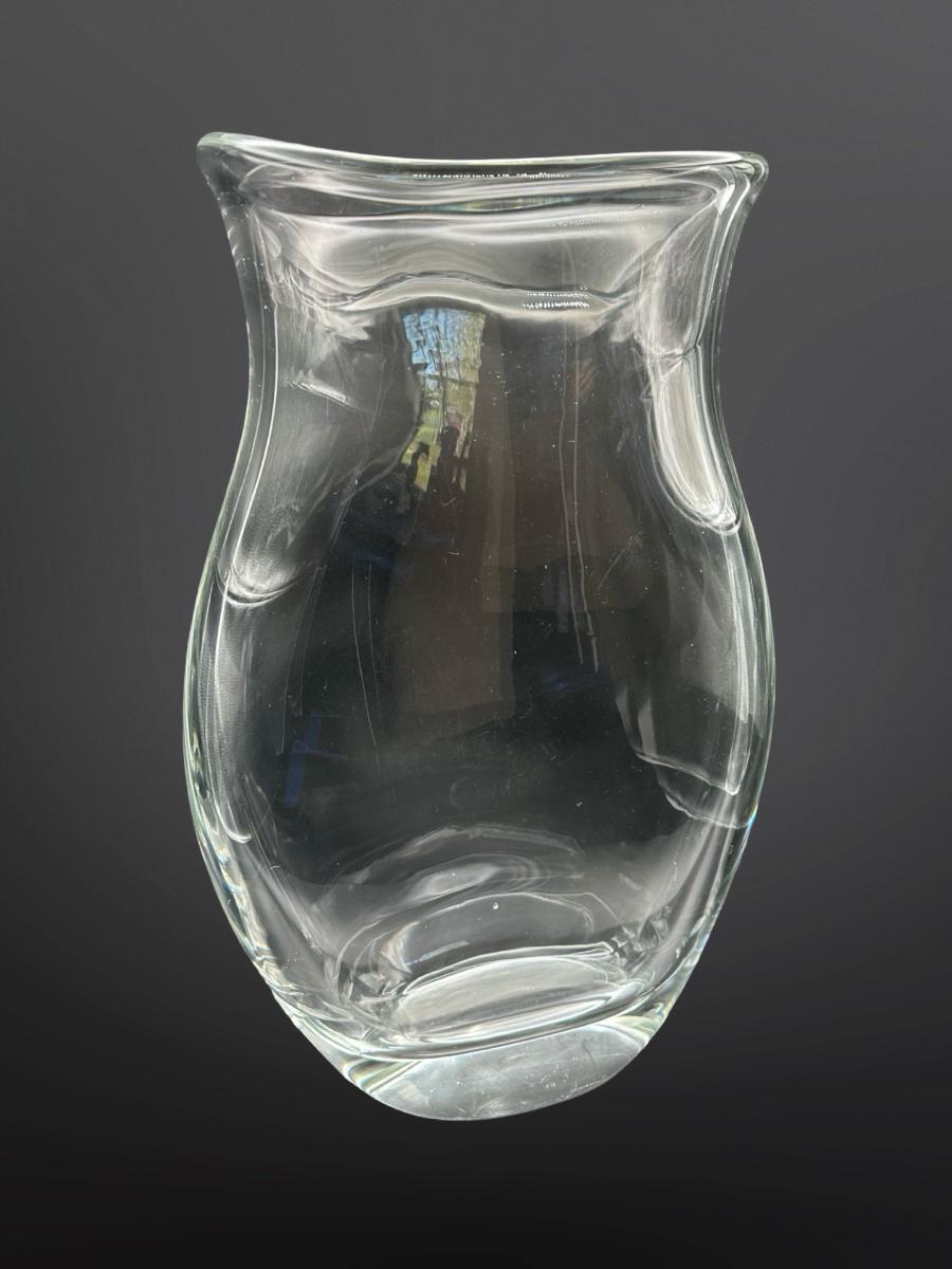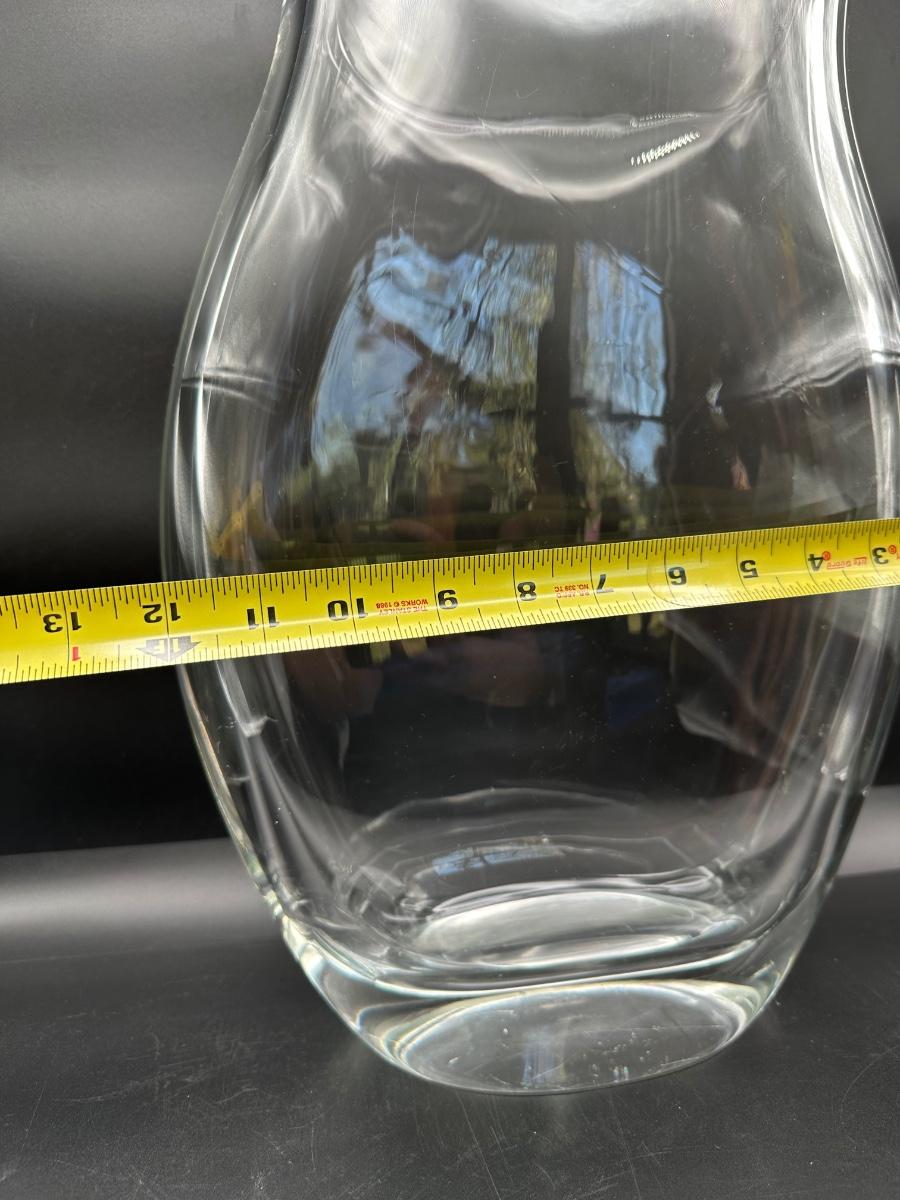 Large and heavy clear glass vase featuring thick walls and a subtly flared rim.
