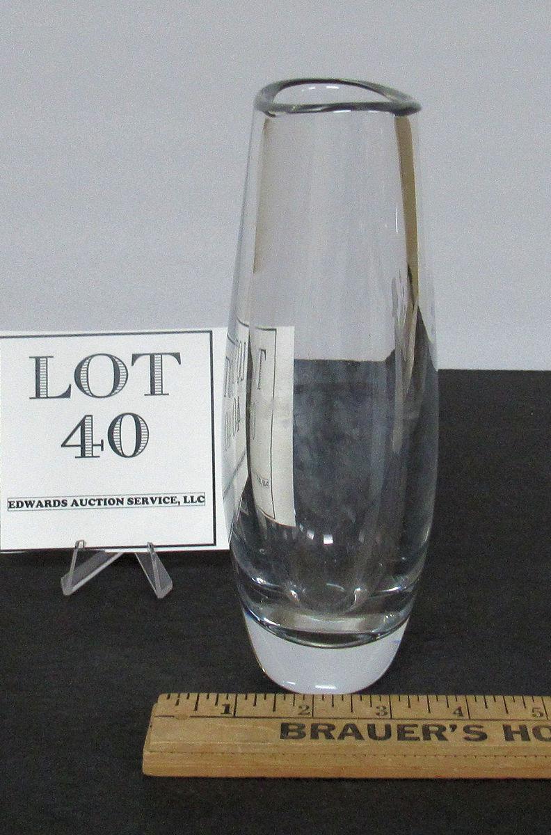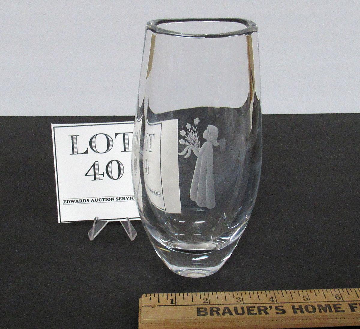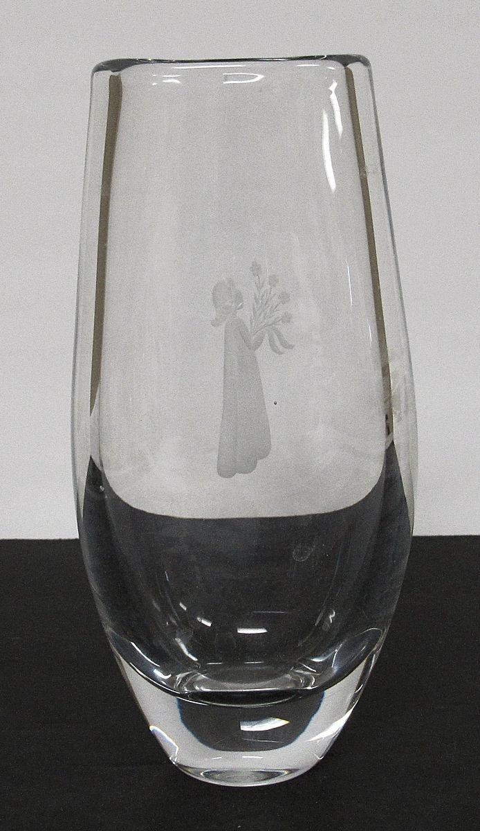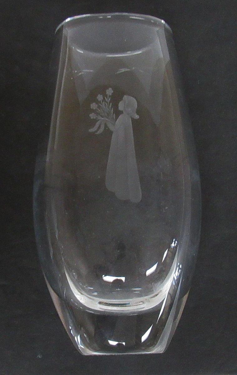 Tall Heavy Crystal Vase With Girl Cutting On Front, Marked on Bottom, Read description