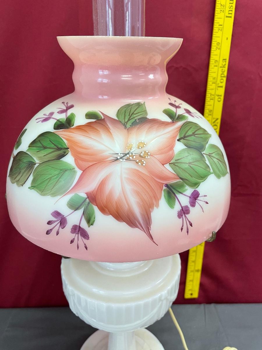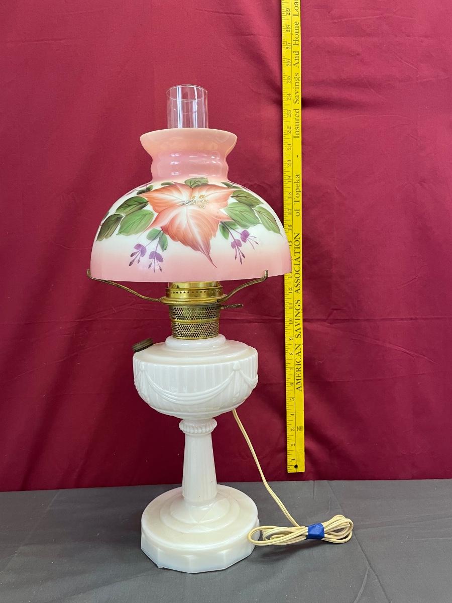 Tall Lincoln drape lamp by Aladdin w/ floral shade