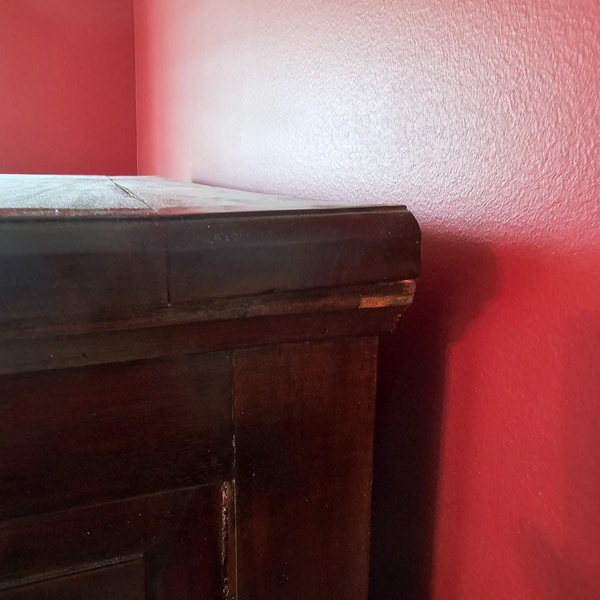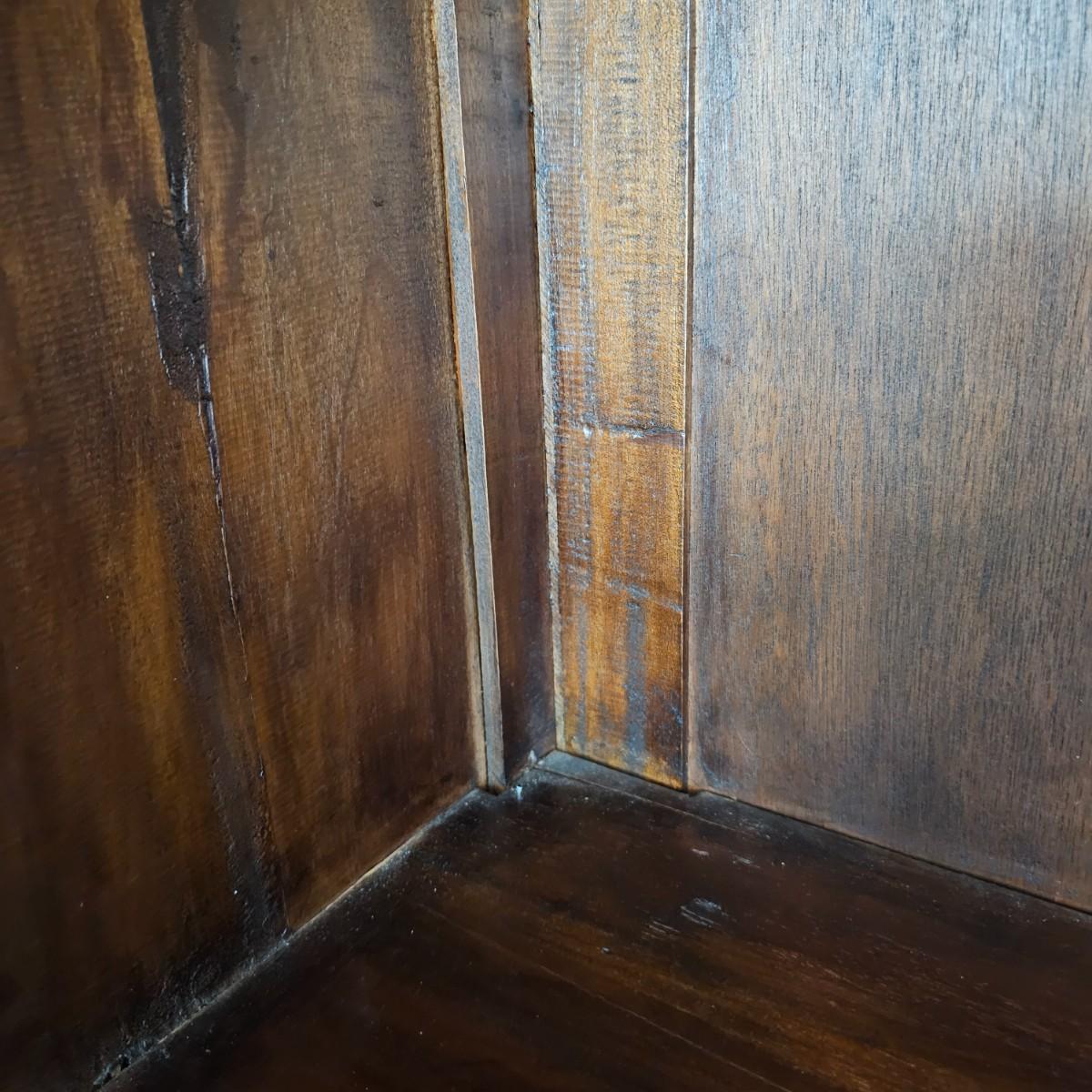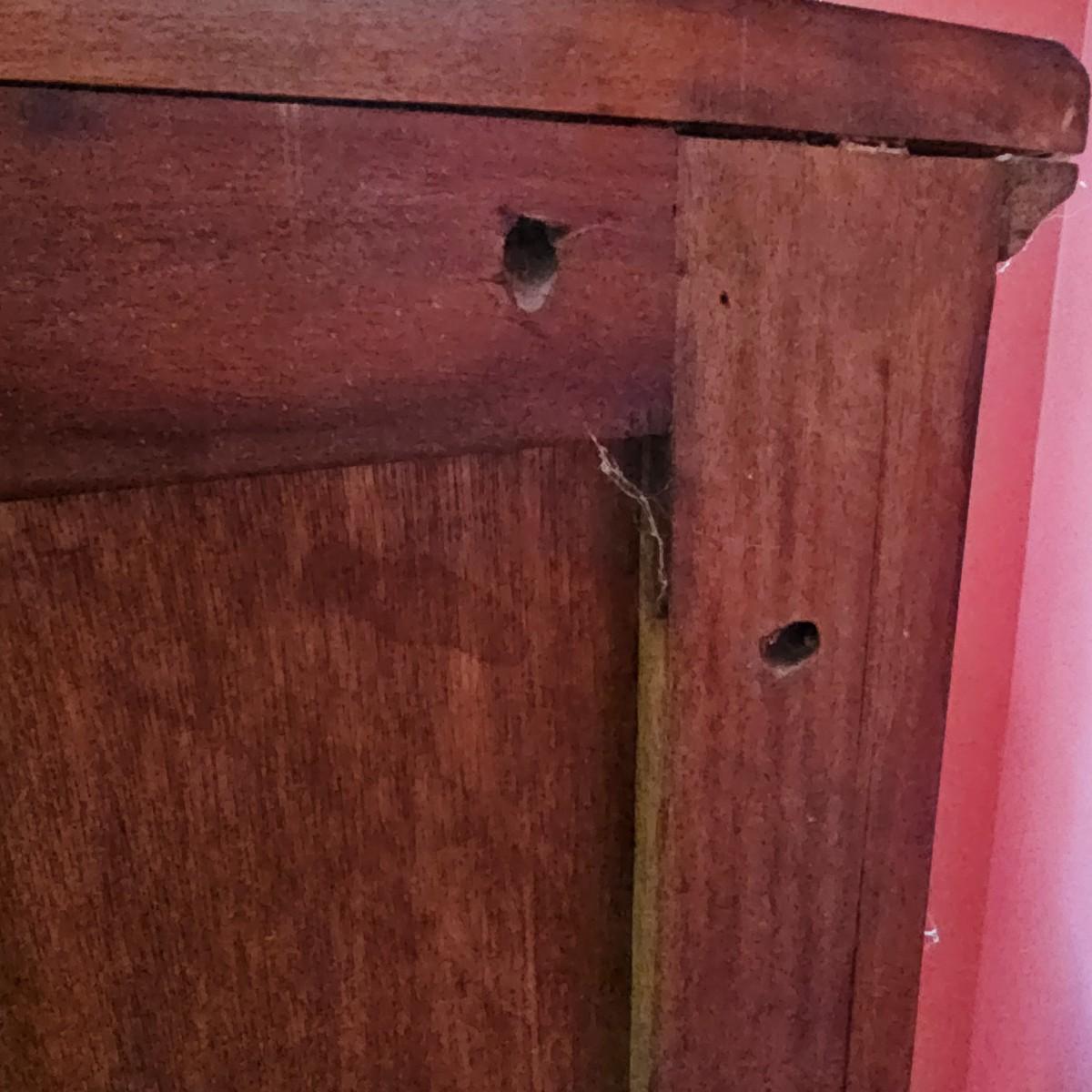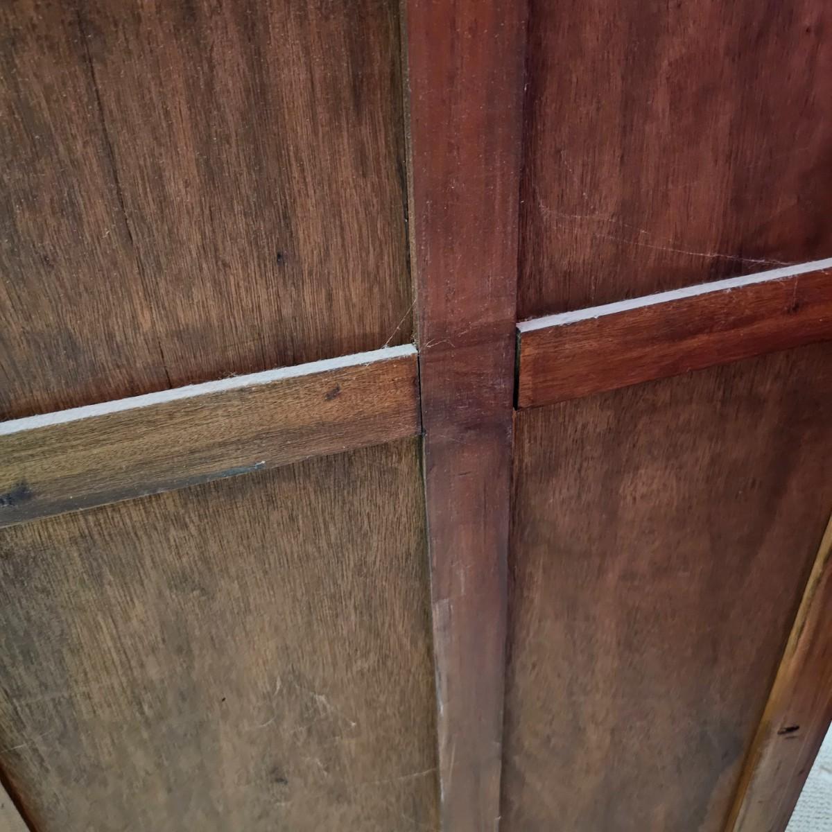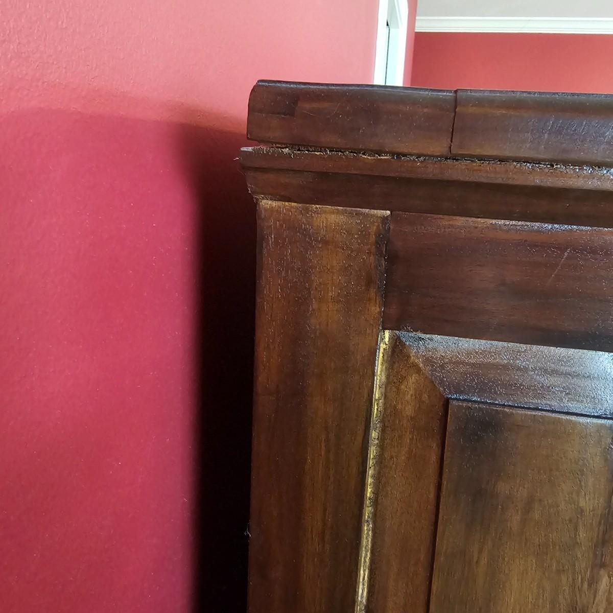 Sixteen drawers and a closed storage space at top. Two glass doors swing open for bulkier Storage. Sixteen drawers are all lined. Top of item has slight warp on back edge. Measures 16" x 31.5" x 64.5"H. See photos for details. Local pickup only. Winning bidder must bring assistance to help move and load this item due to its weight and/or size. Item is on first floor.