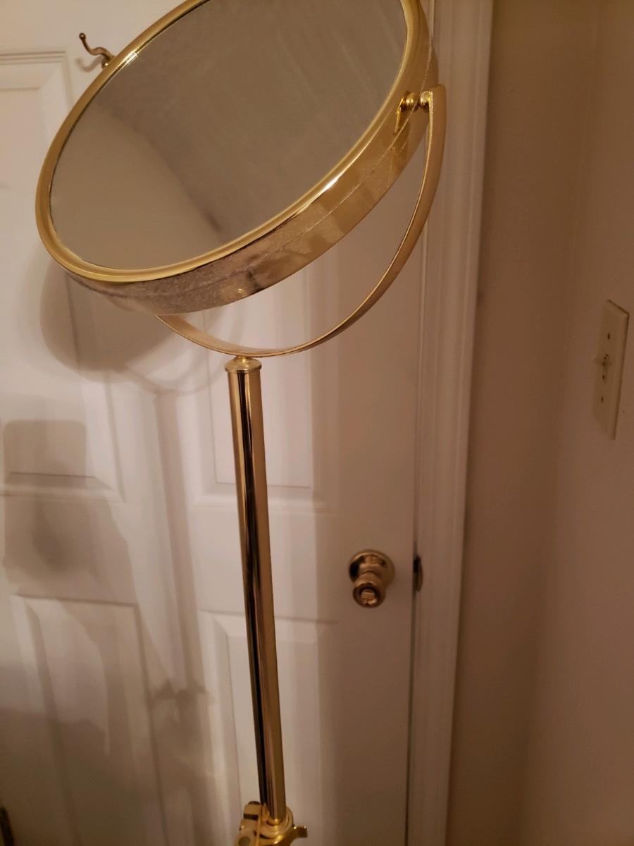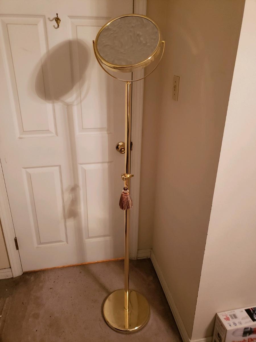 Tall magnifying mirror on stand. Top swivels and it stands 64" tall. Like new