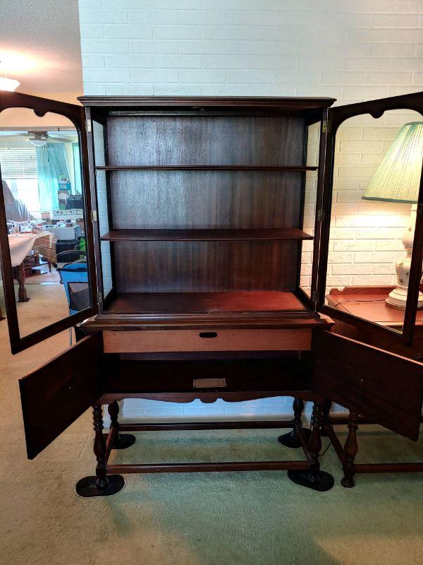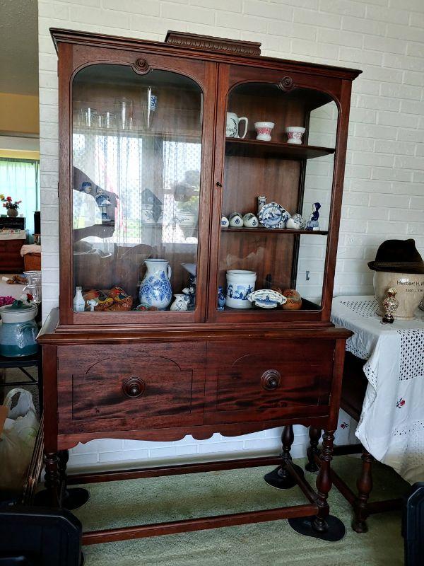 Please Don't Let The Sales Tax etc Scare You Away; There Is None; Can Pay In Cash. Tall mahogany 1 piece hutch 42” wide x 16” deep x 67” tall. Final Estate Sale! Everything Must Go! Rock Bottom Prices!