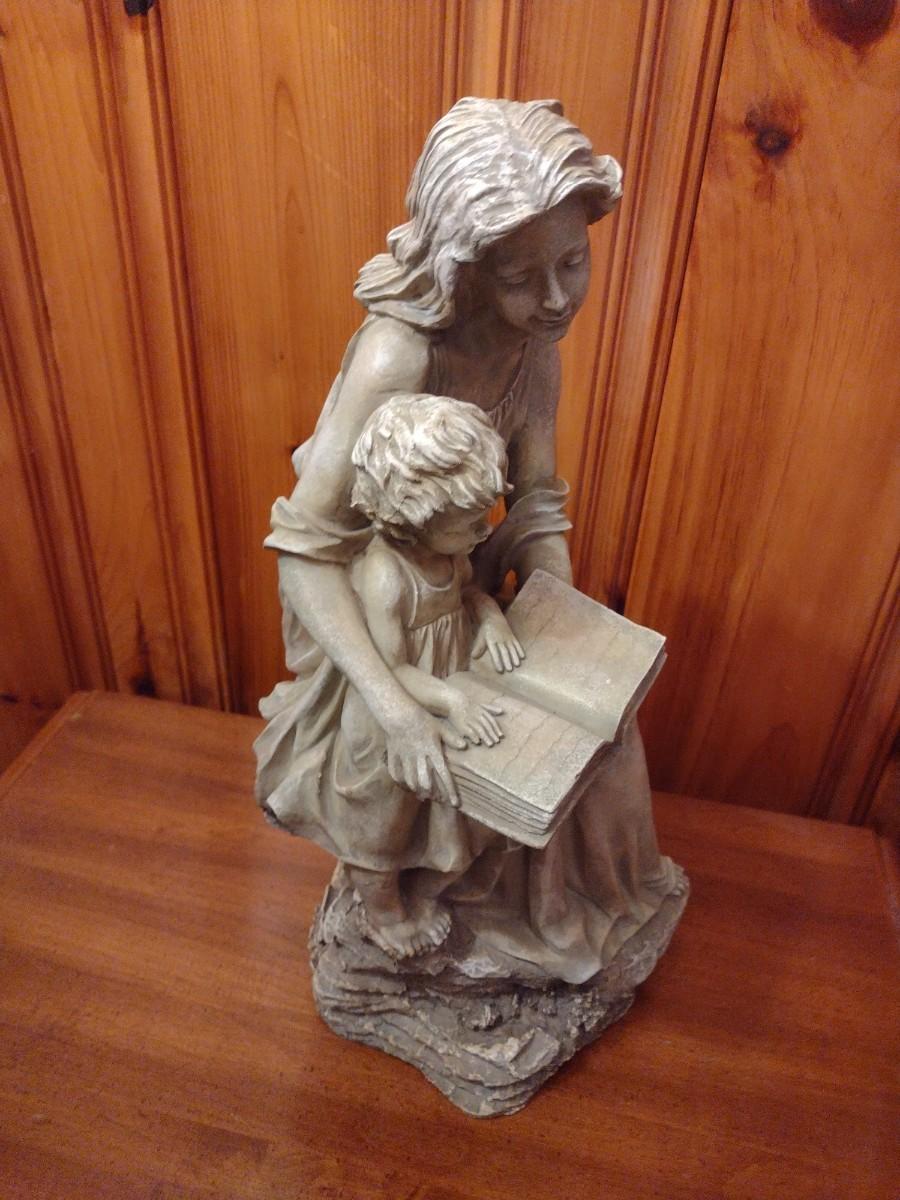 Tall Mother and Child Reading Statuette