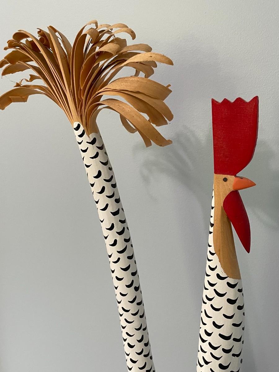 Tall painted wooden rooster by Lonnie & Twyla Money