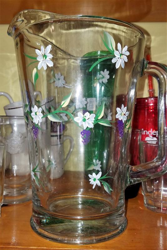 Nice Hand Painted Pitcher accompanied with glassware including Polish Mug