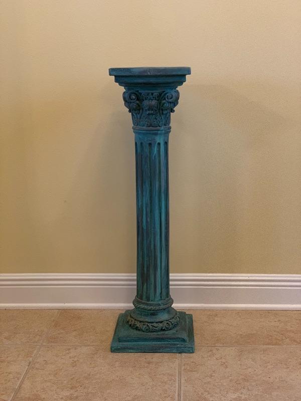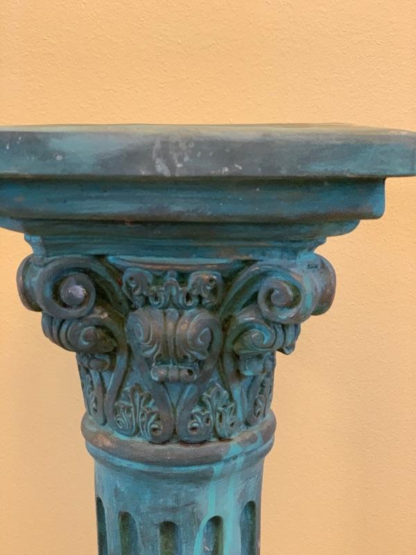 35" Tall Plaster Patina’d Pedestal / Plant Stand