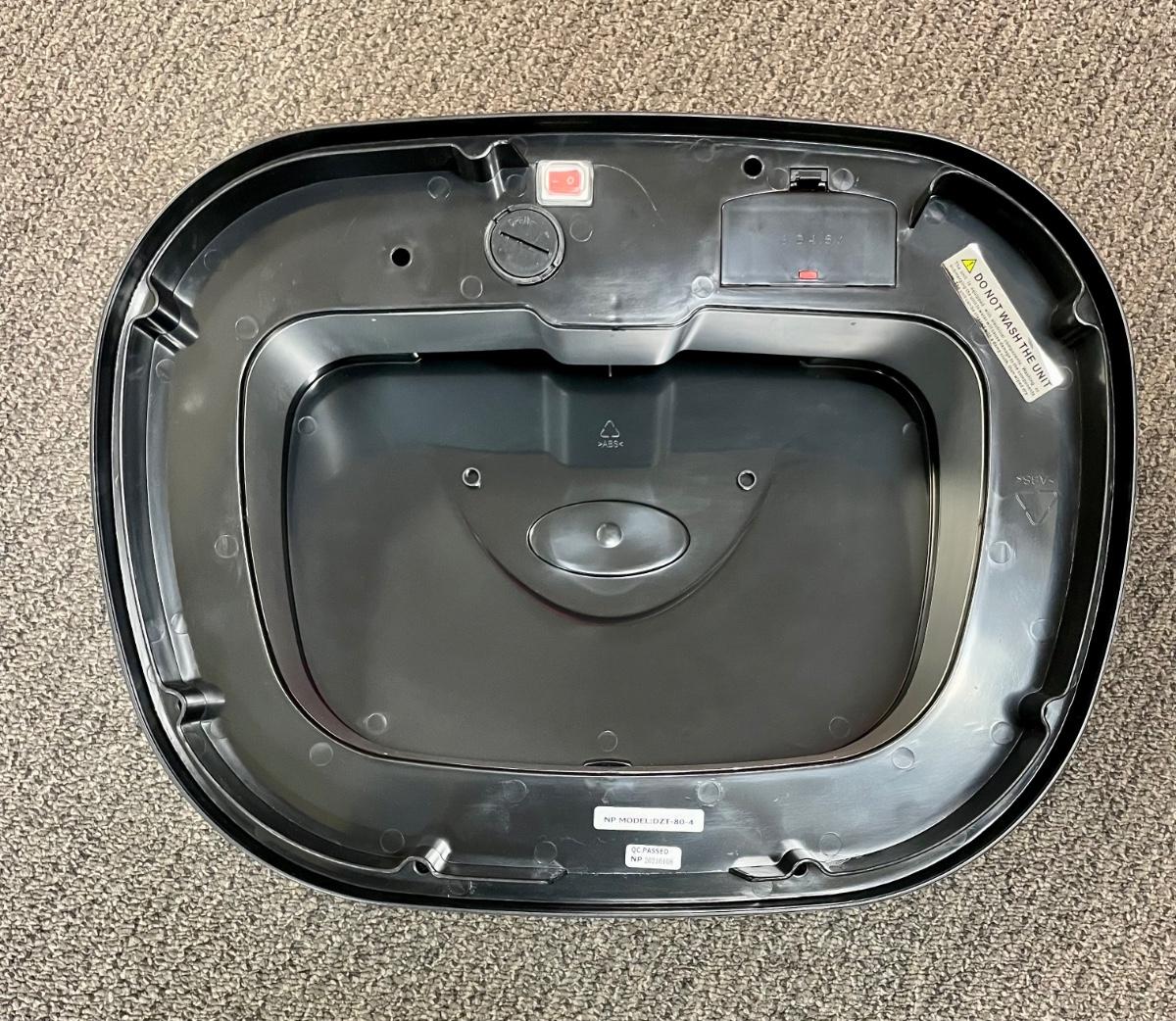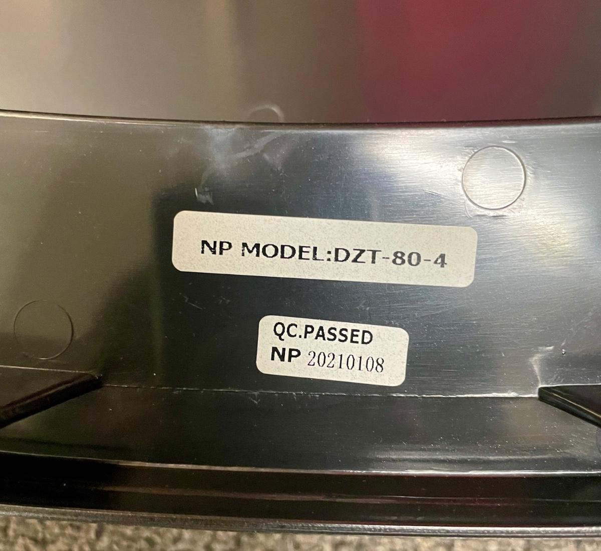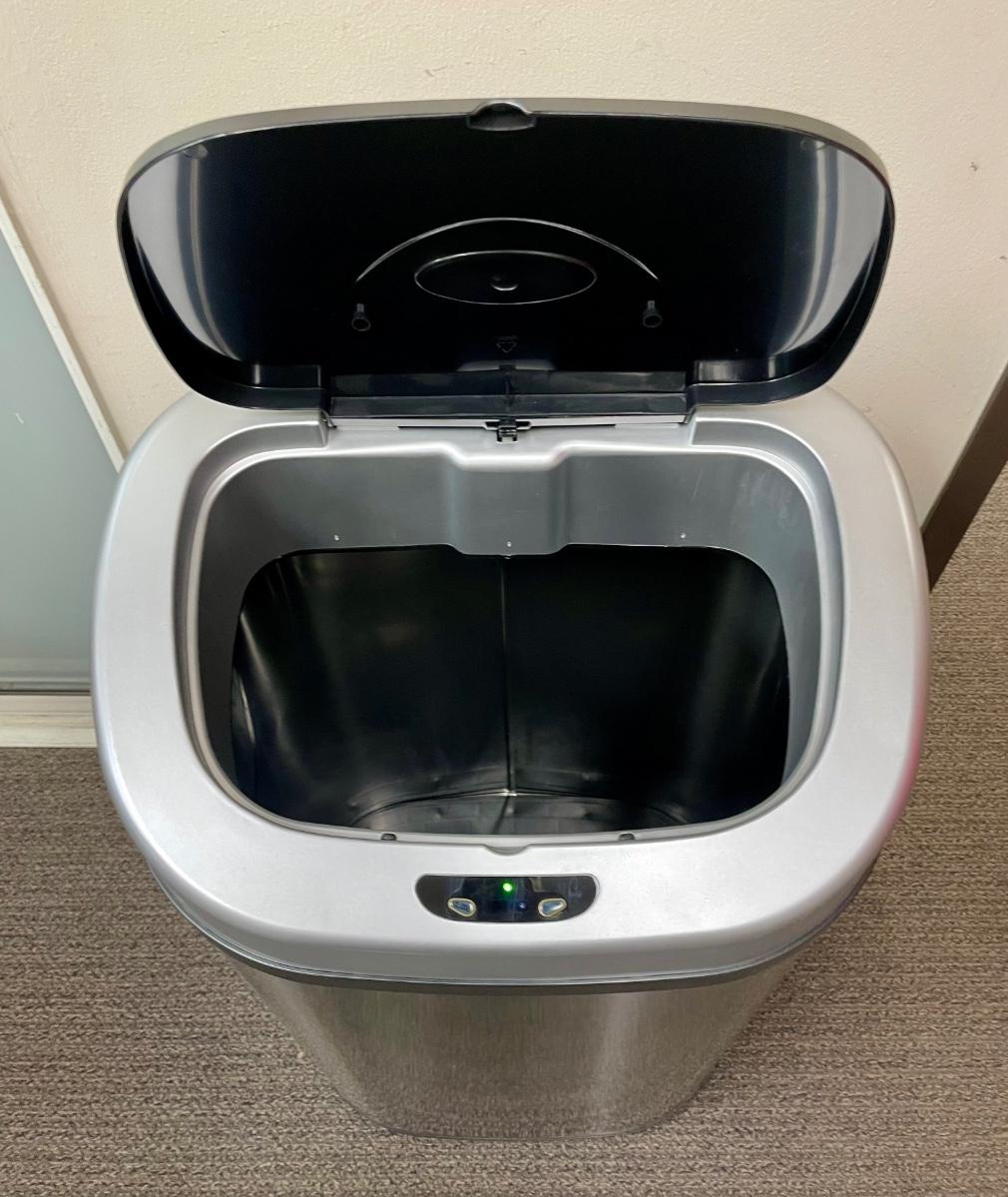 Nine Stars Trash can with sensor-controlled lid. Uses 3 "D" batteries. Model DZT-80-4. 21.1 gallon / 80 liter capacity. Fully tested, Approx 27" tall, 18" wide, and 14" deep.