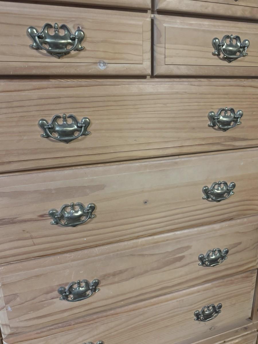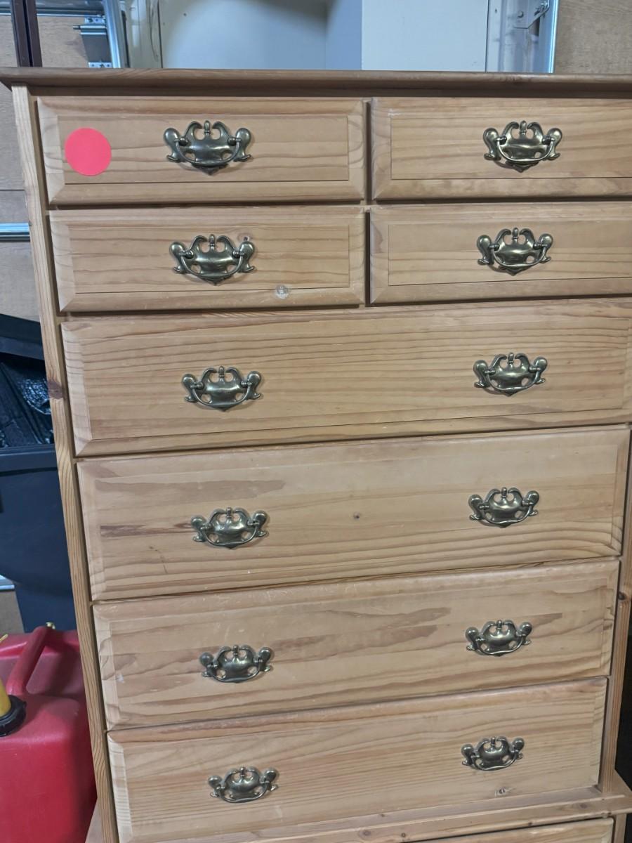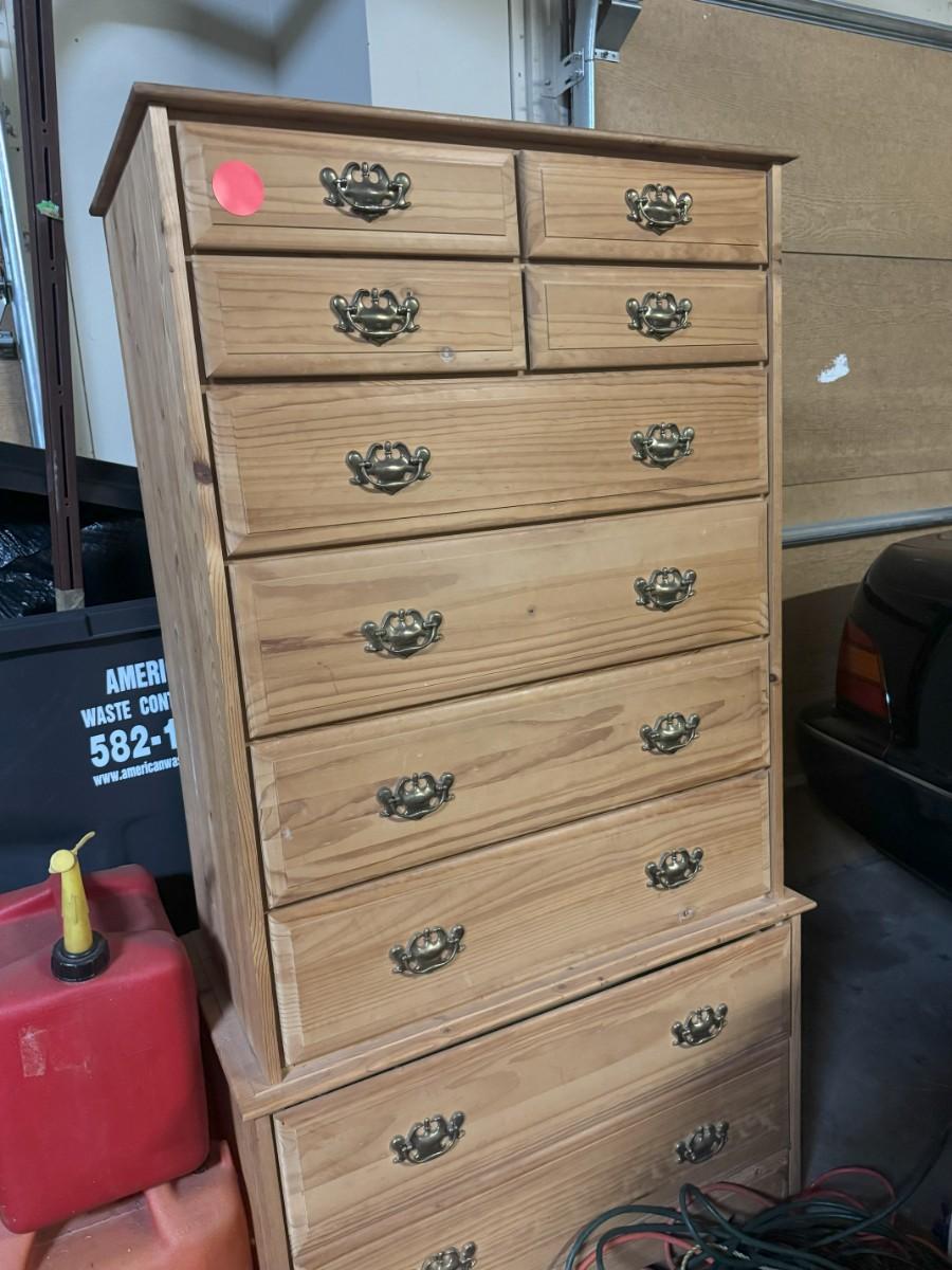 Tall Raw Wood Chest of Drawers. Approximately 63"H. Does not include gas can or anything else in picture.