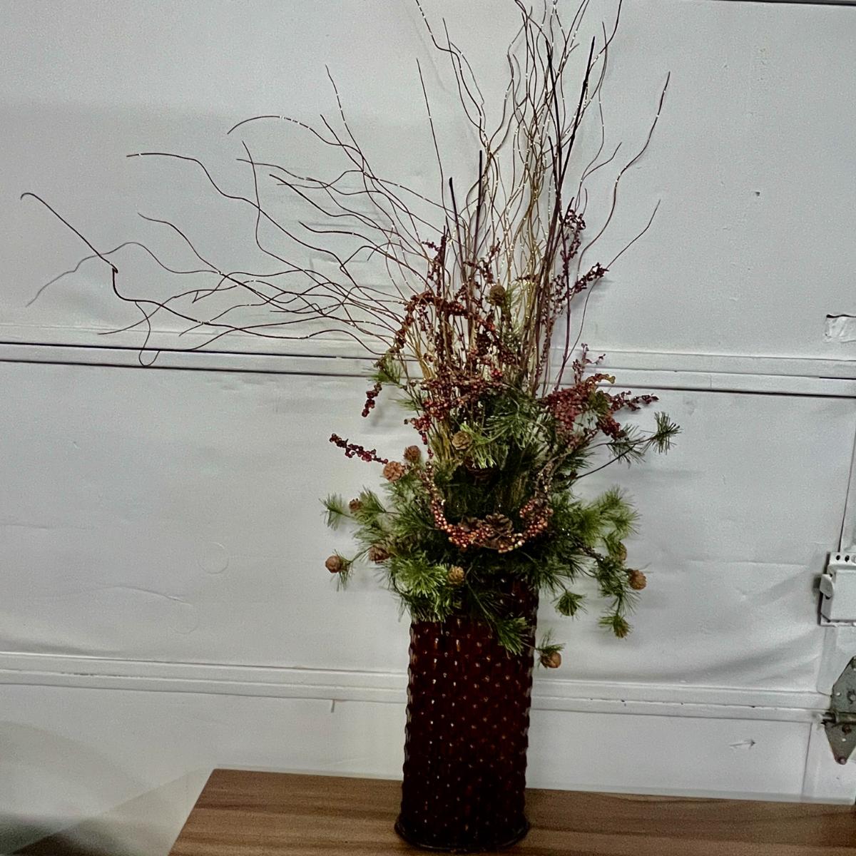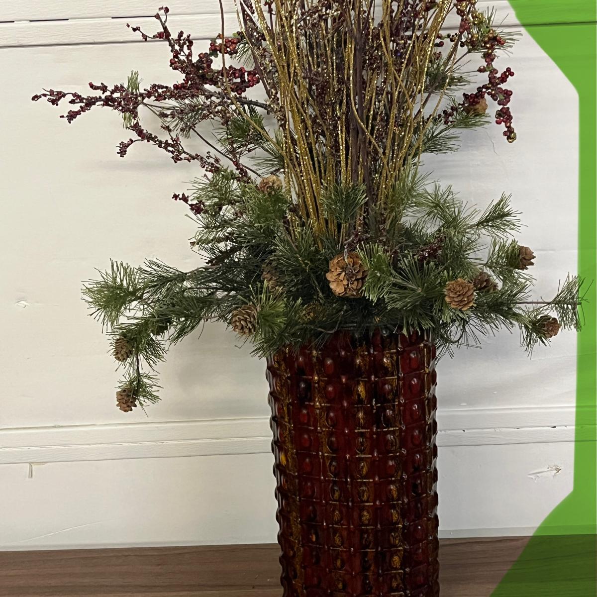 Tall Red Vase with Dried Arrangement