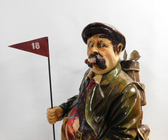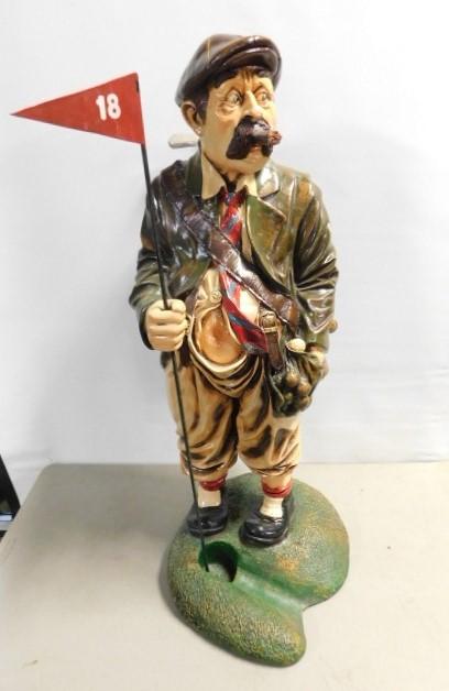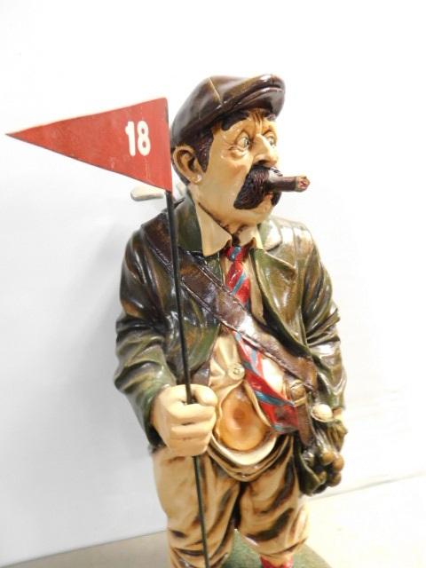 Tall Resin Early Days Golf Caddy Statue 40" golf club has some damage as shown