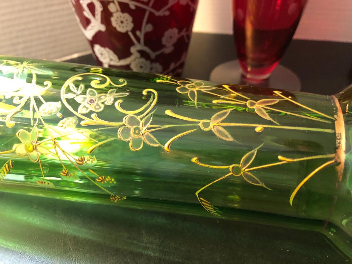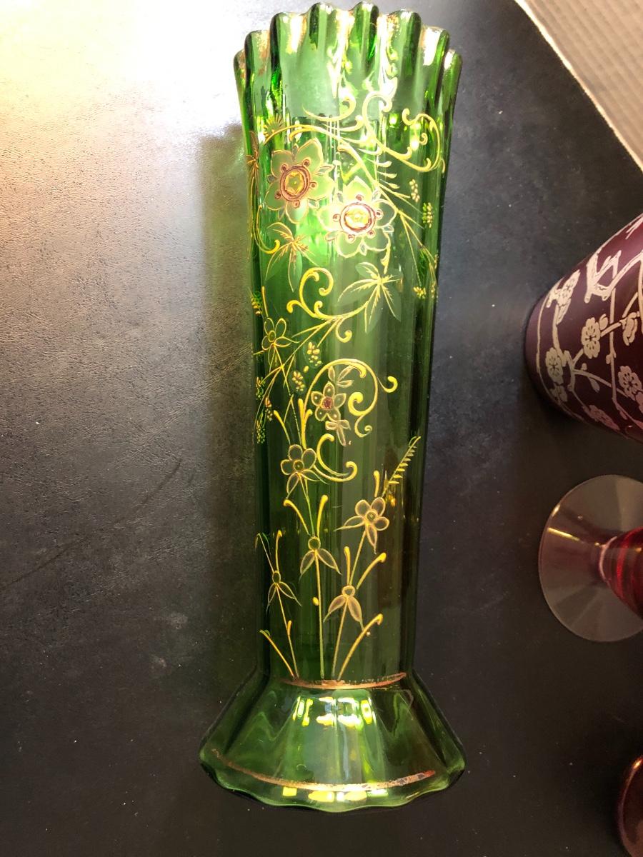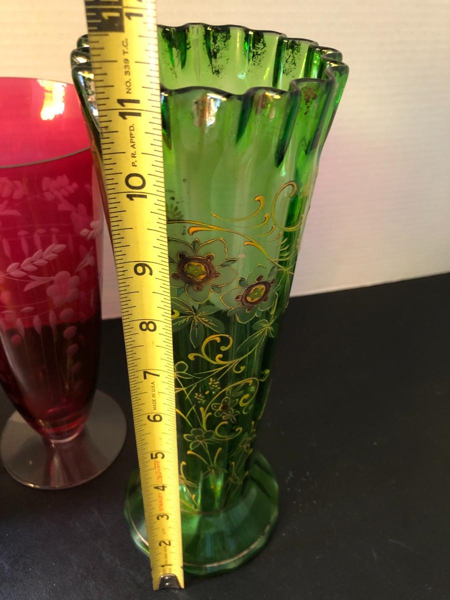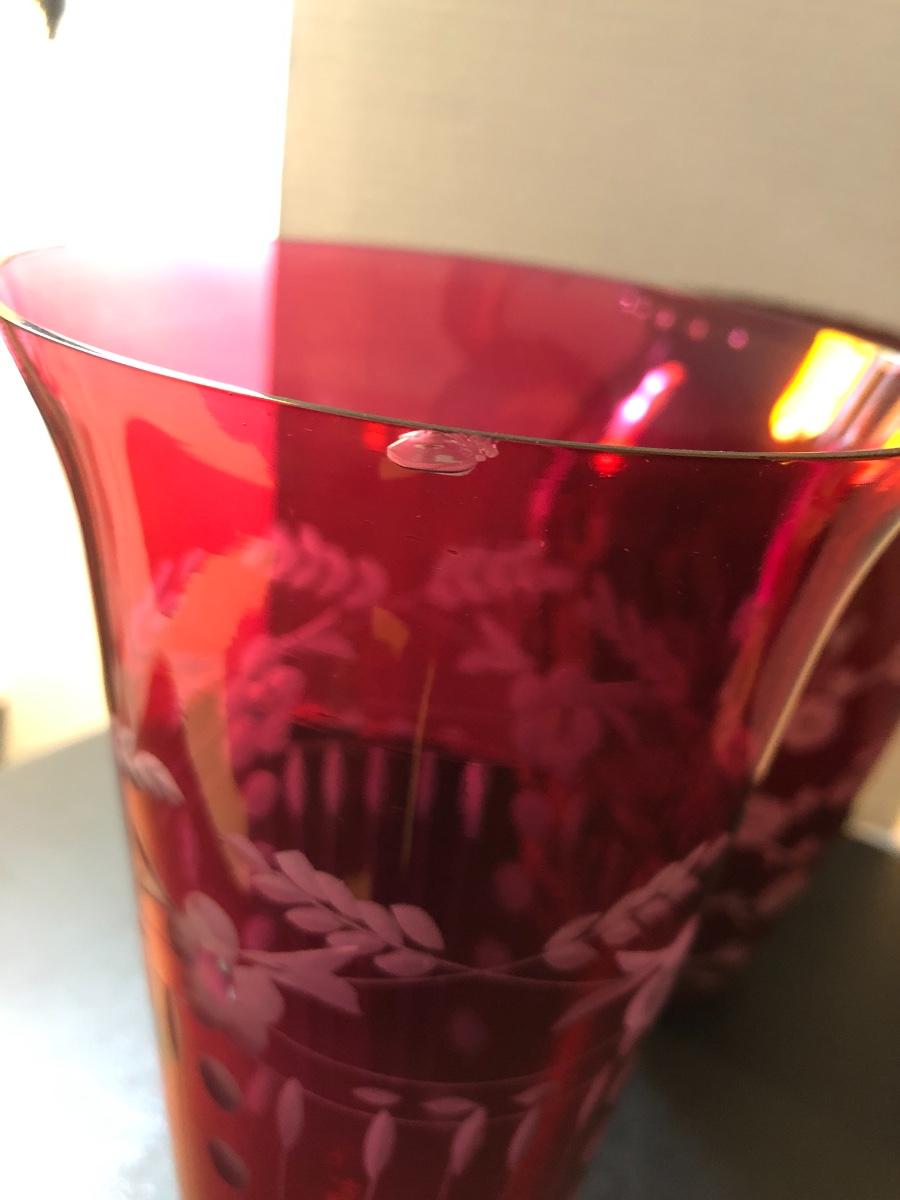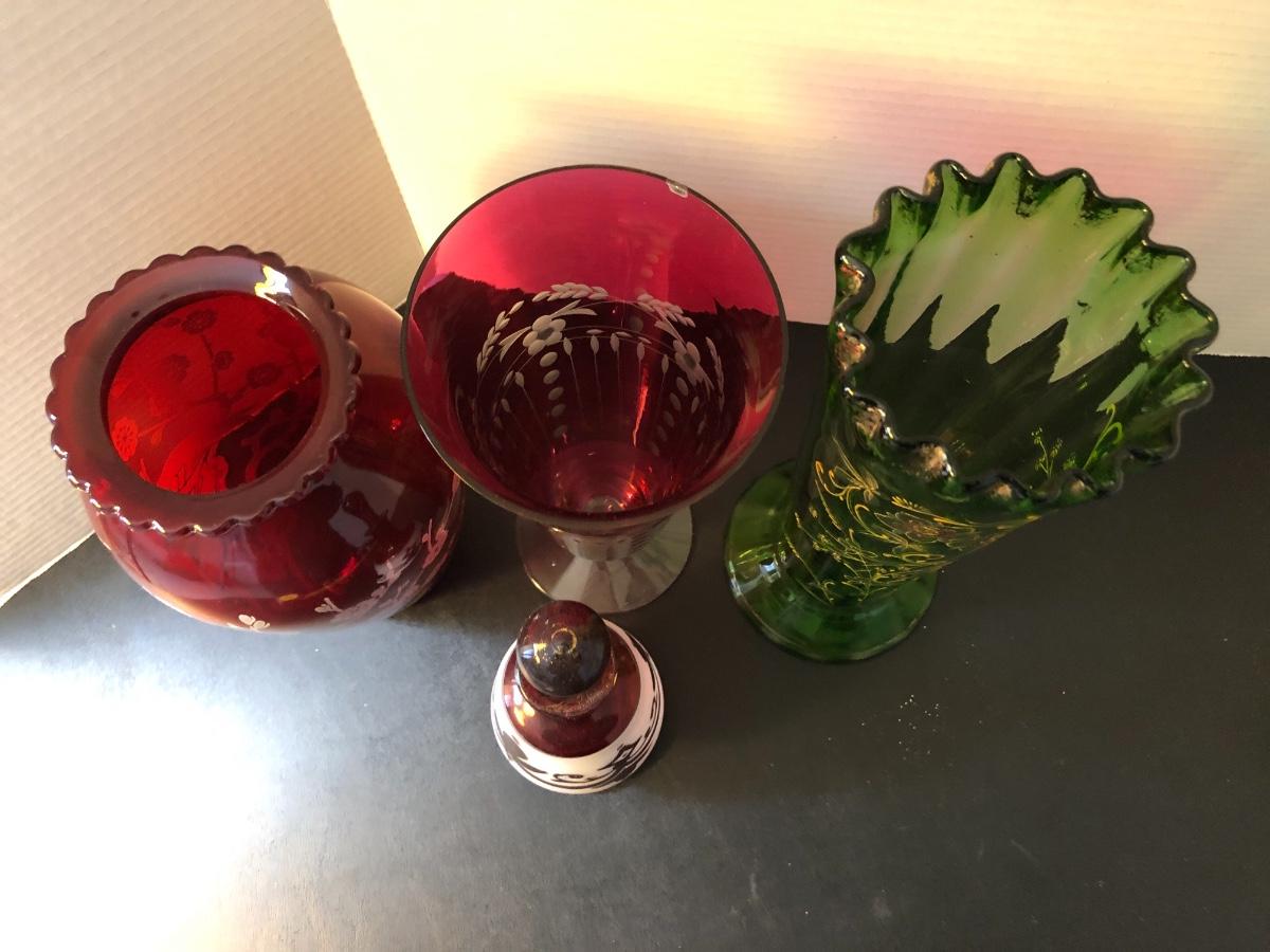 As always - NEVER A BUYER'S PREMIUM - NO CREDIT CARD FEES - All items start at $10 and are being auctioned with NO RESERVES to the high bidder. Tall Red Vase has chip around rim.