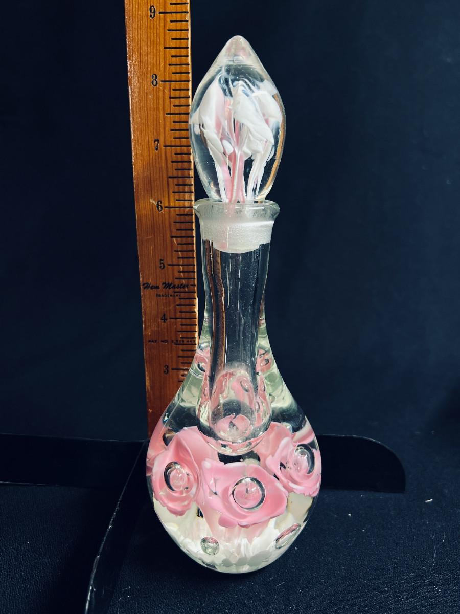 Tall Vintage Rose Blown Glass Perfume Bottle