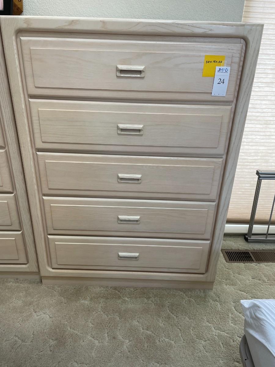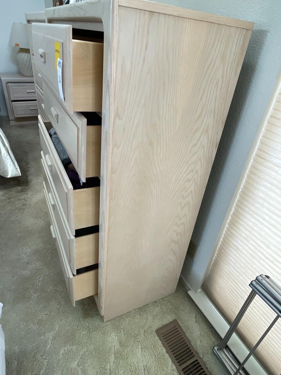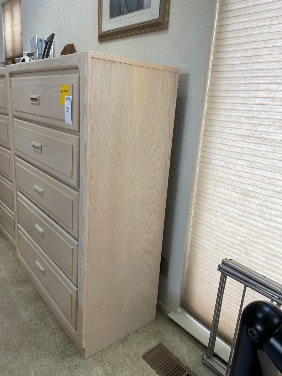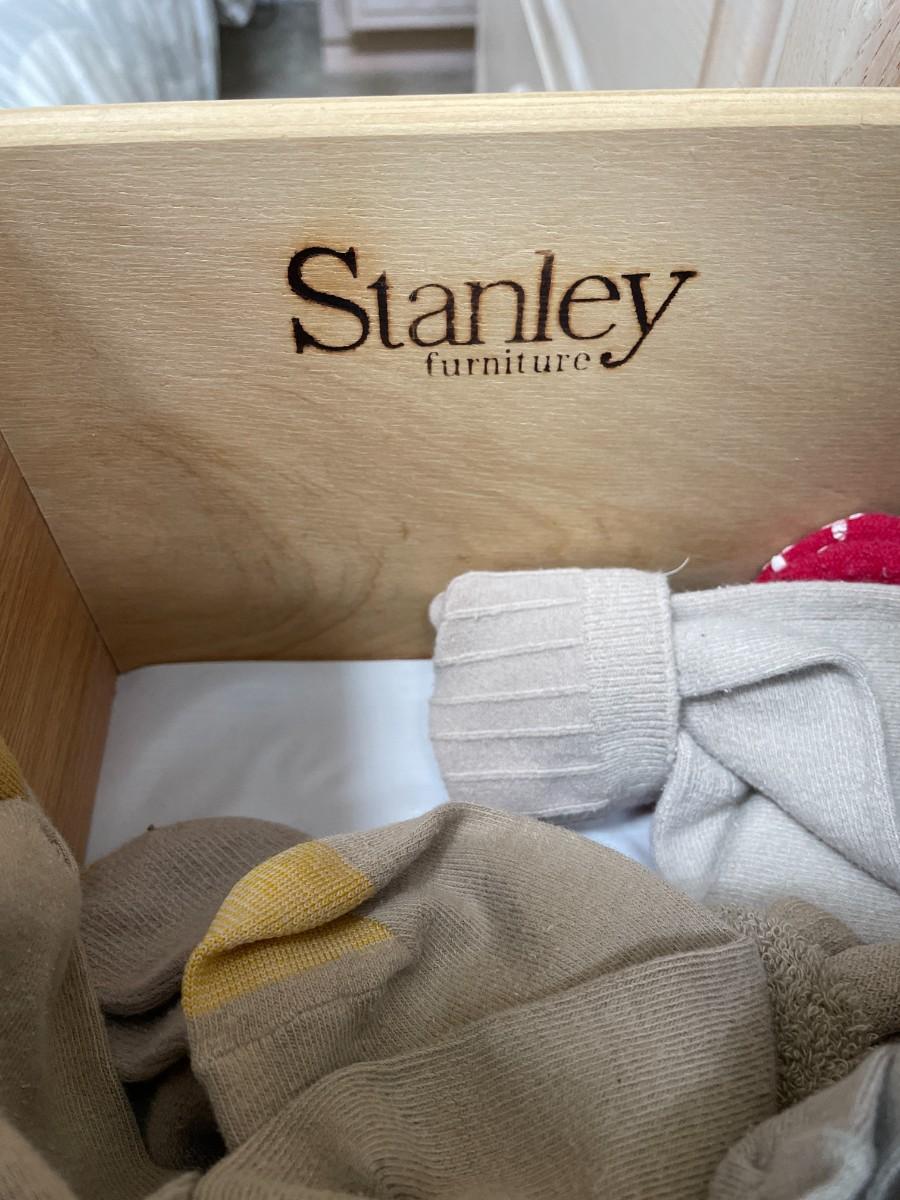 Stanley Furniture 5 drawer tall boy dresser. 38 x 18 x 52" Matches Lots 22 & 23. Does not include contents
