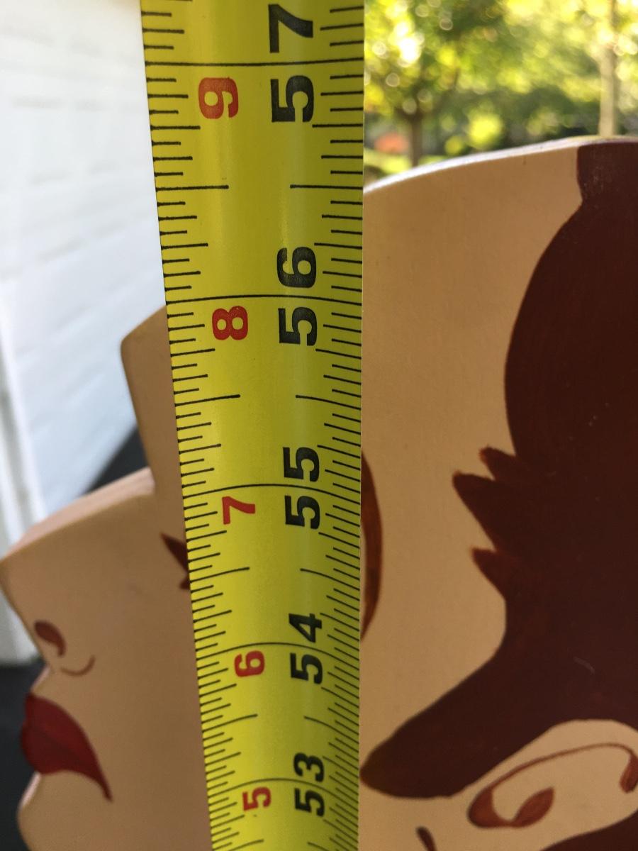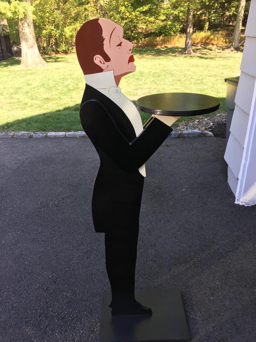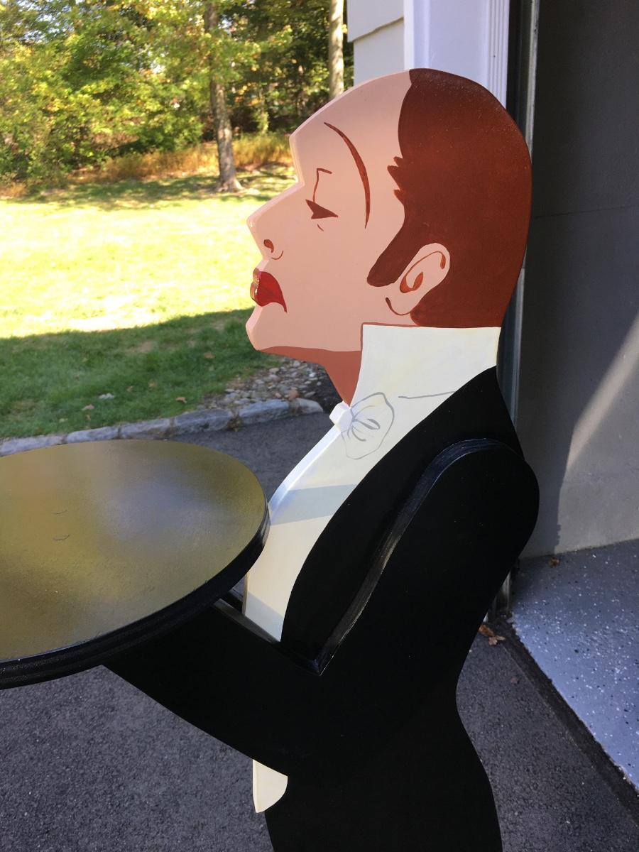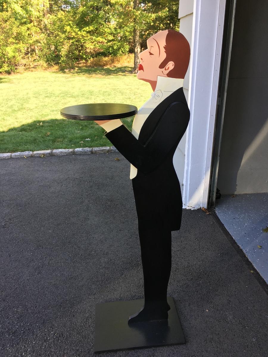 57" tall painted wooded table with tray on square base.