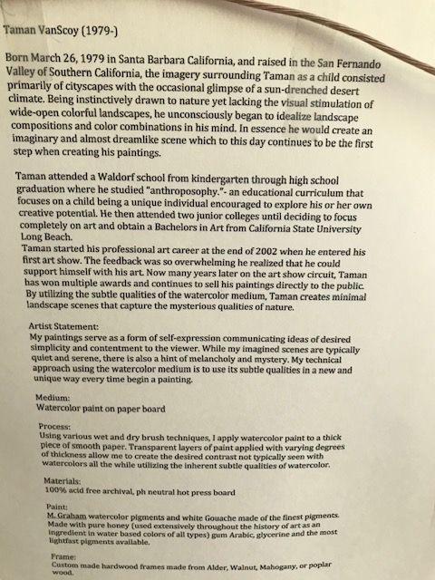 Taman VanSkoy Watercolor On Paper Board. Local pick up only in Auburn, CA.