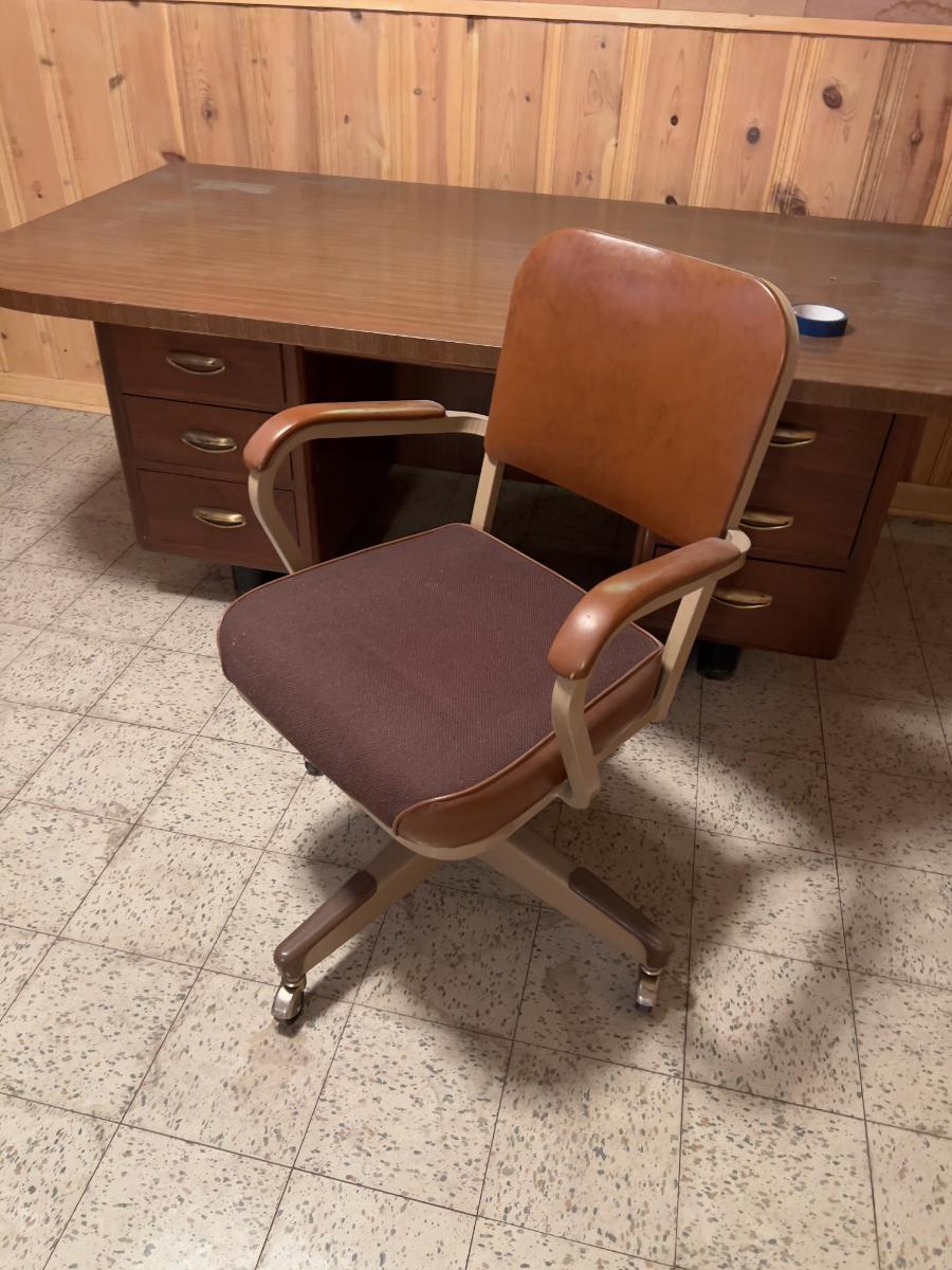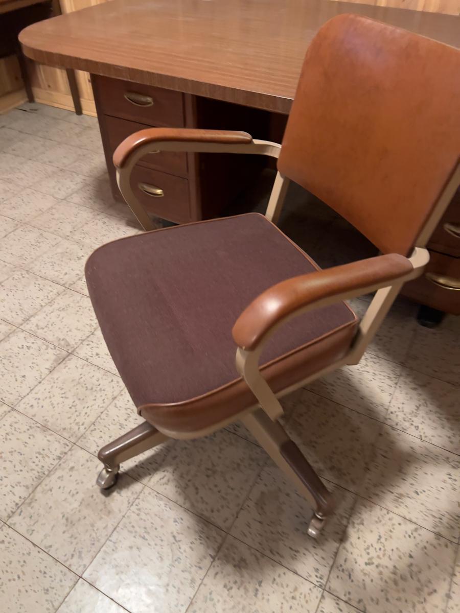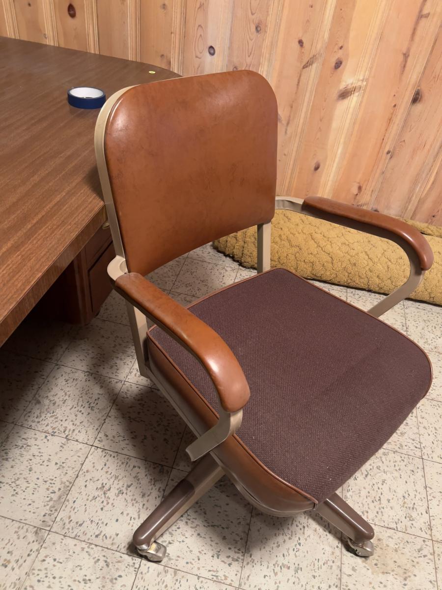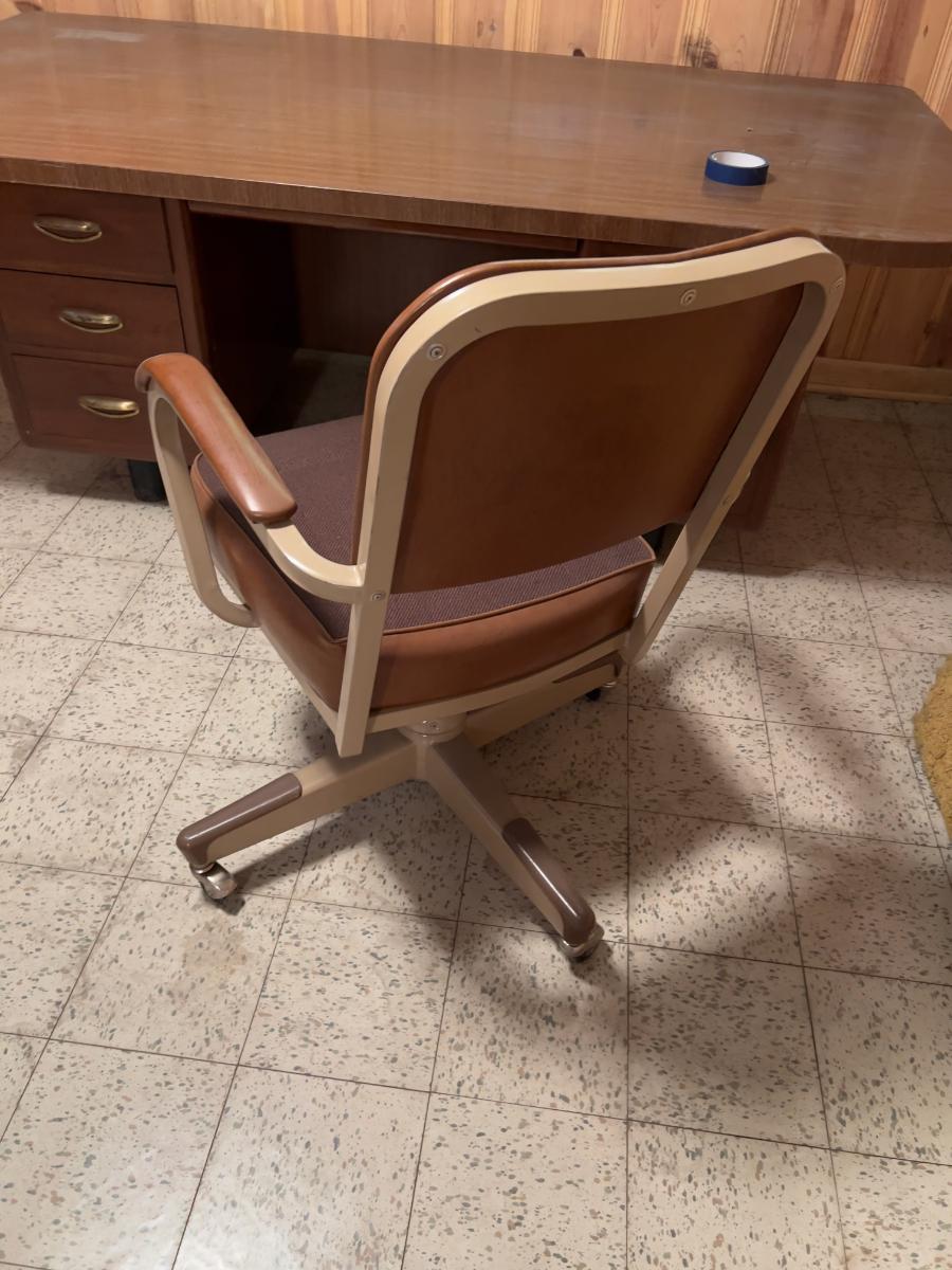 Tan Brown Metal Tanker Style Rolling Officer Chair.