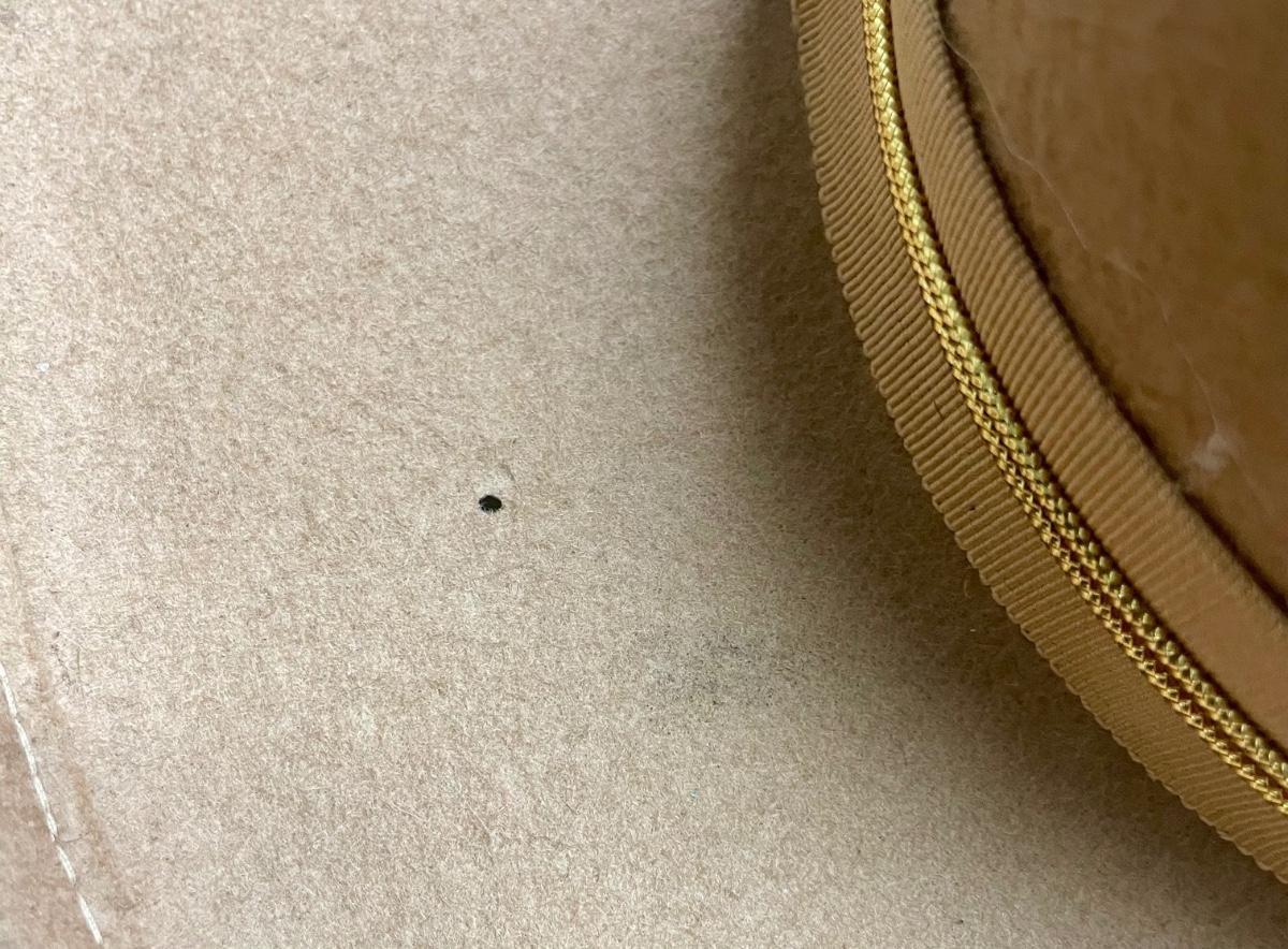 100% wool, size small. Has a few spots of damage due to moth caterpillars.