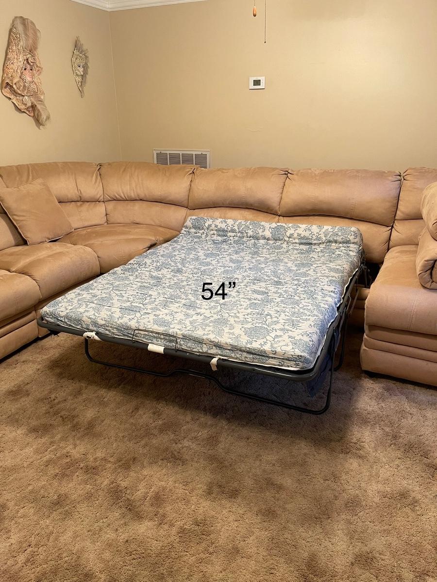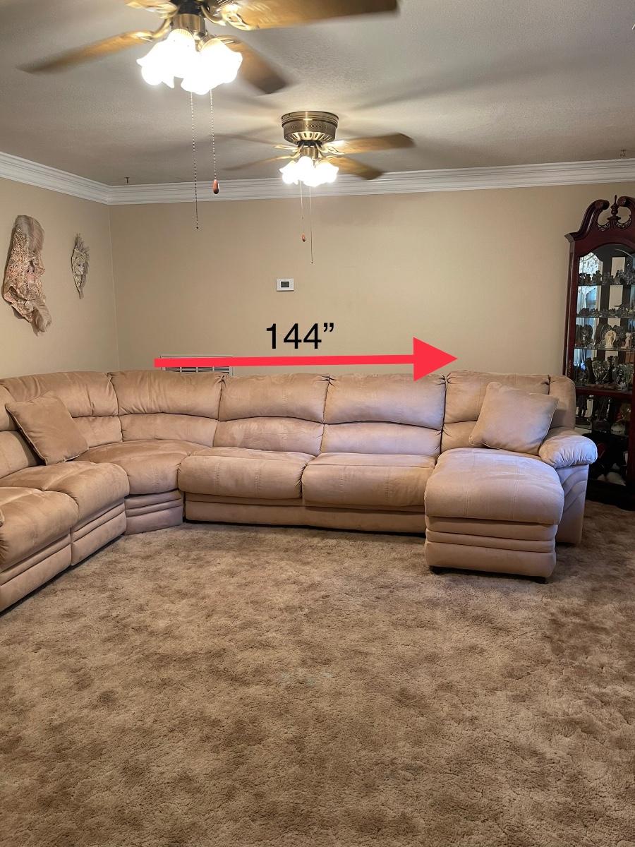 Tan Micro Fiber Sectional ~ Recliner, Chaise & Hide-a-way Bed ~ All In One