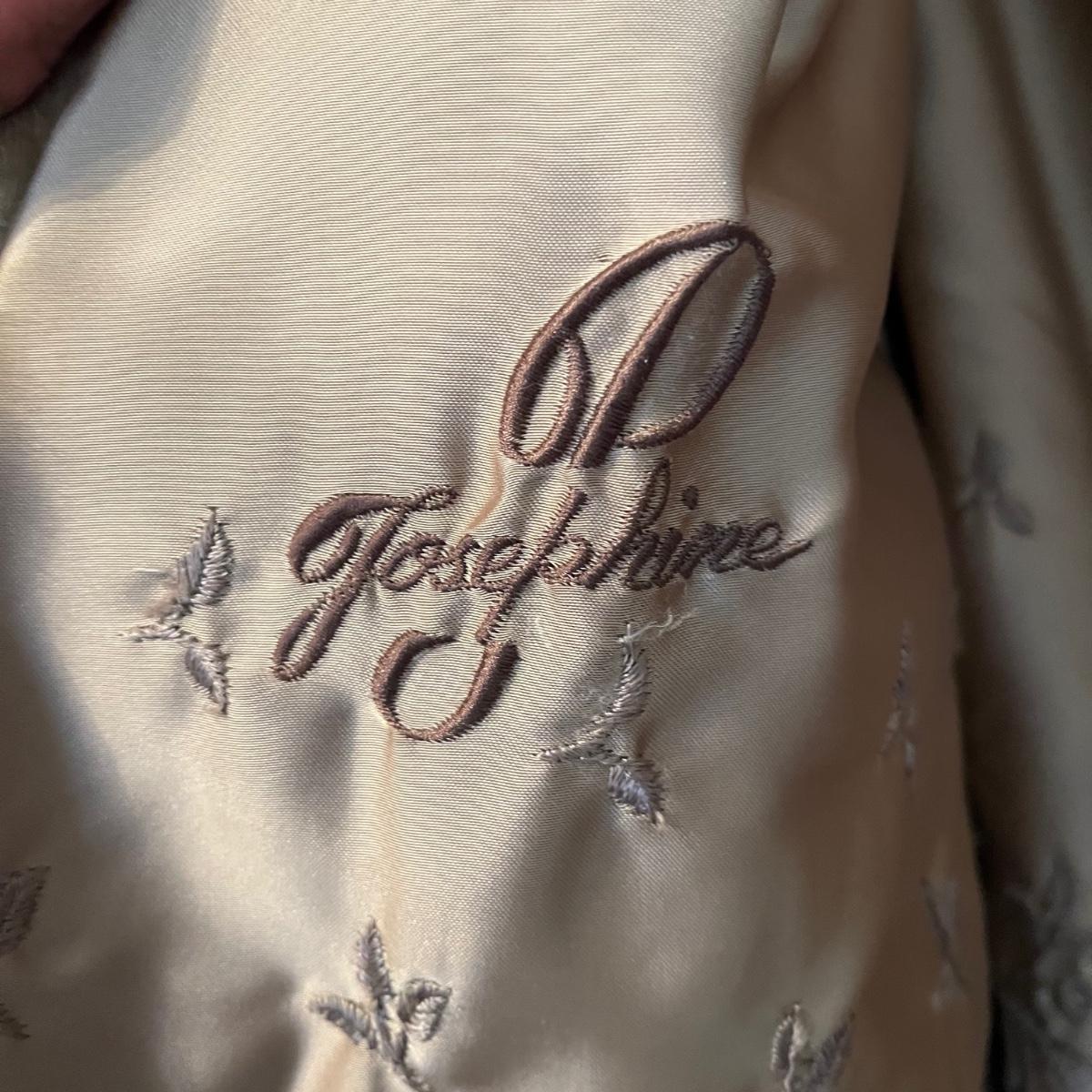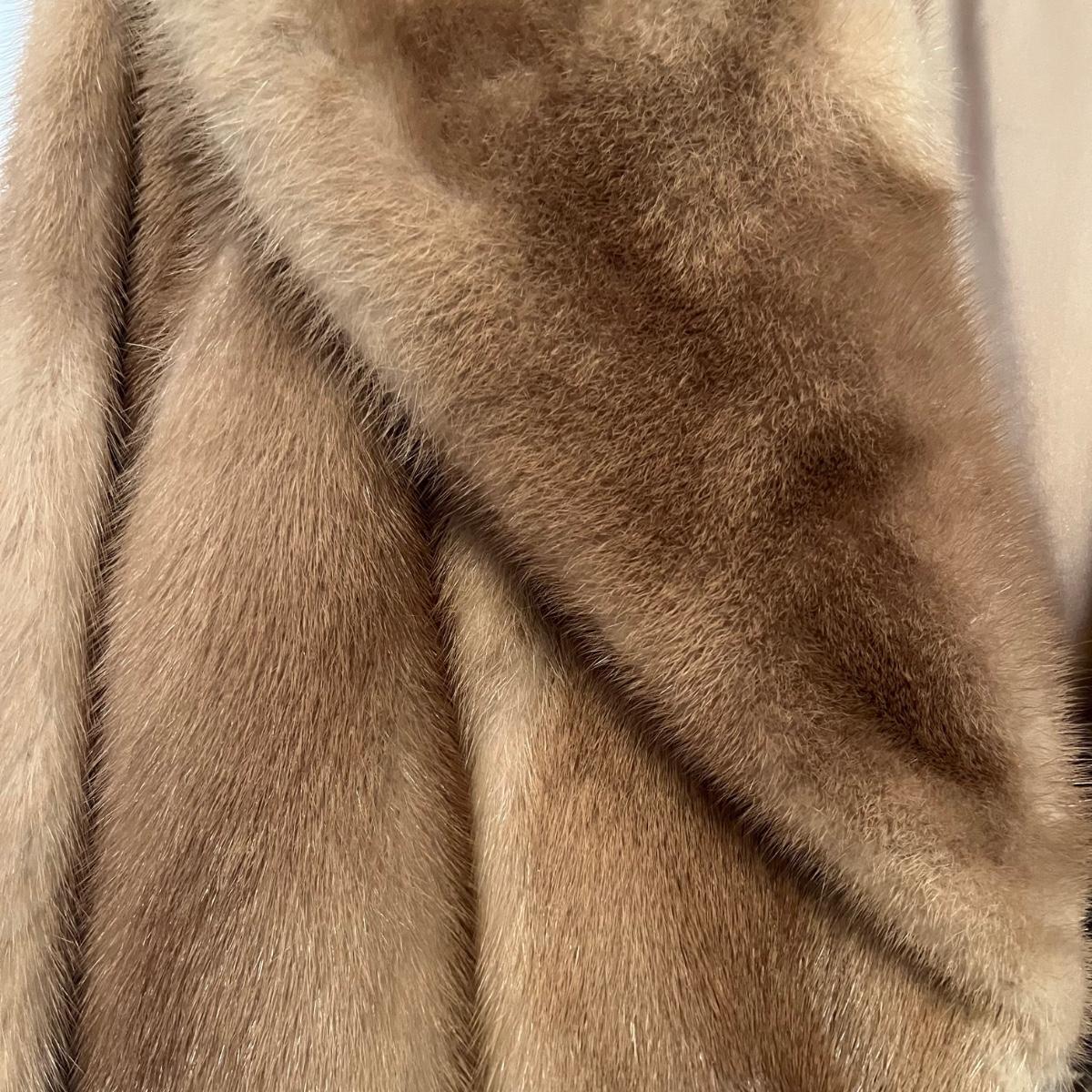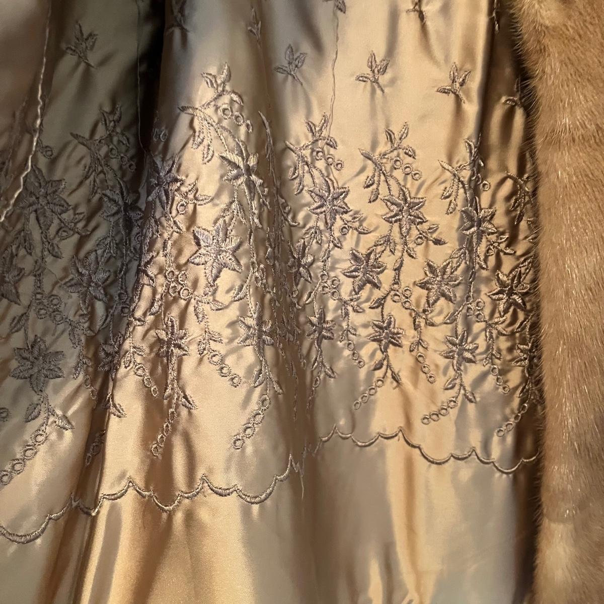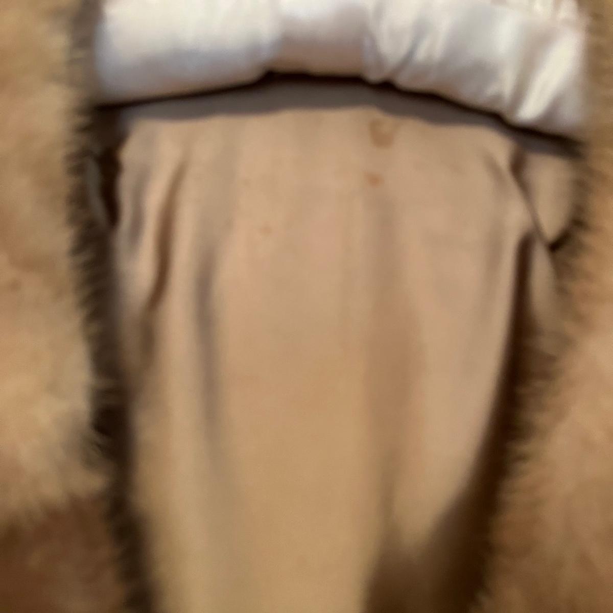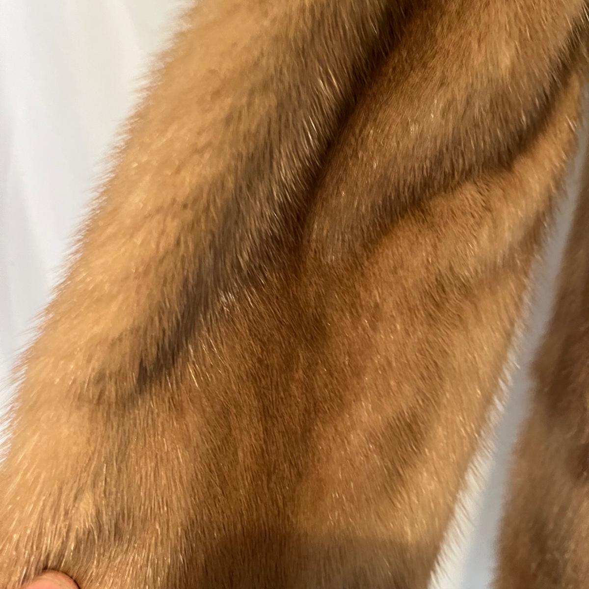 Lot includes a Tan mink coat that is marked Josephine on the liner. Note the fancy stitching on the liner. Coat appears to be a size 14-though there is not a tag stating size. The sleeves are not full-length; instead the coat sports 3/4 length sleeves. There are two outside pockets. Note the lining has come apart from the coat.
