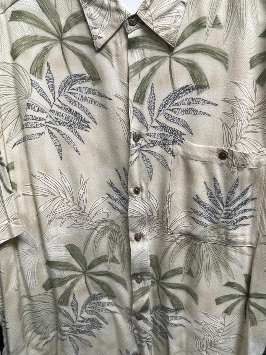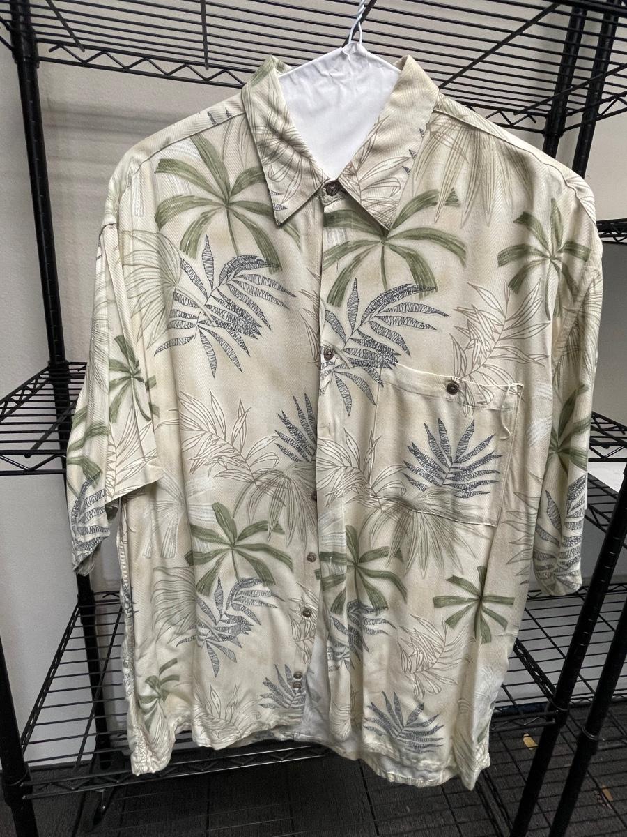 Tan Palm Tree Hawaiian Button Up Men’s Large Shirt