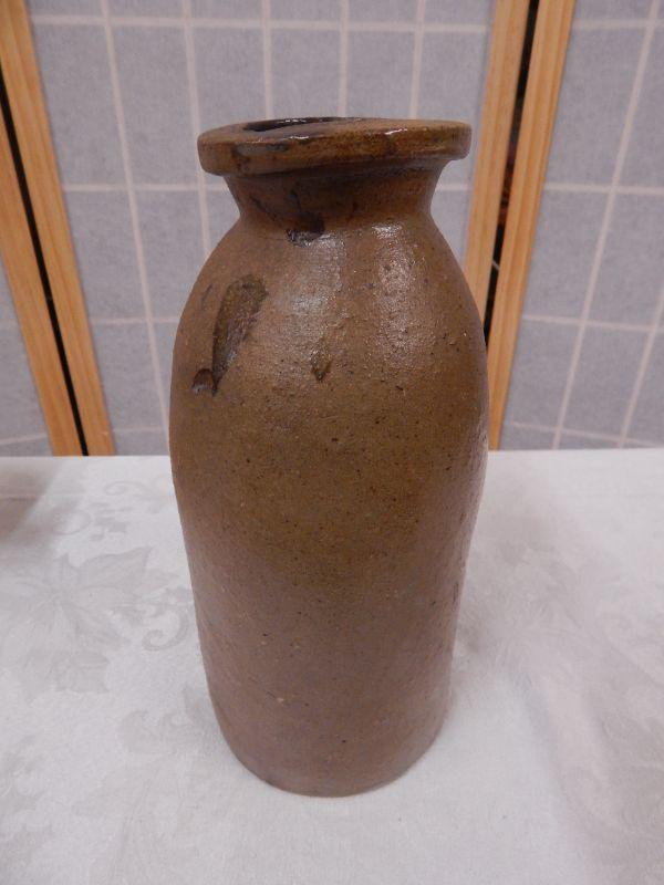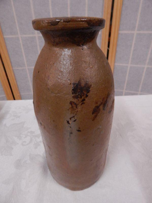 Light Brown Stoneware Jar / Salt Crock (No Lid) 10" Tall / 4-3/4" Bottom Diameter - Chips on Inside Lip