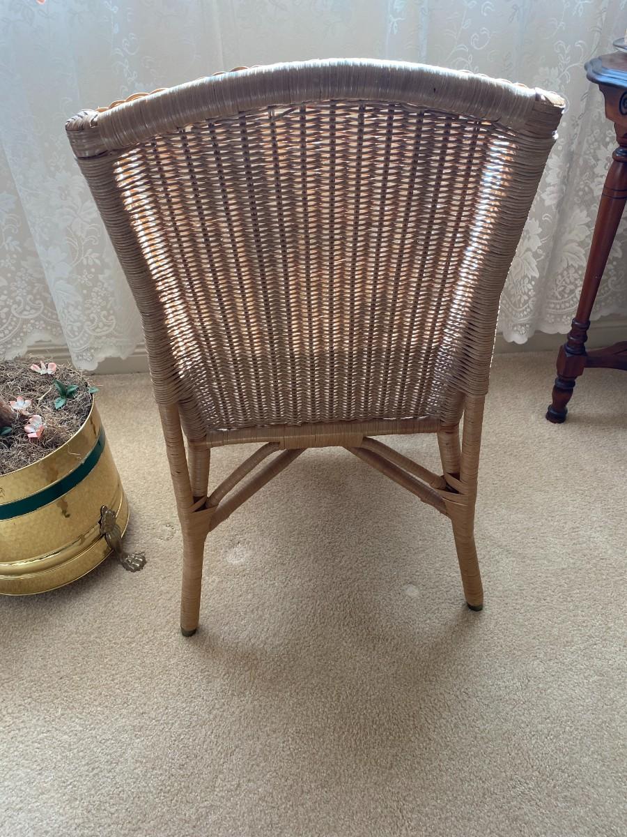 Tan wicker chair, vintage. Excellent condition. Approx. 33" H x 17" W x 20" D