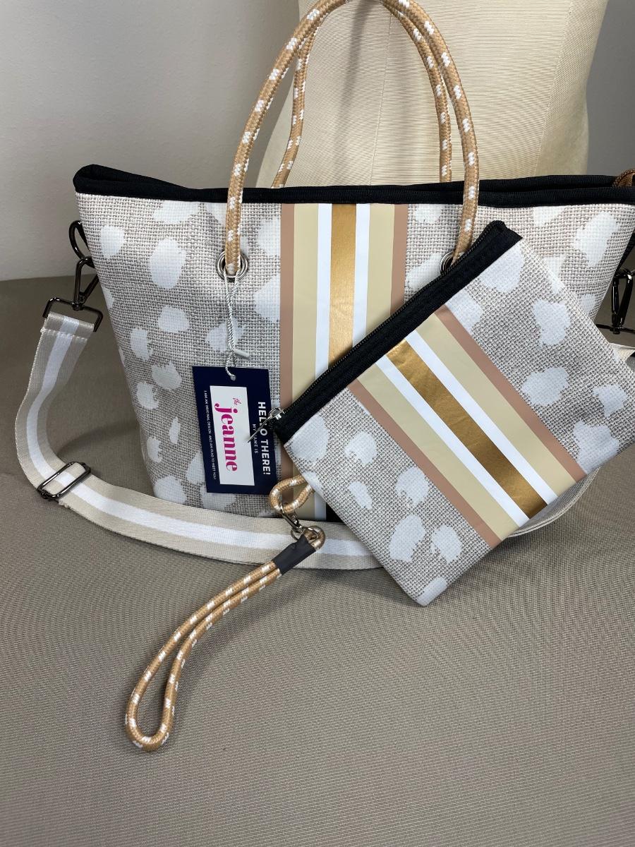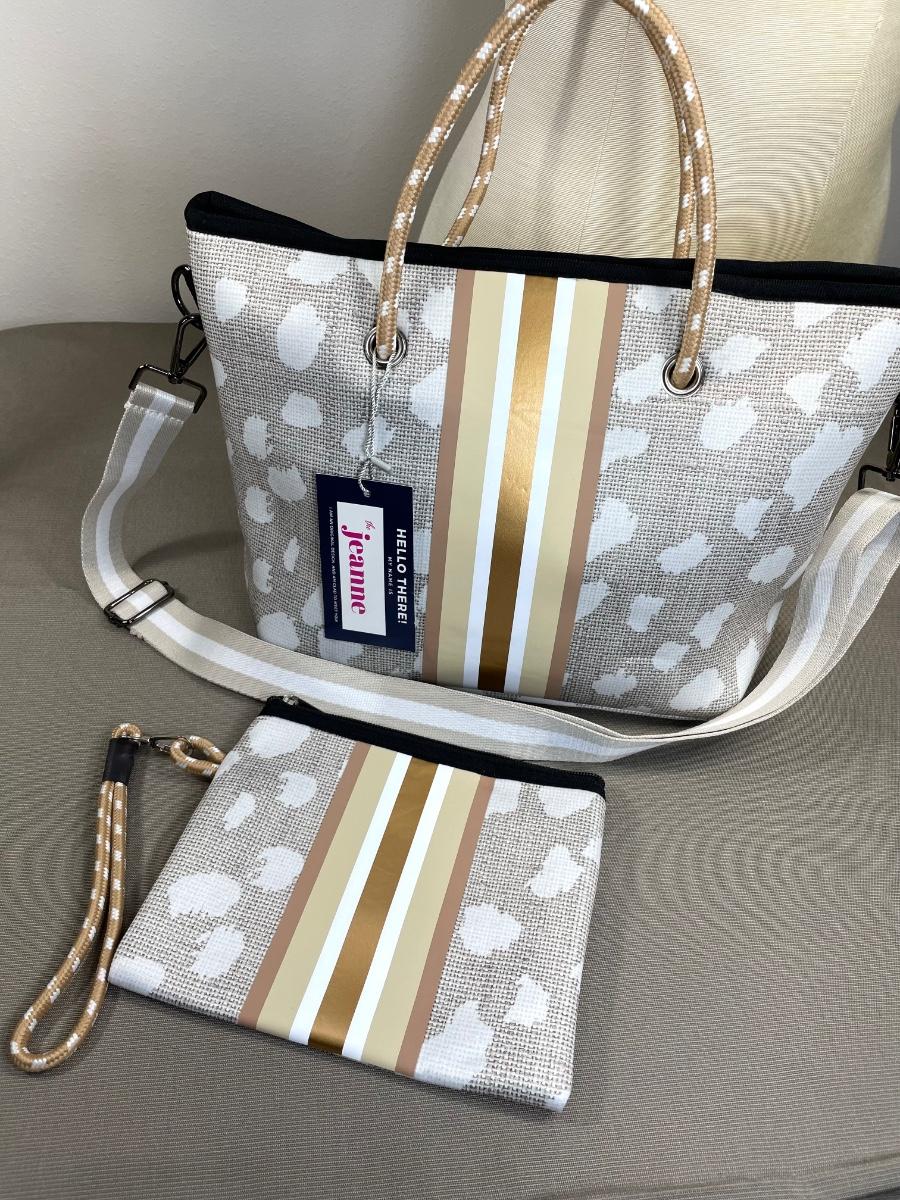 New Taylor Gray neoprene set. Perfect for Pickleball and lightweight for travel. fully lined interiors. Includes wristlet.