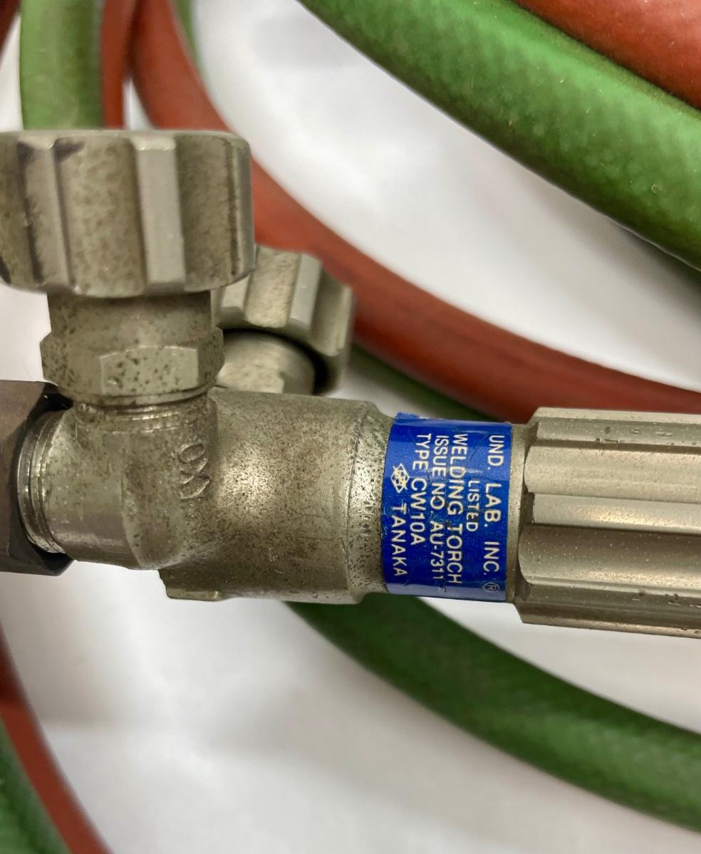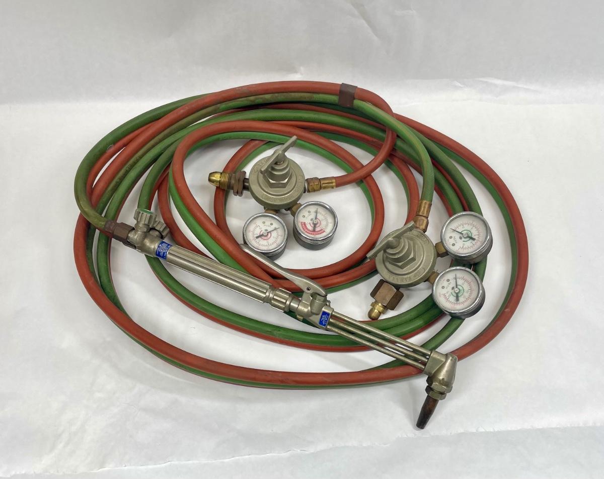 CW20 cutting torch attachment. CW10 Welding Torch Handle. Hoses, valves and gauges for oxygen and acetylene tanks. Good used condition, hoses are approx. 20’ long.
