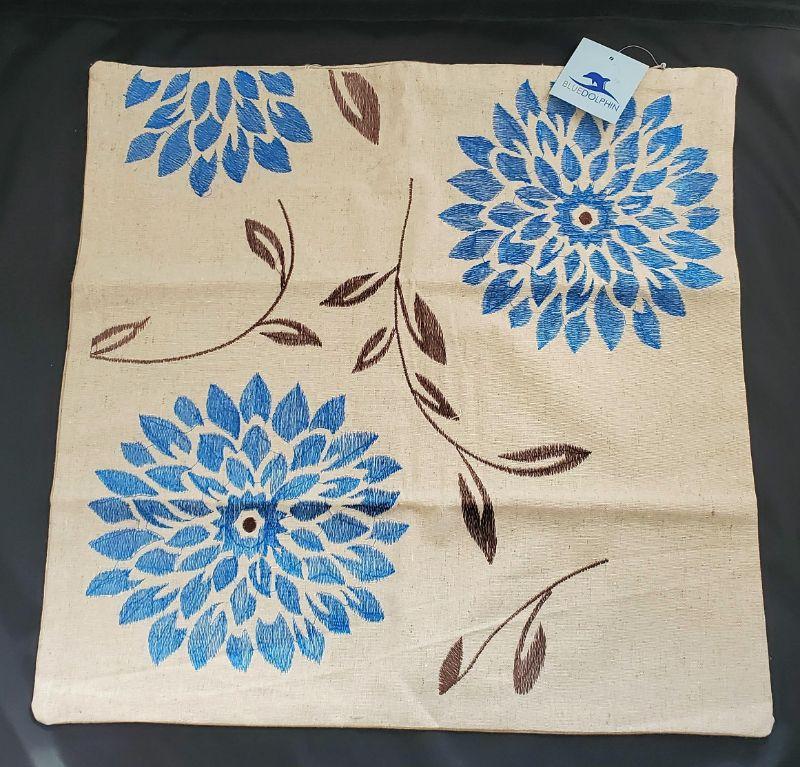Tan and Blue Floral Throw Pillow Sham 17" x 17"