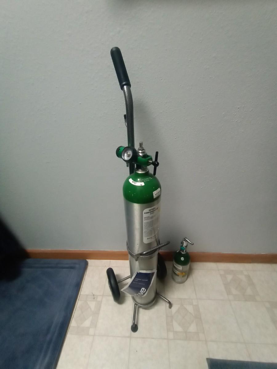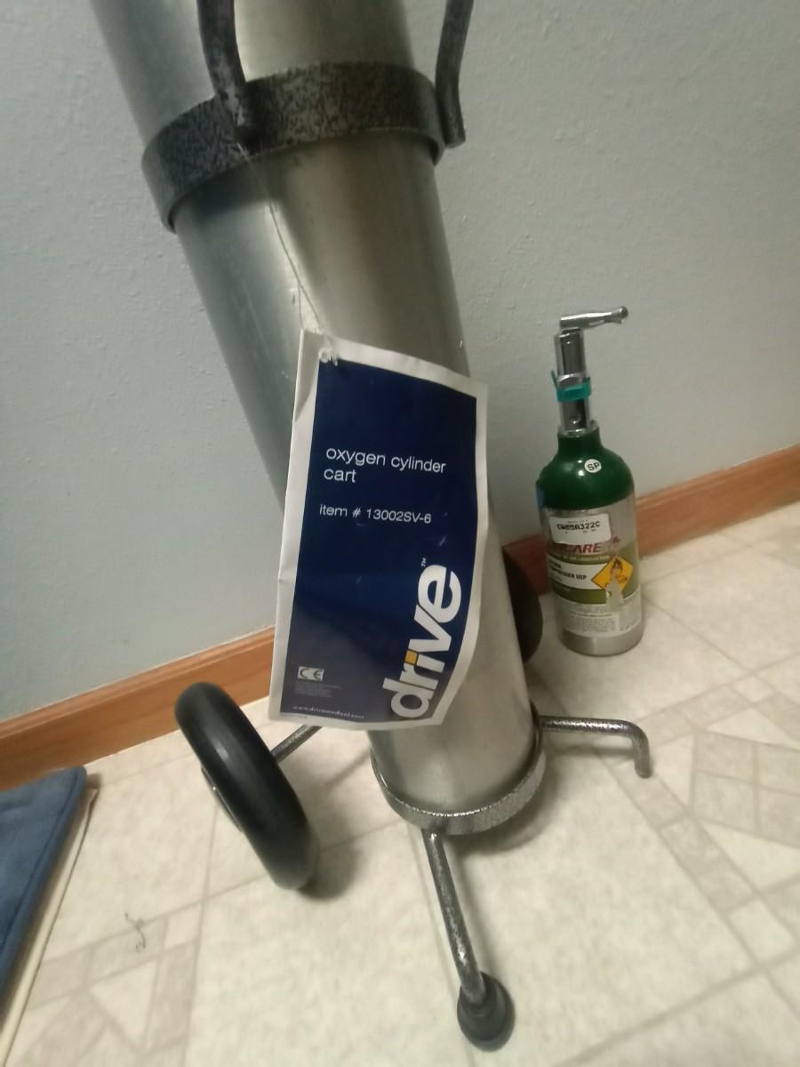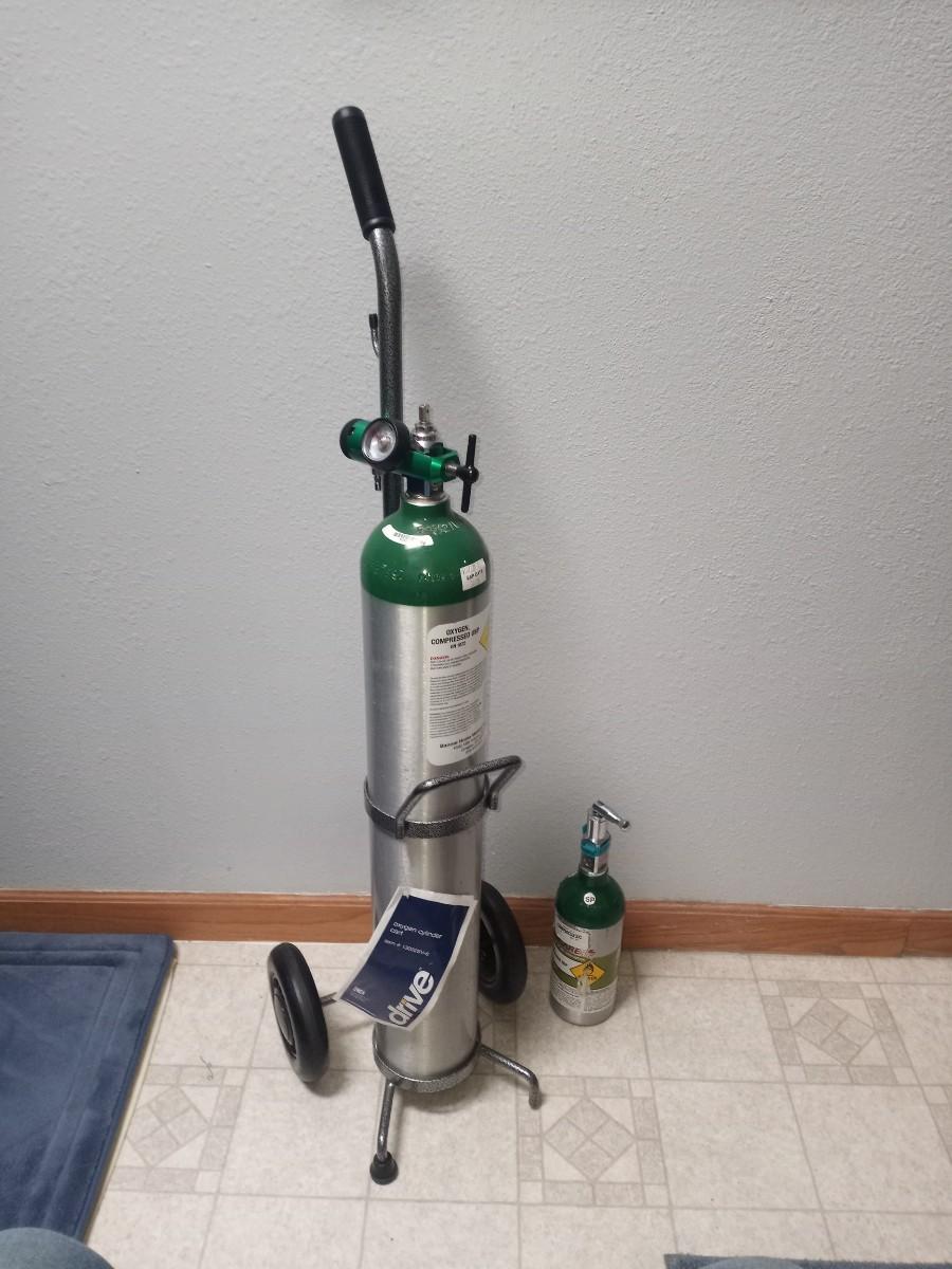 OXIGEN TANK WITH NEW PORTABLE.CART `BY DRIVE
