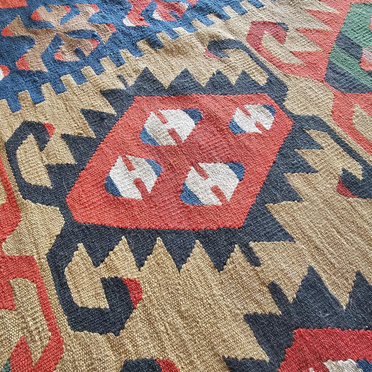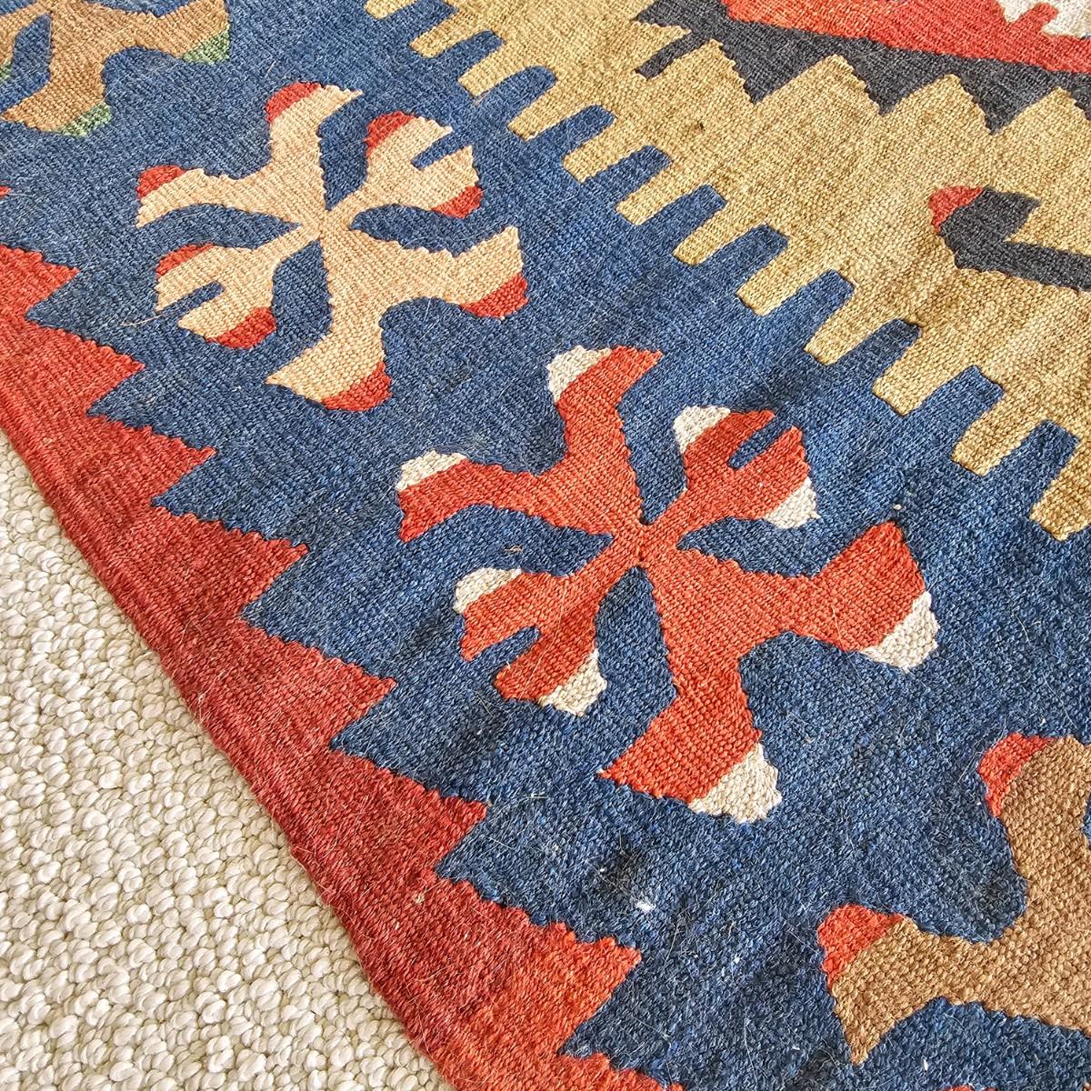 Tan/Red/Blue Area Rug & Pad (K-JS)