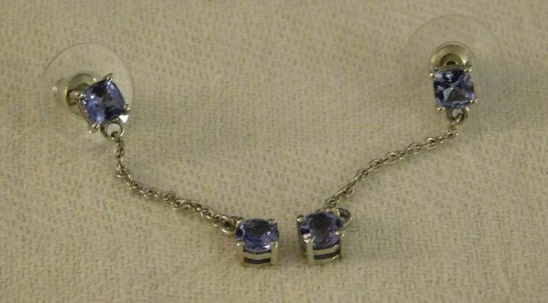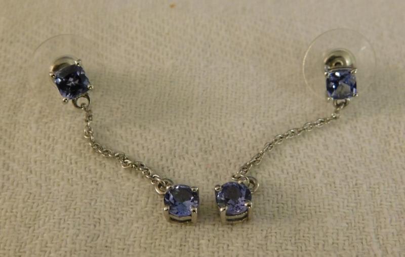 Tanzanite 1 3/4" Drop Earrings Platinum Over Sterling. Picture shows the desirable violet blue coloring that tanzanite collectors search for when purchasing.