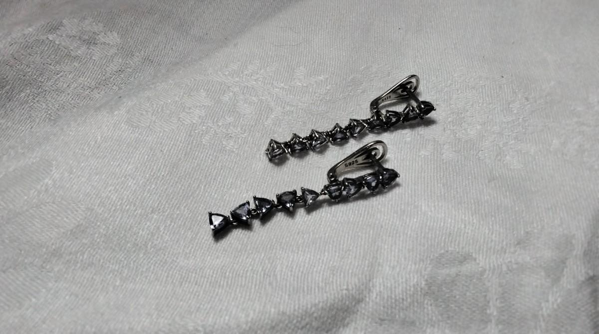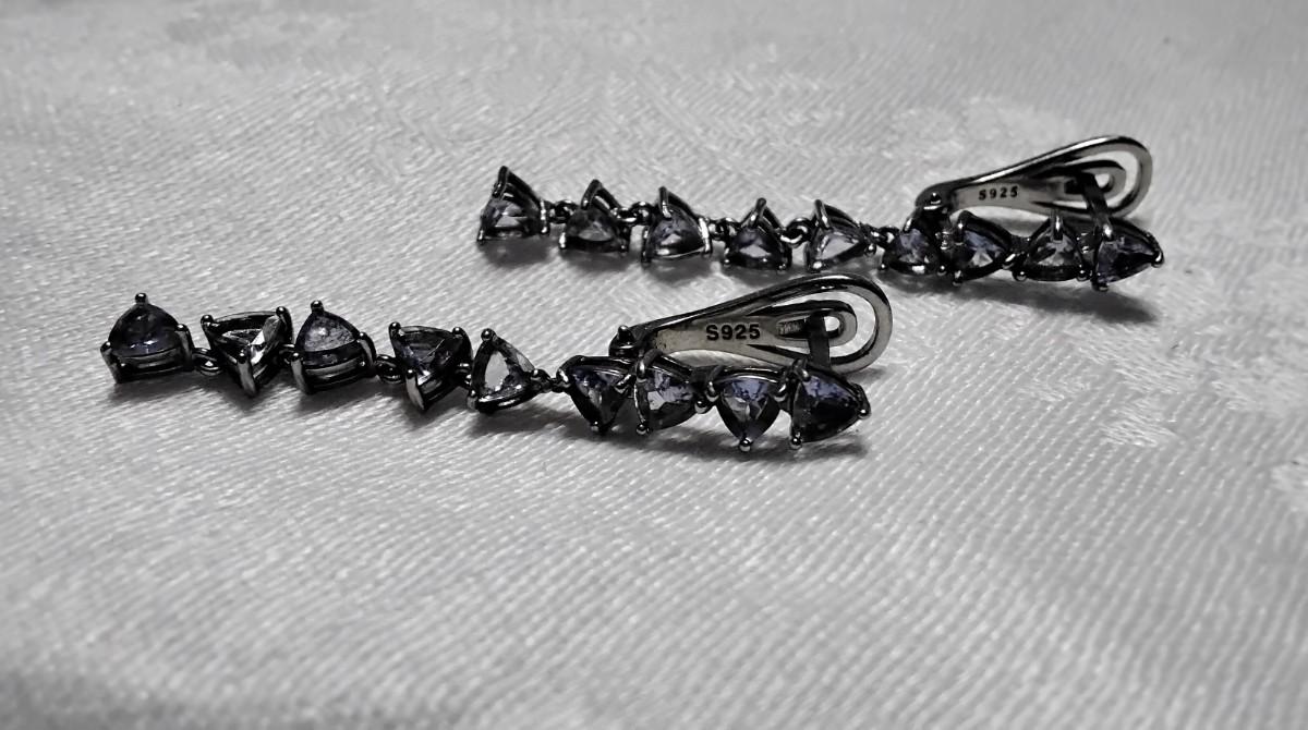 New Old Stock Triangle Tanzanite 925 Dangle Earrings
