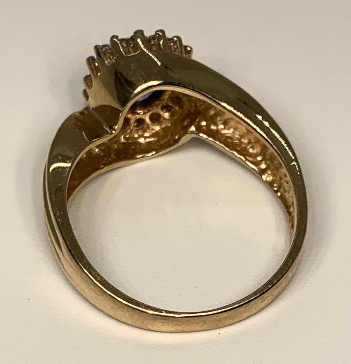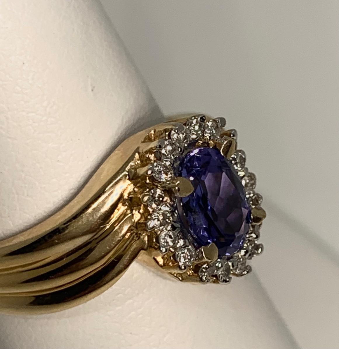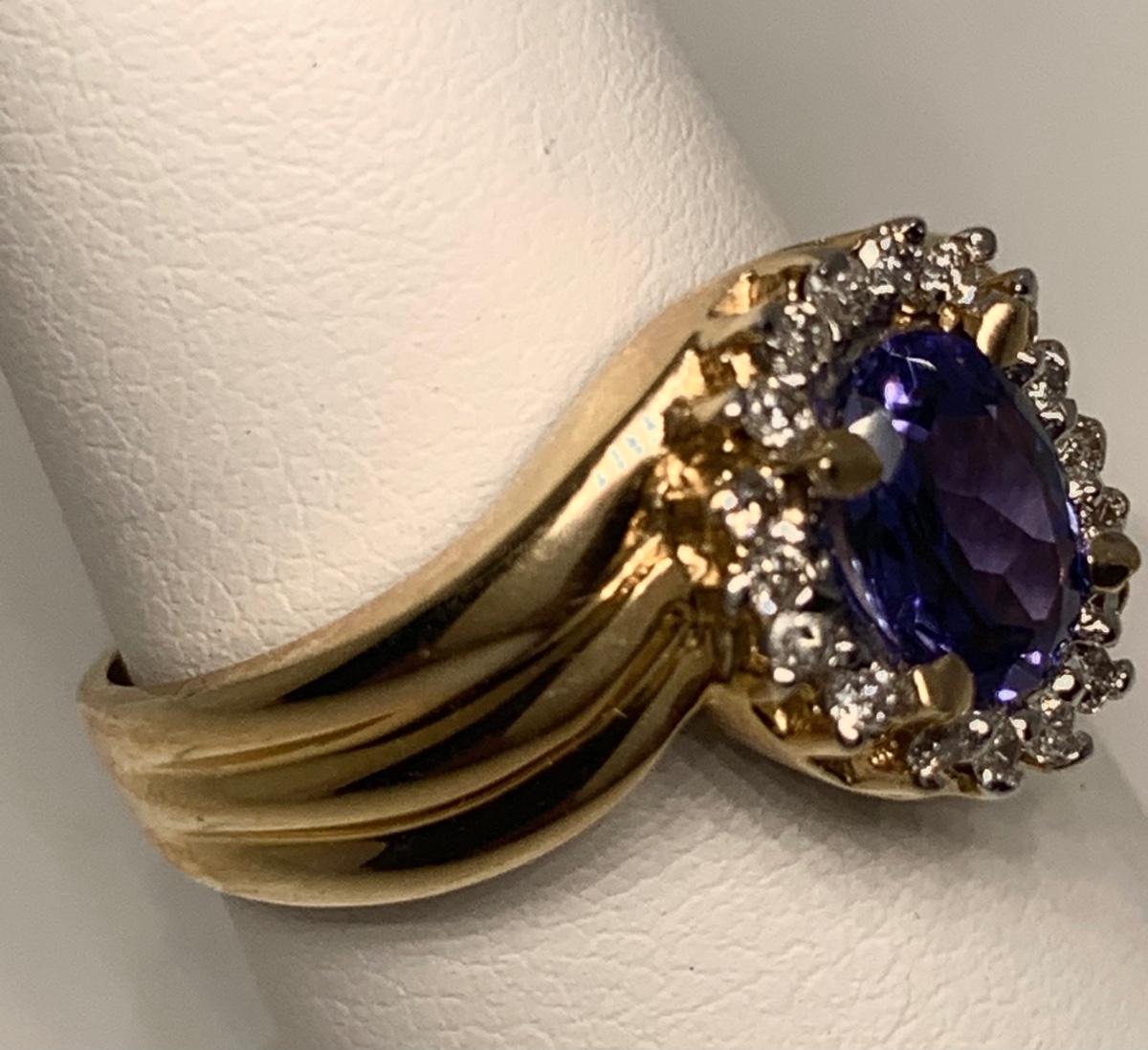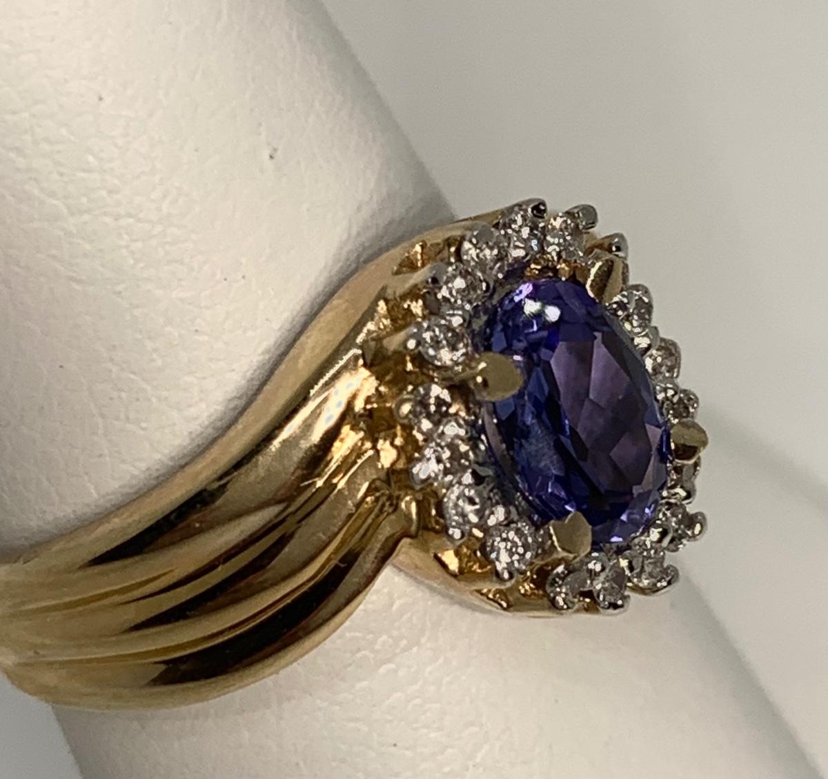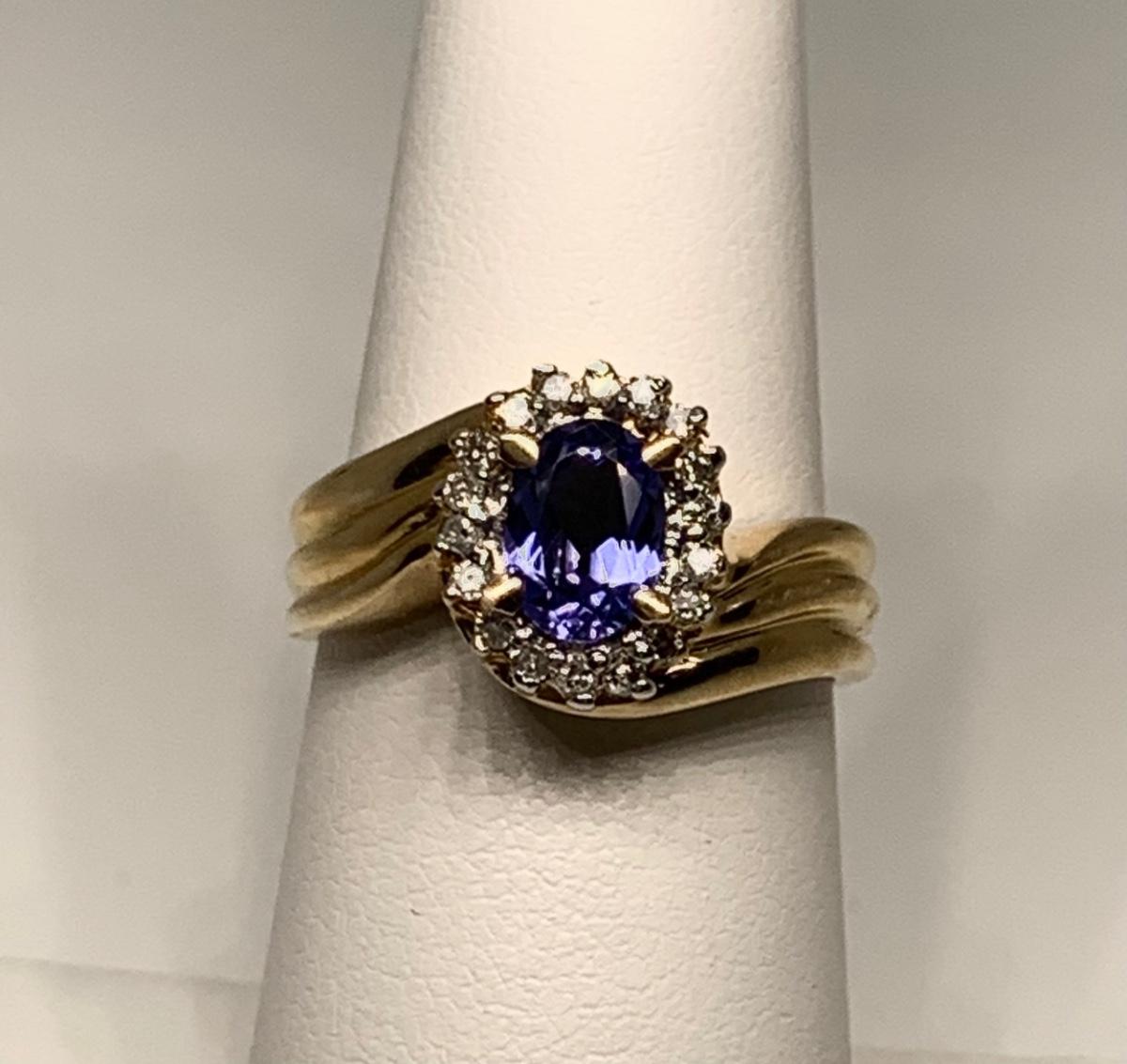 Tw 4.3g 14k ABR Yellow Gold Tanzanite Ring w/ Halo of Diamond Chips  sz7