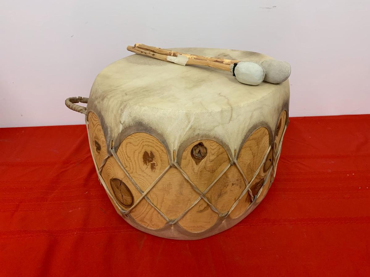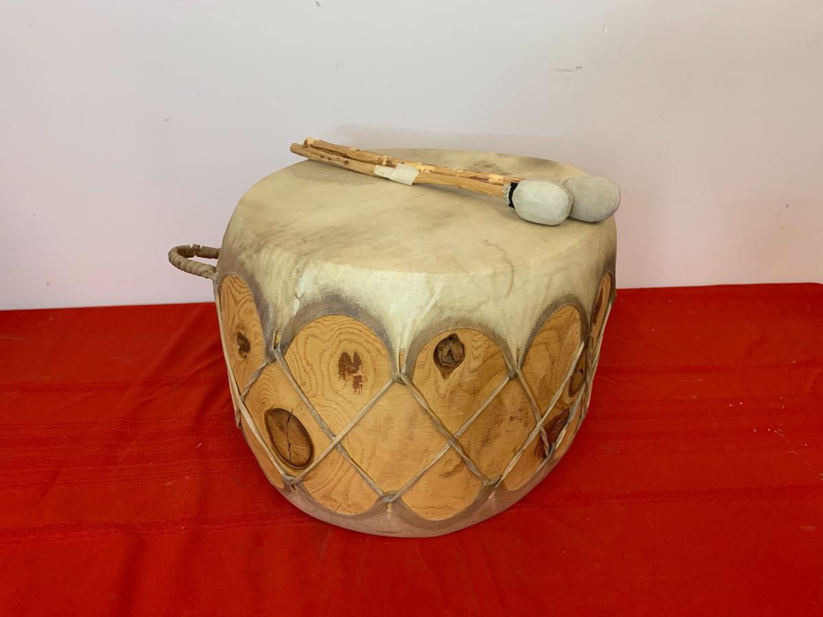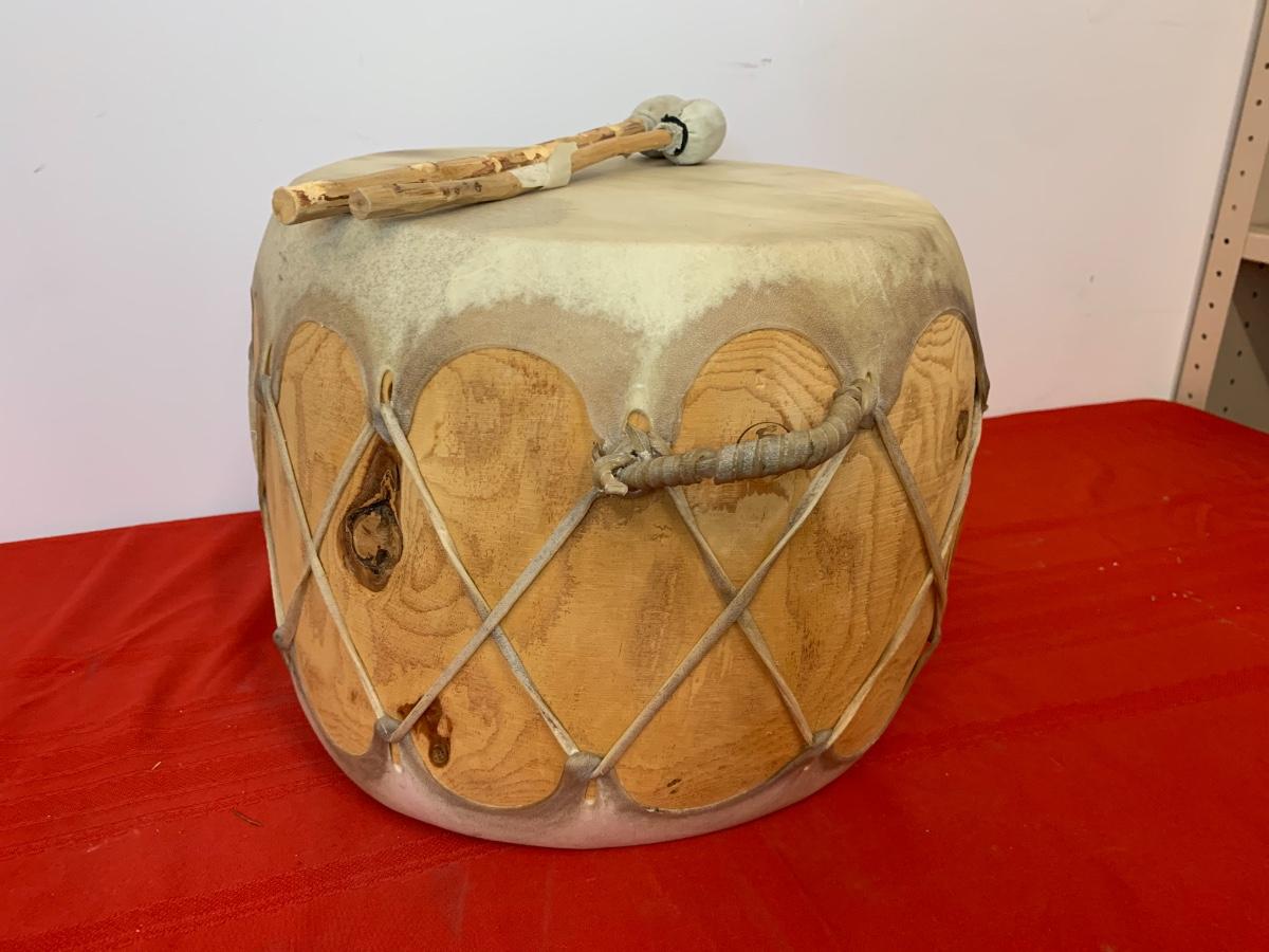 One Taos drum in great condition. Includes two drumsticks. Height= 12 inches, Diameter= 16 inches.