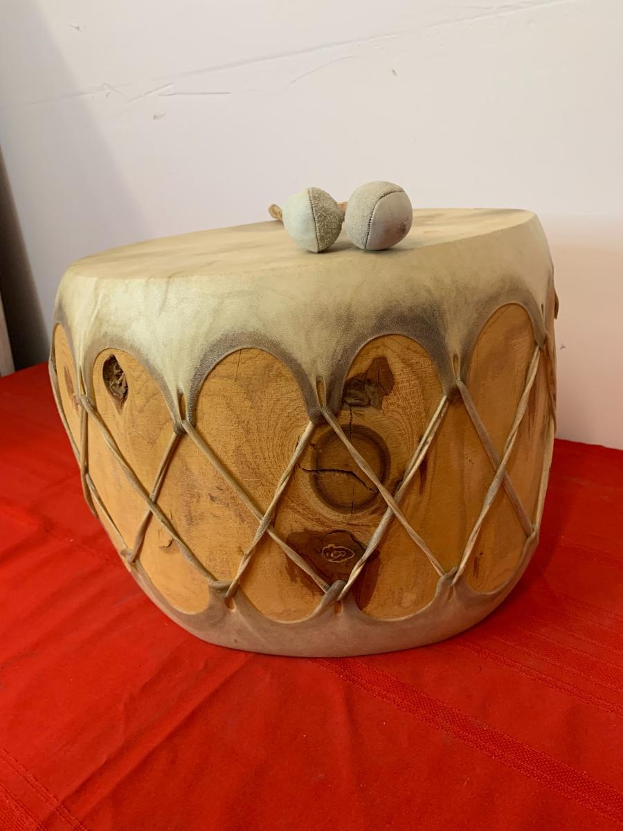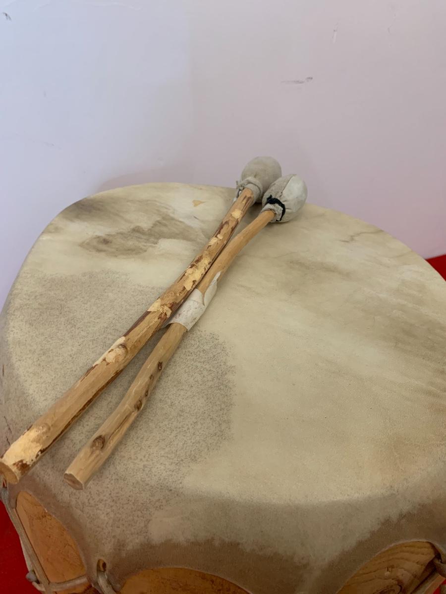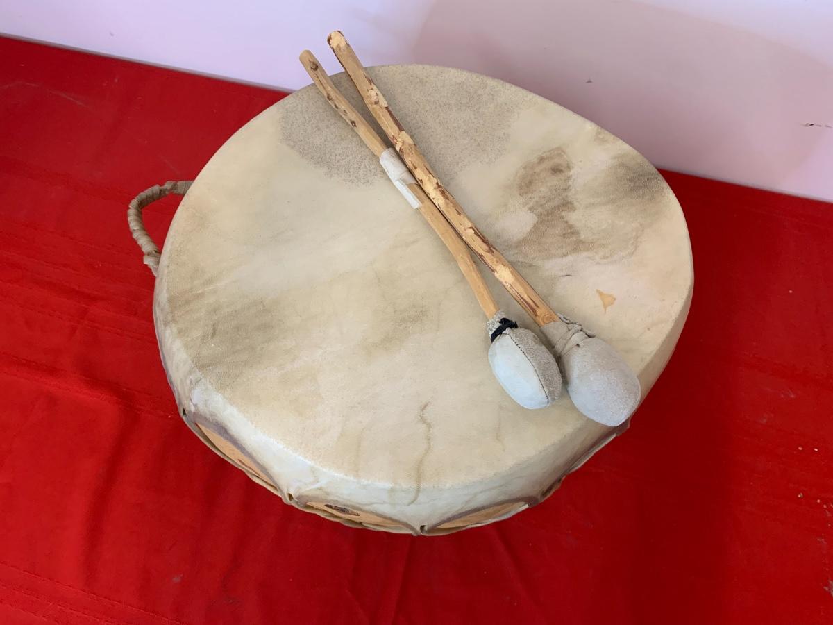 One Taos drum in great condition. Includes two drumsticks. Height= 12 inches, Diameter= 16 inches.