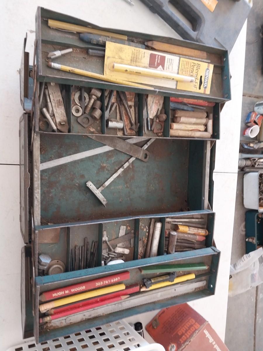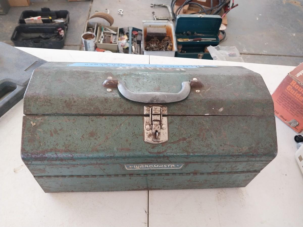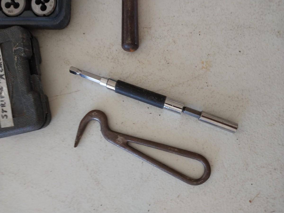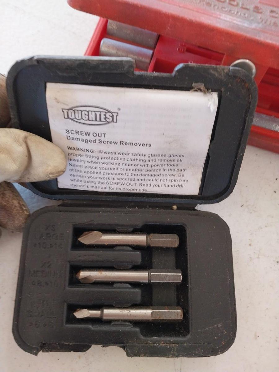 TAP AND DIE SET, SCREW EXTRACTOR, METAL TOOL BOX AND MORE,